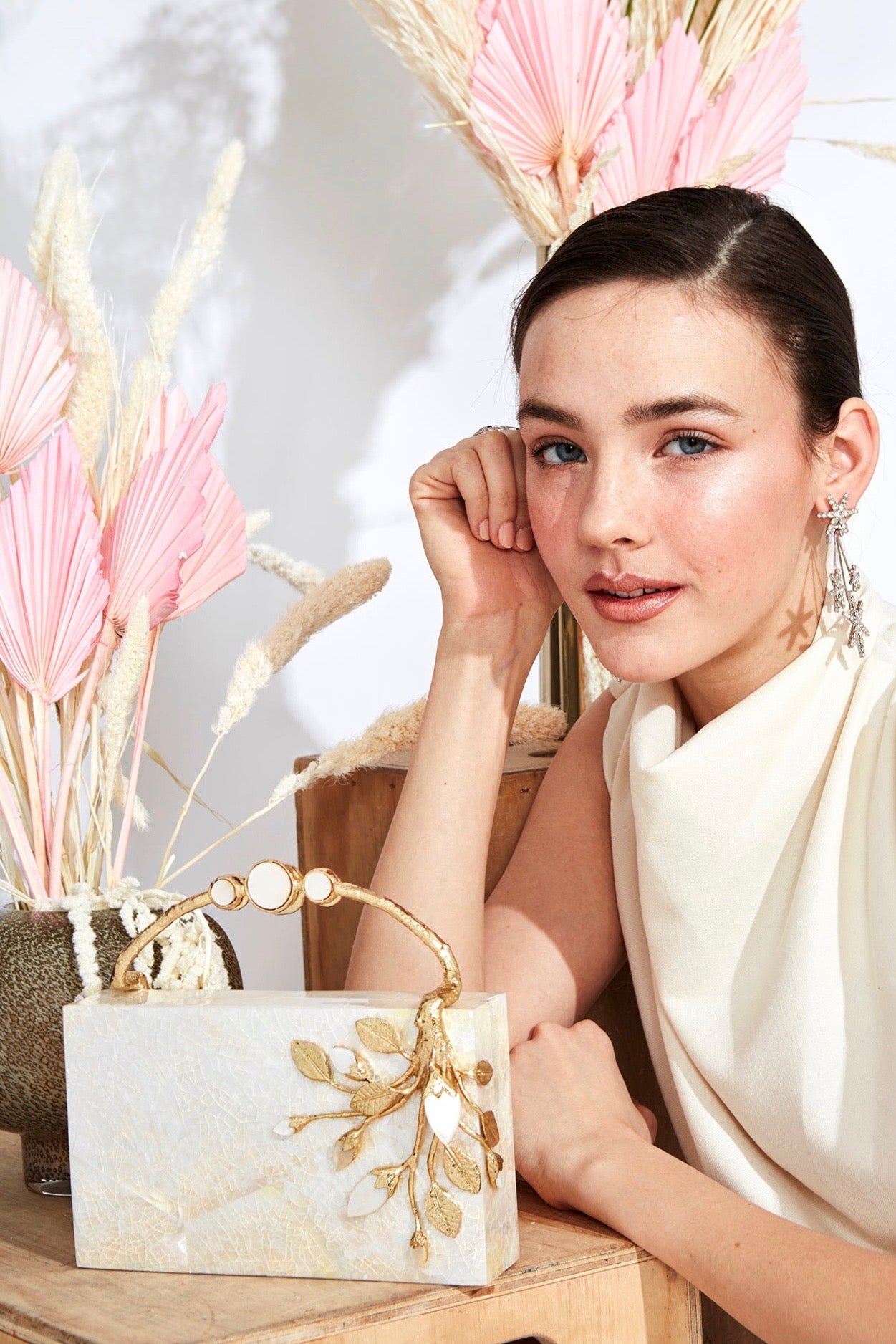 Hand casted Brass with 14k Gold Foil. Mother of Pearl Shell , Mother of Pearl Inlay.