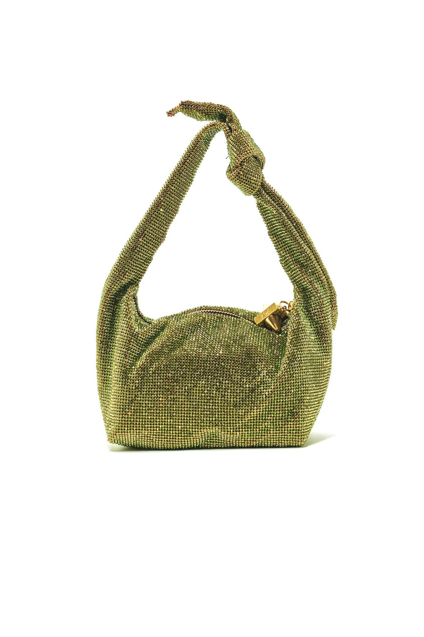 Made from Swarovski Green in mesh, Gold hardware, Black Satin Interior.