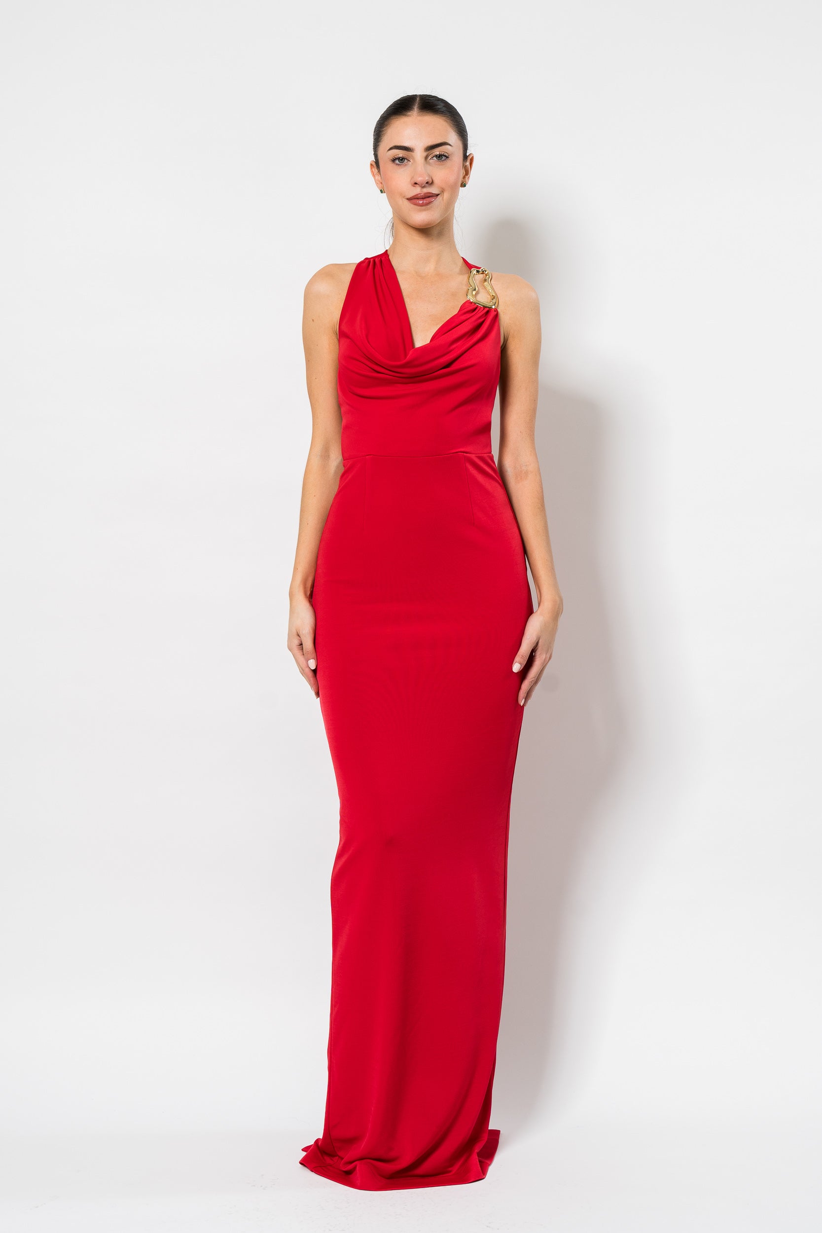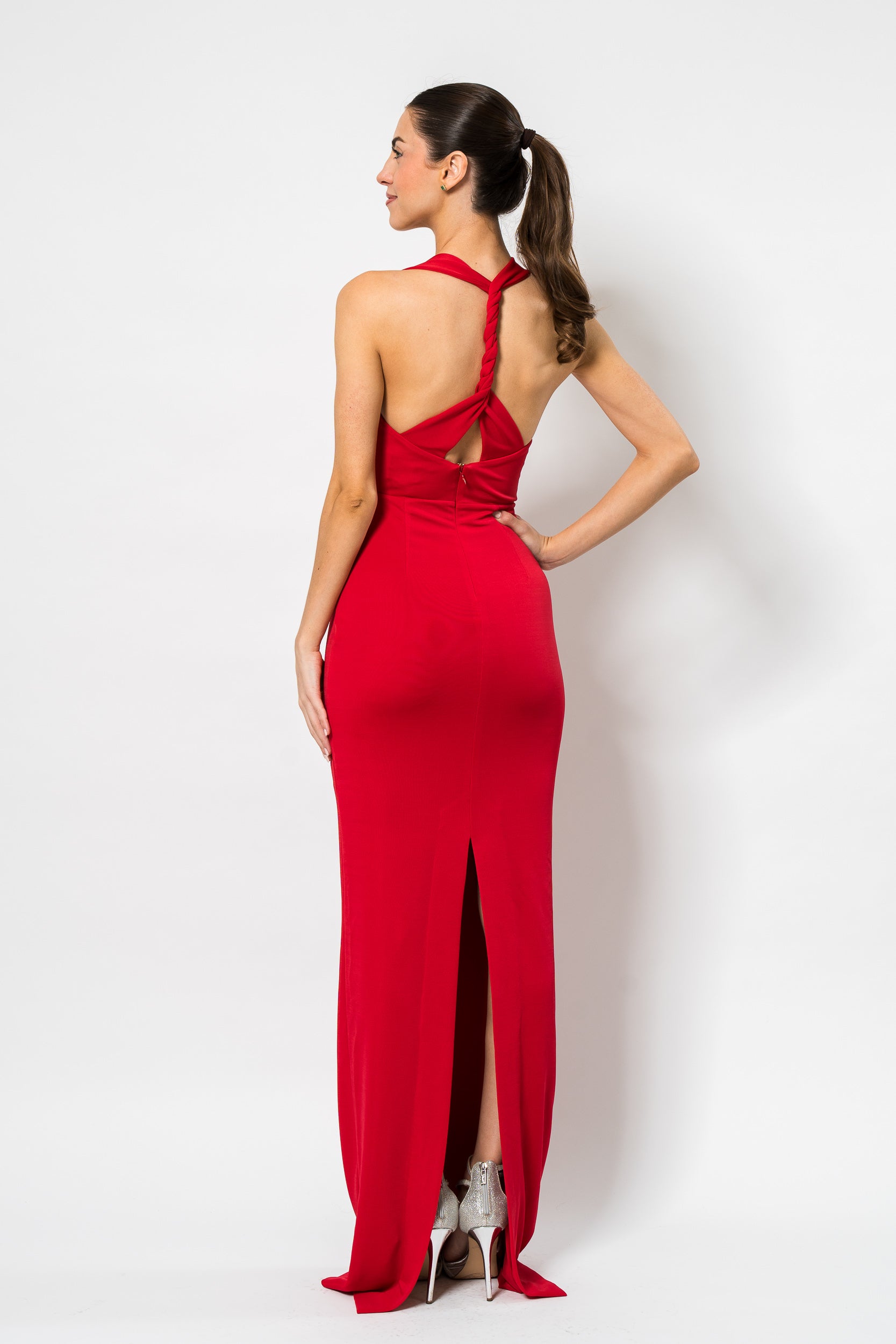Carmine Halter Maxi Dress in Red by Rebecca Vallance.