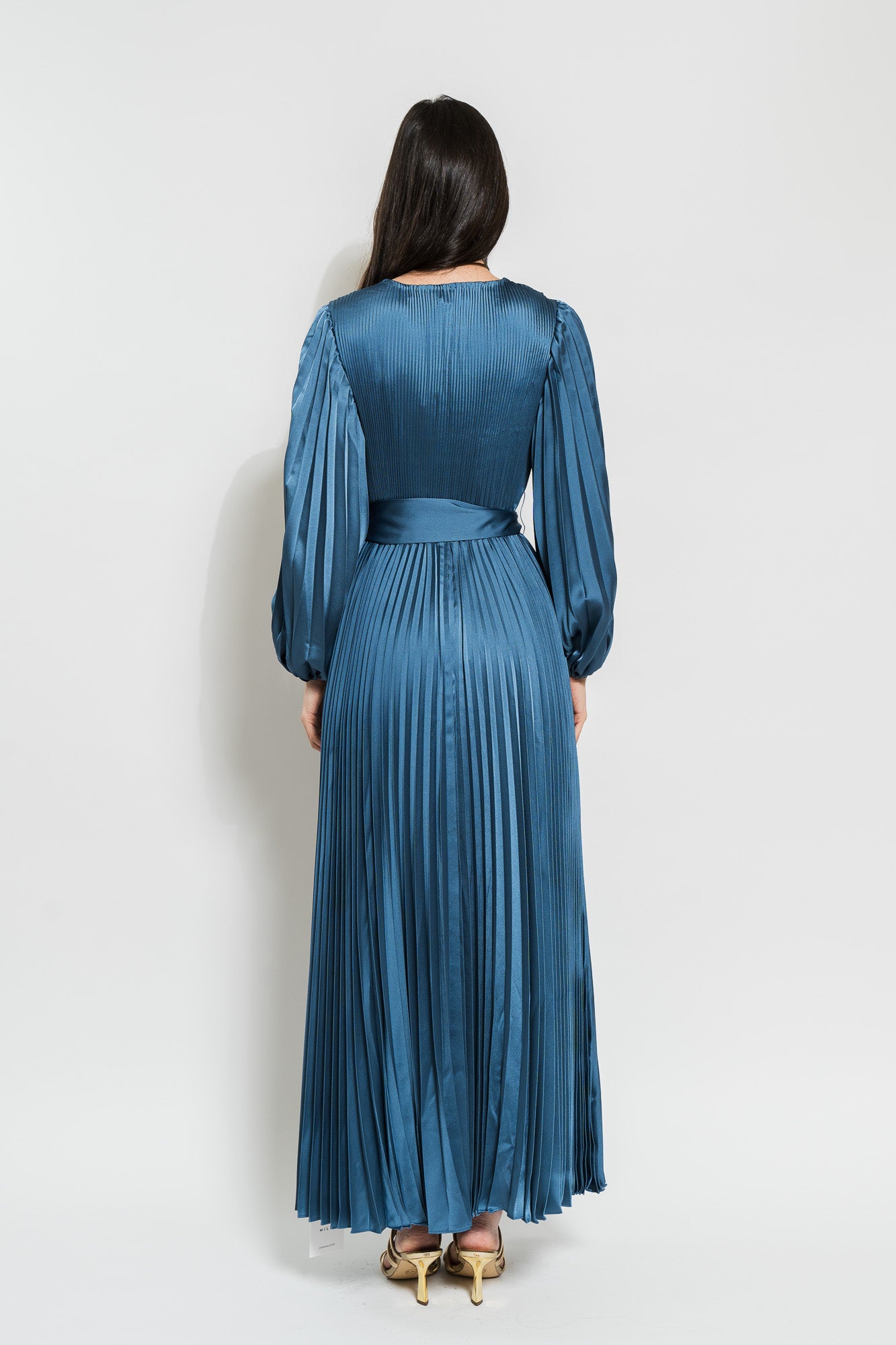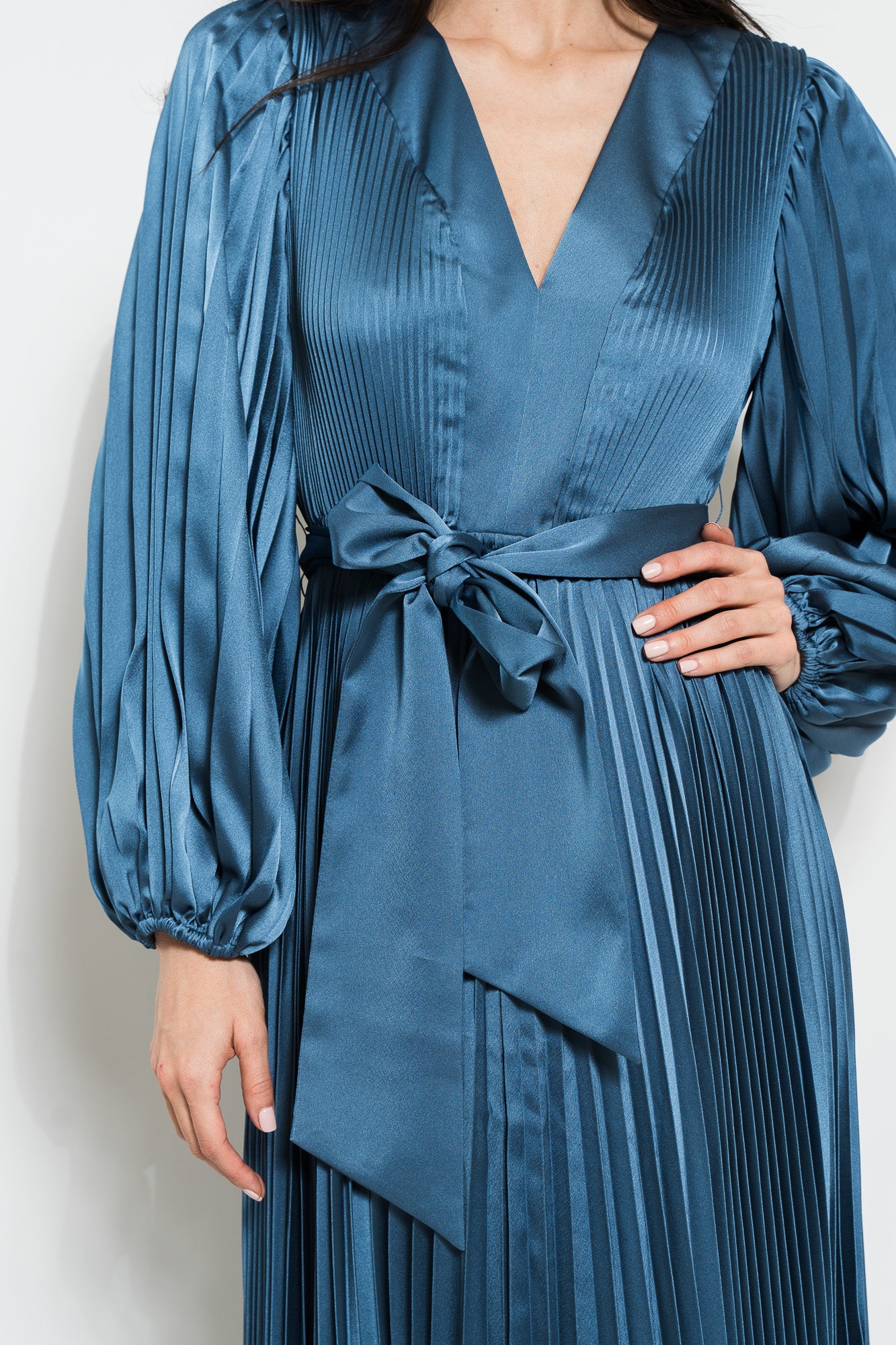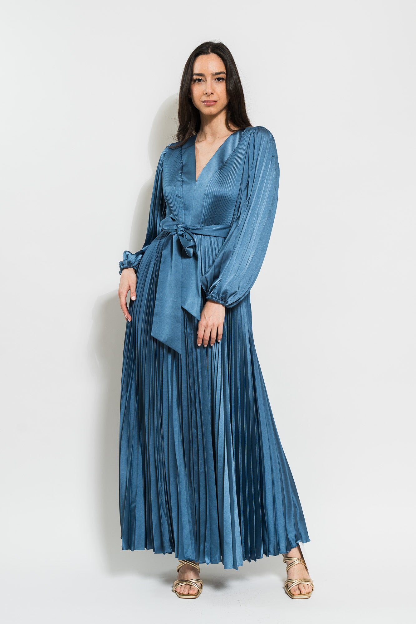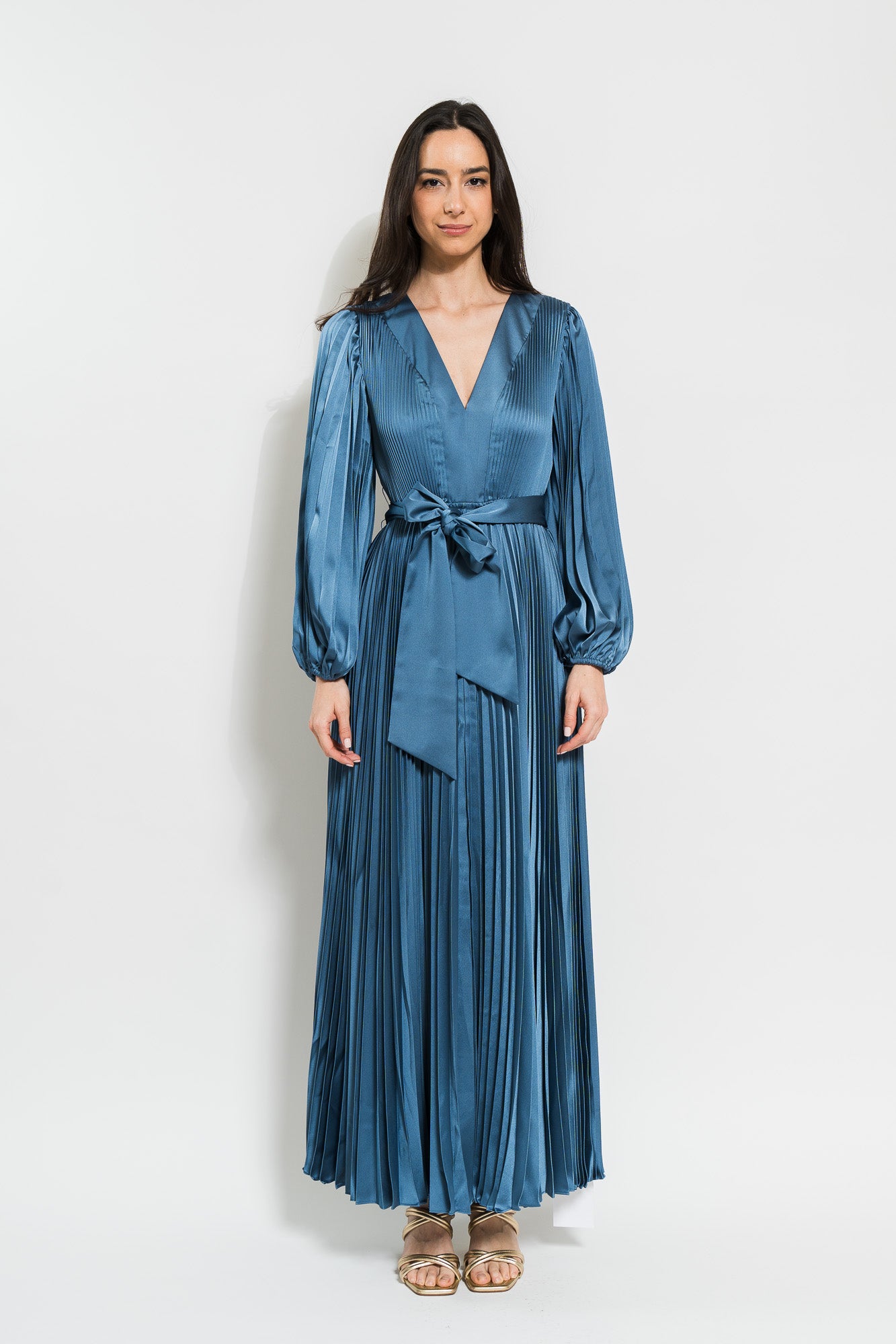 Nadie Solid Pleated Satin Maxi Dress in Stone by Milly.