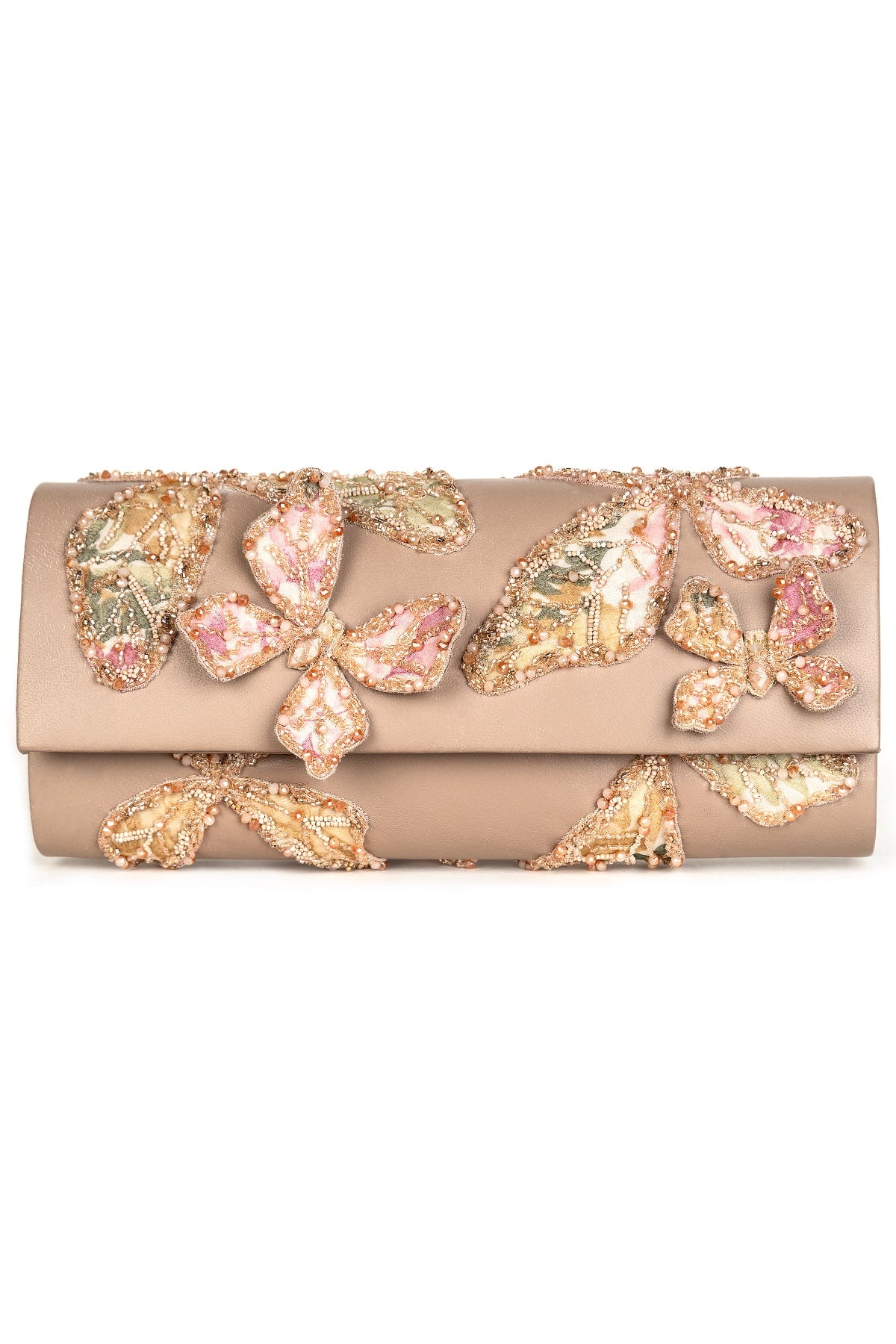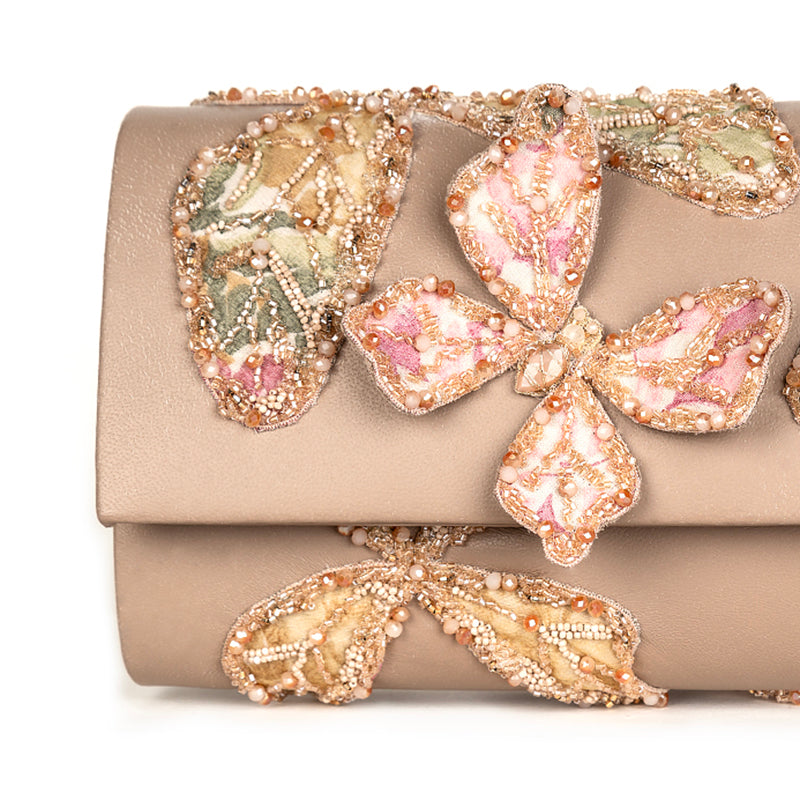 100% COTTON WOVEN WITH GLASS BEADS, METAL COMPONENTS, METALLIC THREAD, NYLON THREAD, LEATHER.