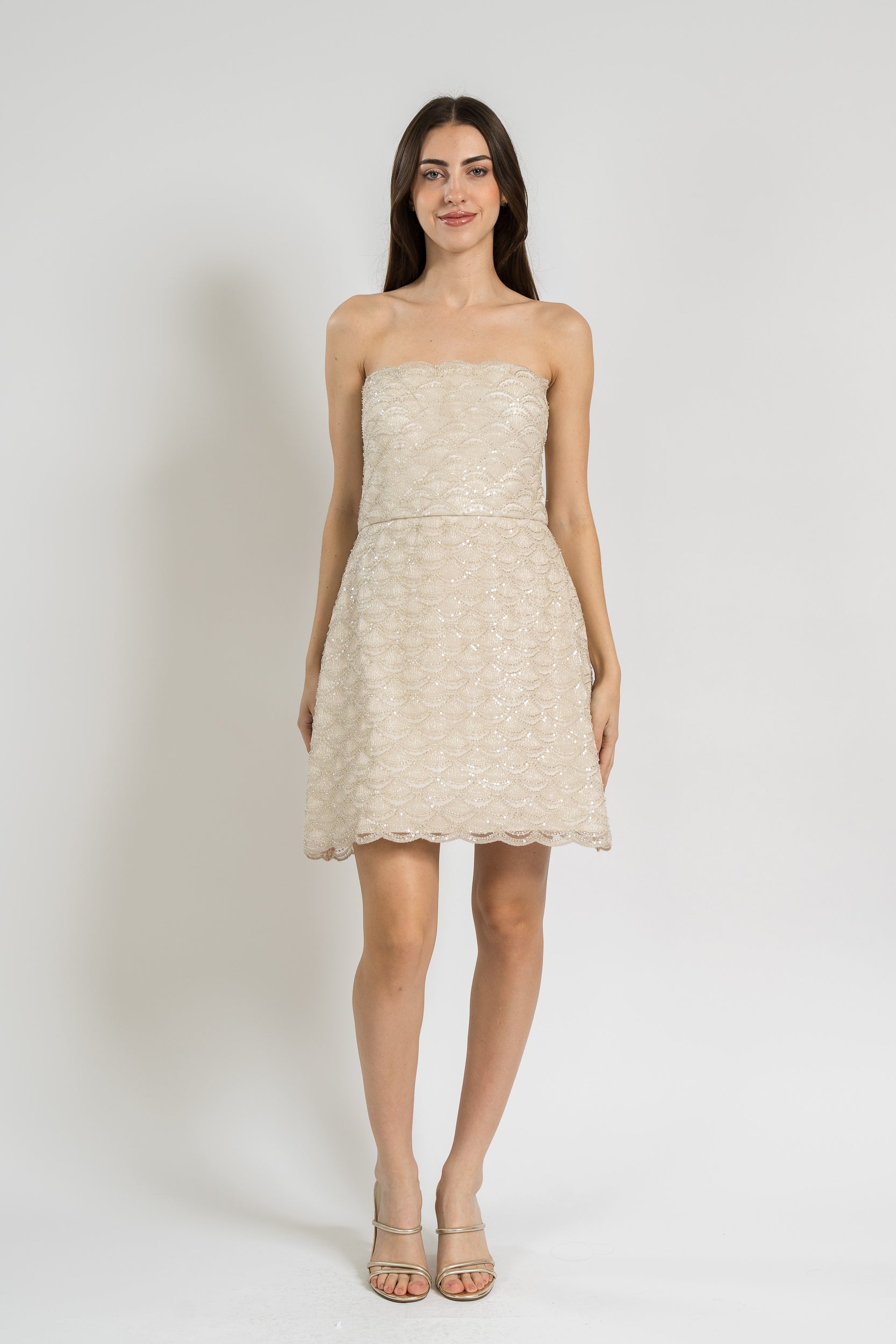 Amanda Beaded Mini Dress in Crystal by Theia.