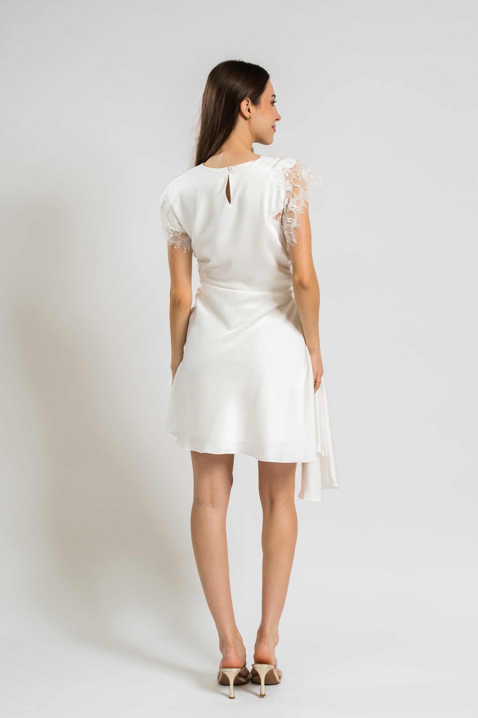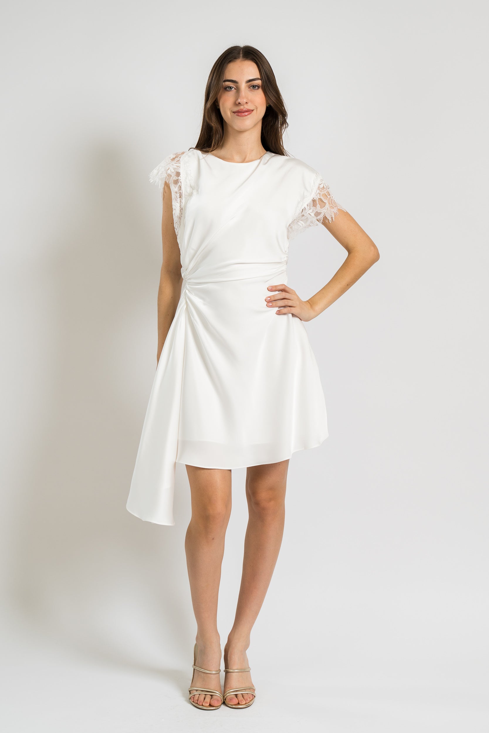 Zina Ruched Mini Dress in Ivory by Amur.
