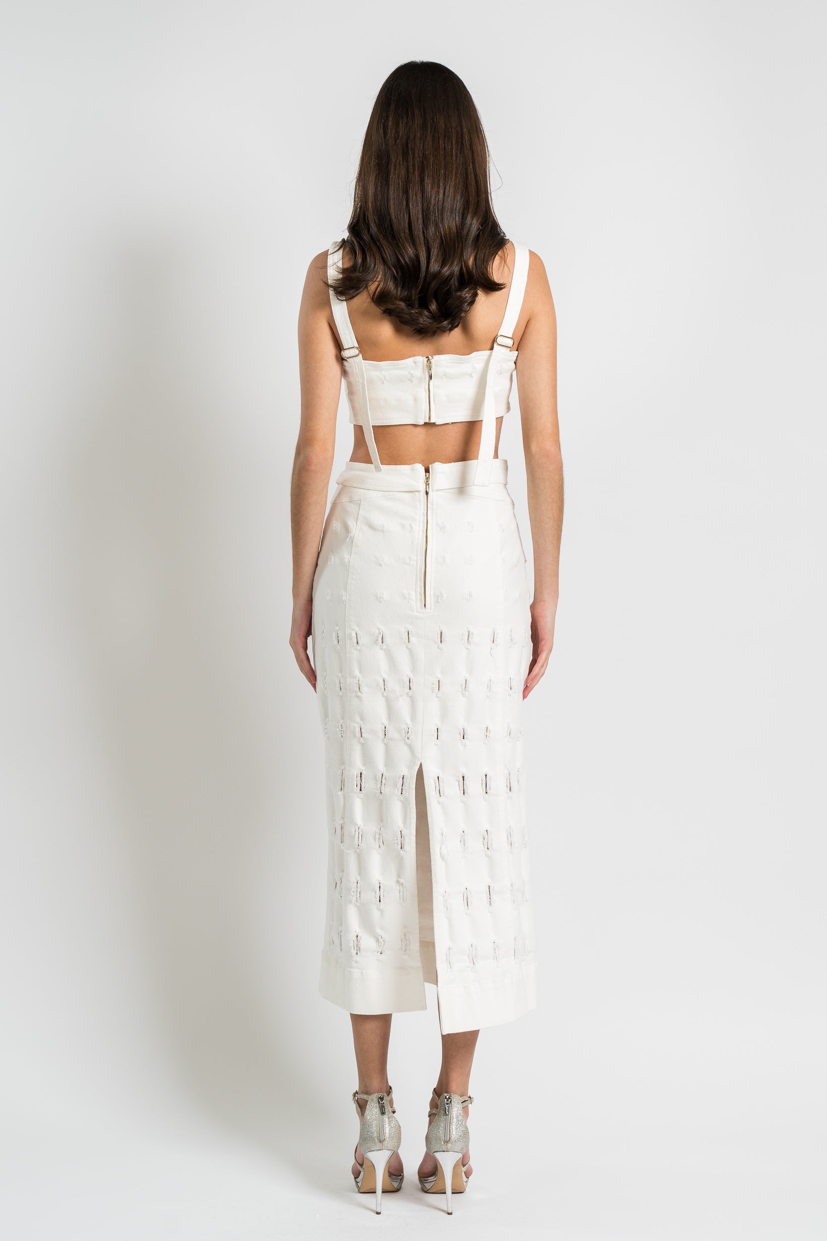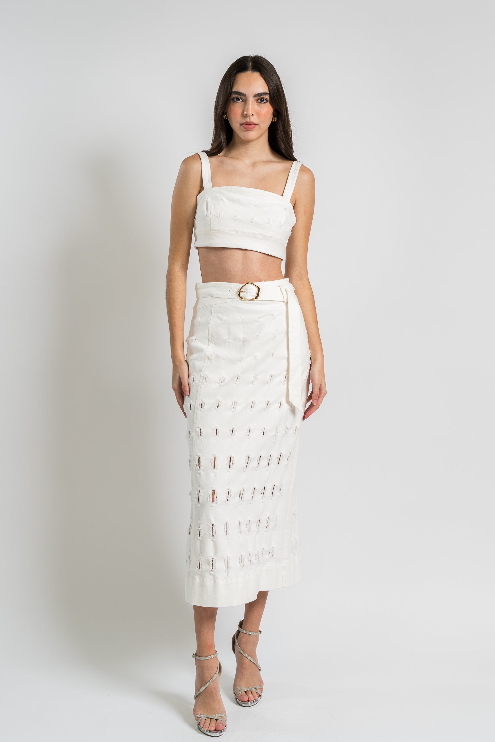 Gabi Textured Twill Top & Jay Midi Skirt in Sea Salt by Amur.