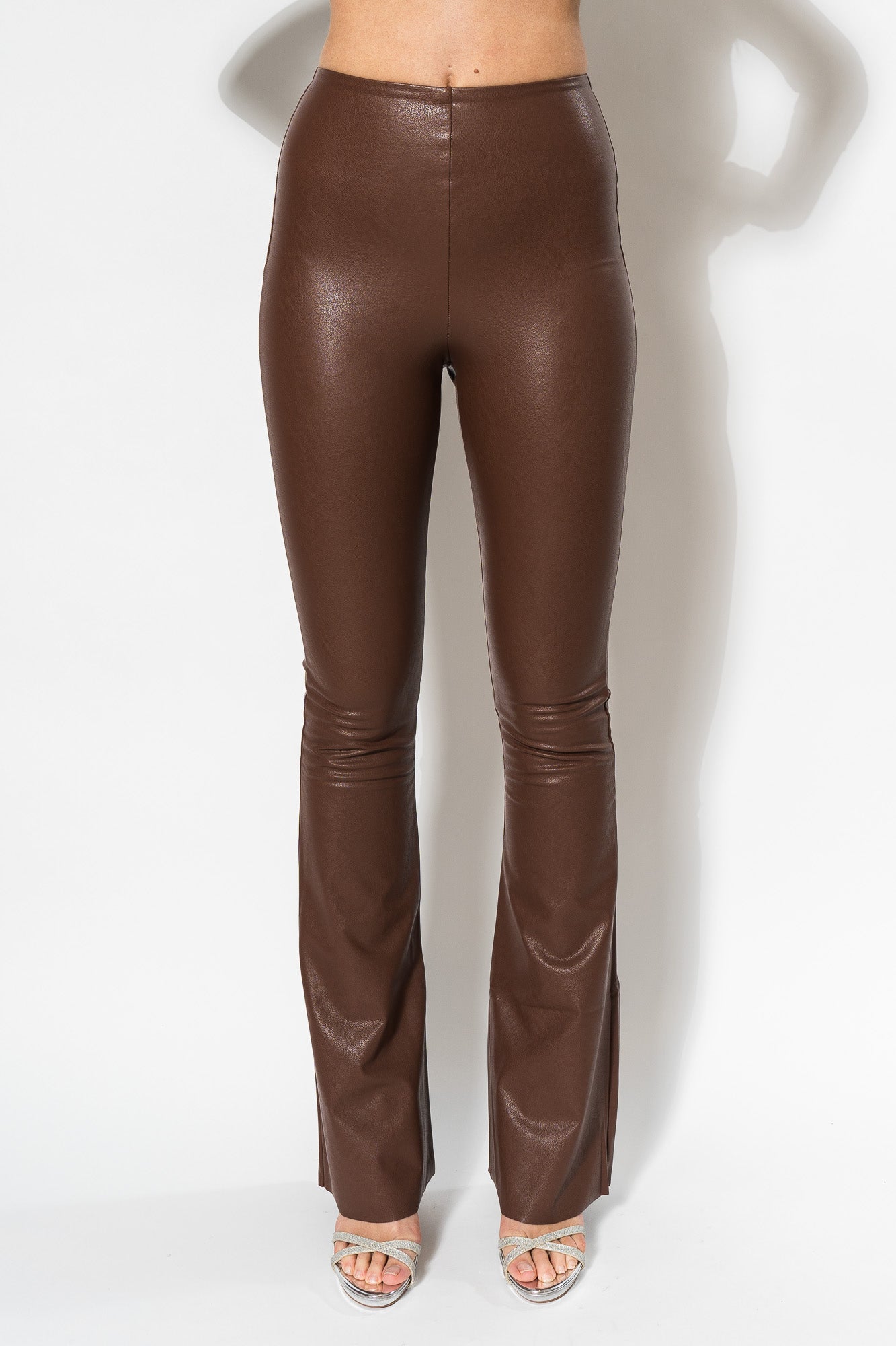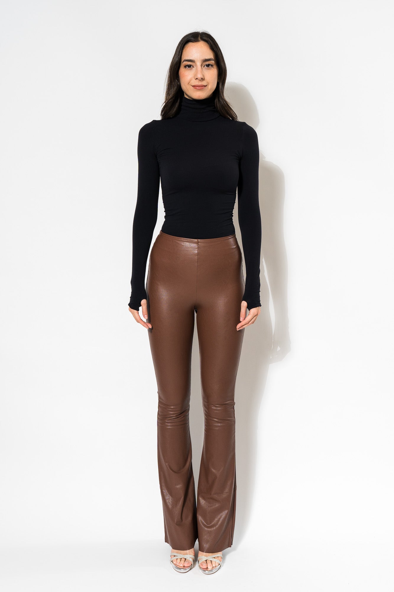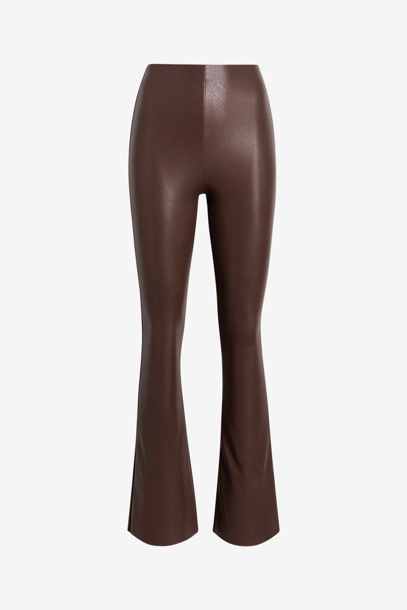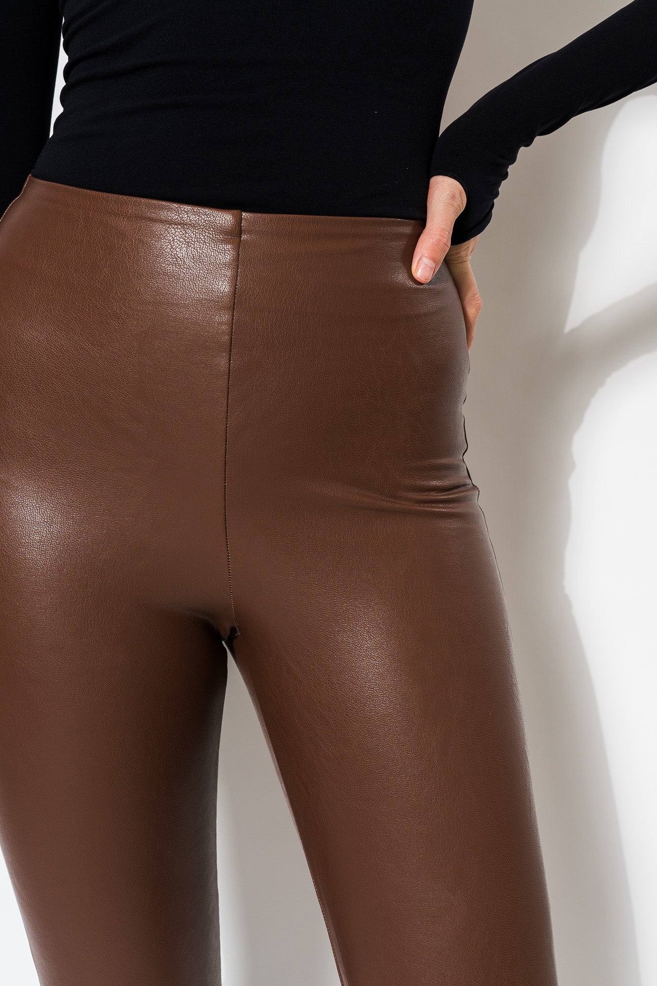 Four-way stretch faux leather leg (97% viscose, 3% elastane with polyurethane coating), waistband (72% nylon, 28% elastane)