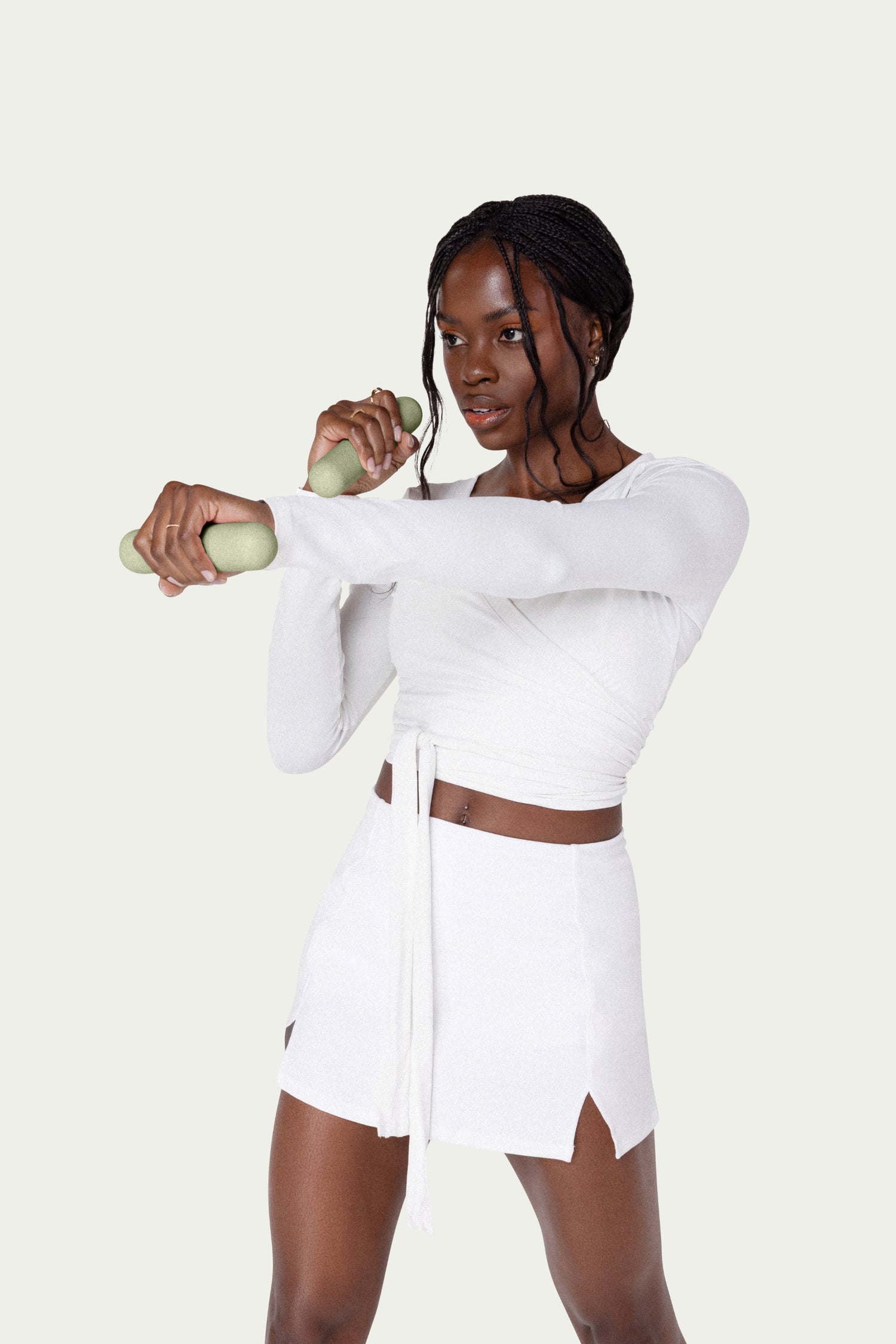 Bala Bars have a sleek, ergonomic design that evenly distributes the weight for a comfortable, user-friendly workout in Sage by Bala.