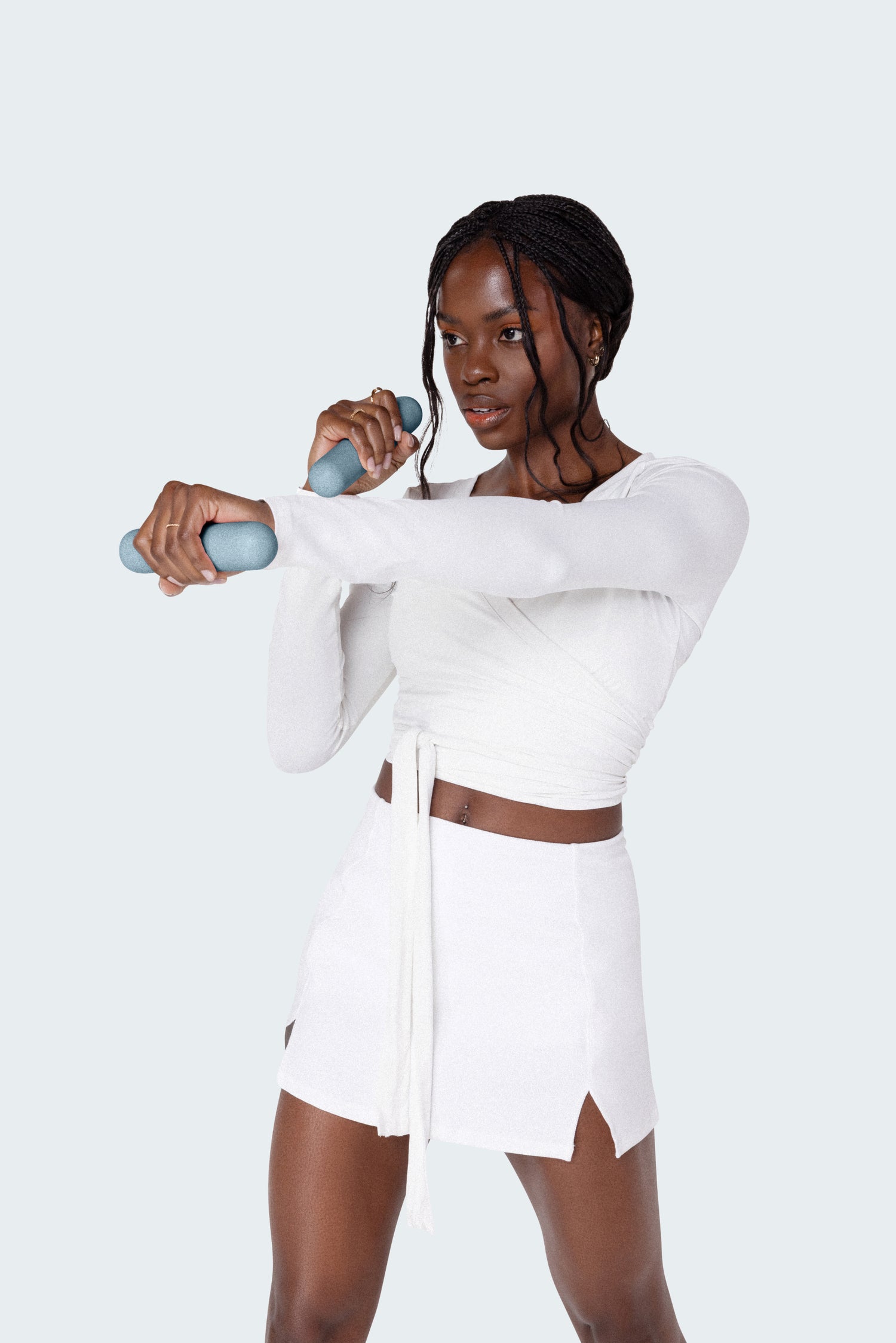 Bala Bars have a sleek, ergonomic design that evenly distributes the weight for a comfortable, user-friendly workout in Sea by Bala.