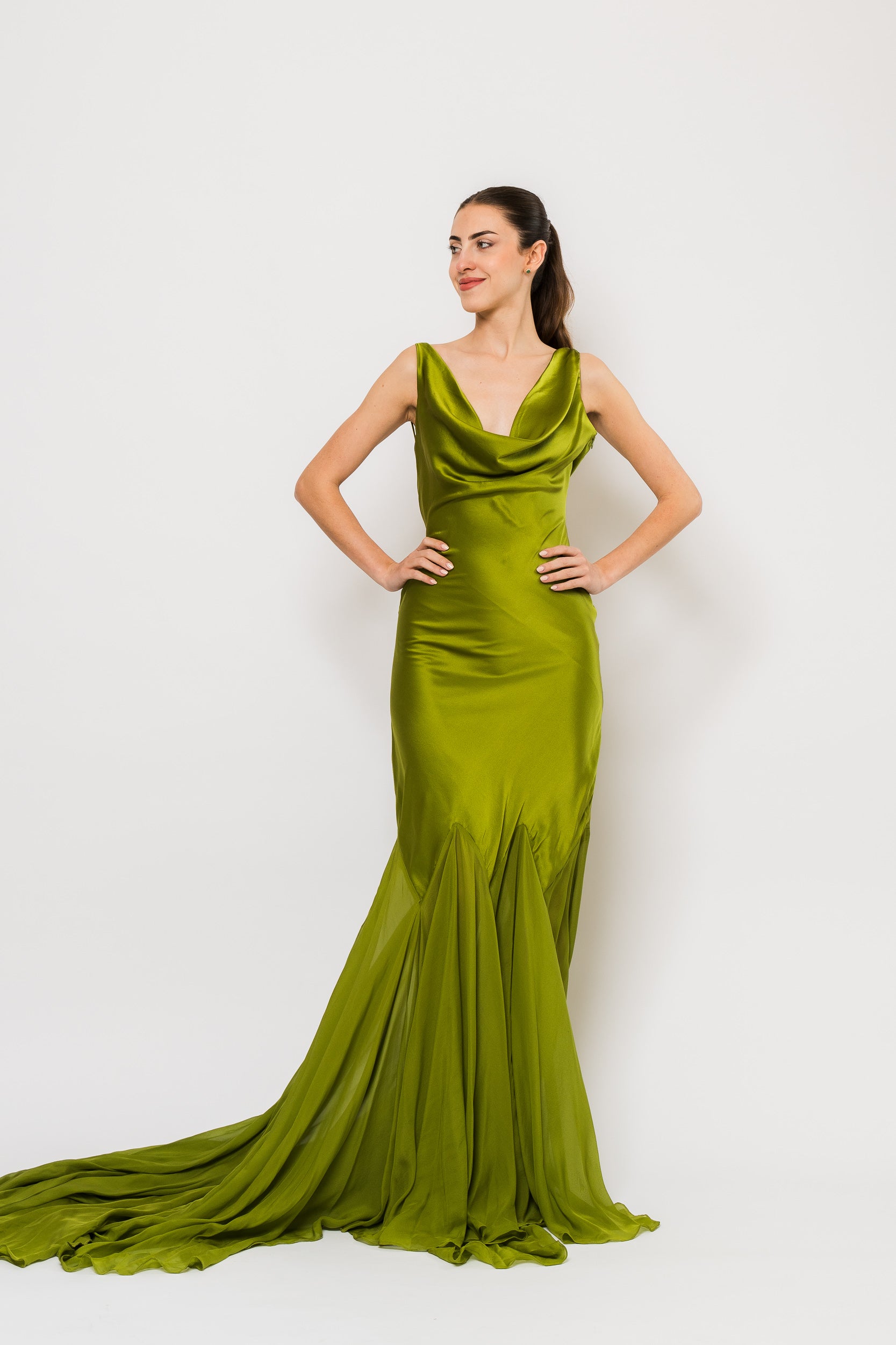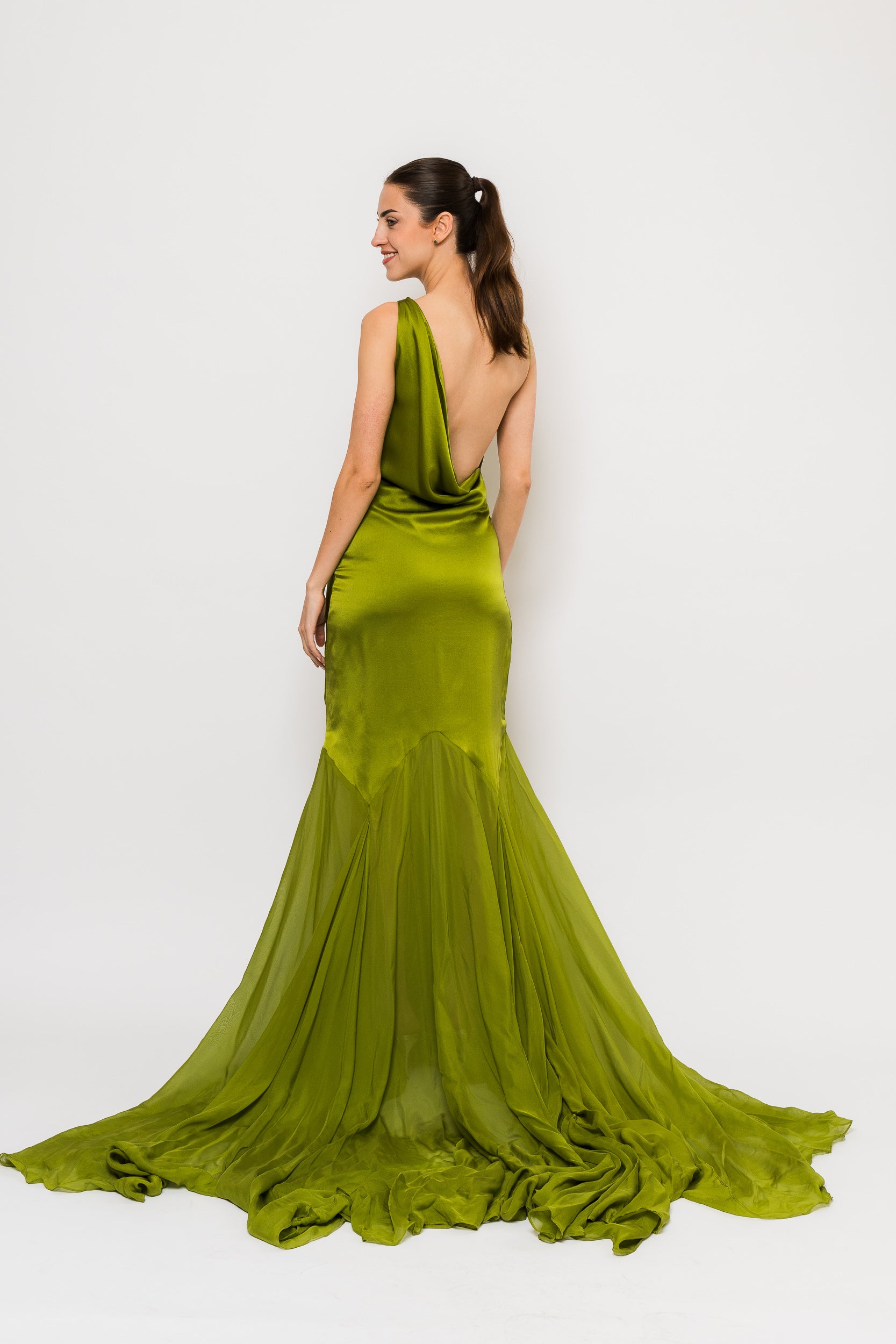 The Collen is a true statement piece elegant, elevated, and designed for special occasions where timeless glamour is essential in Lime Green by Demme by Gabiella.