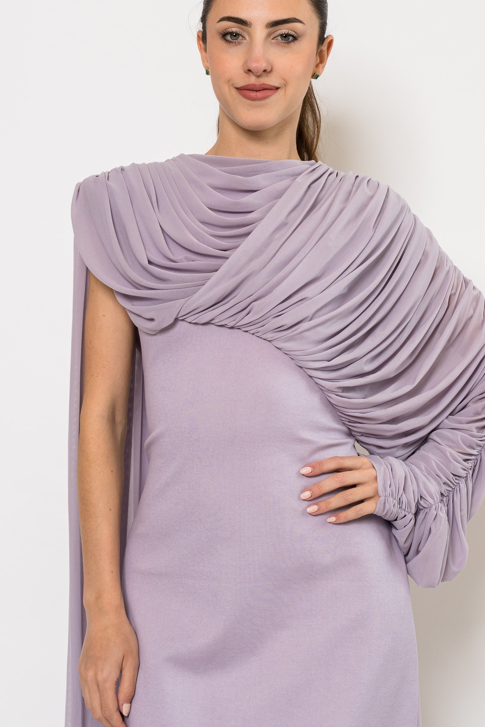 The Arienne dress offers a clean, structured fit that flatters the body while maintaining stretch and comfort in Periwinkle by Demme by Gabriella.
