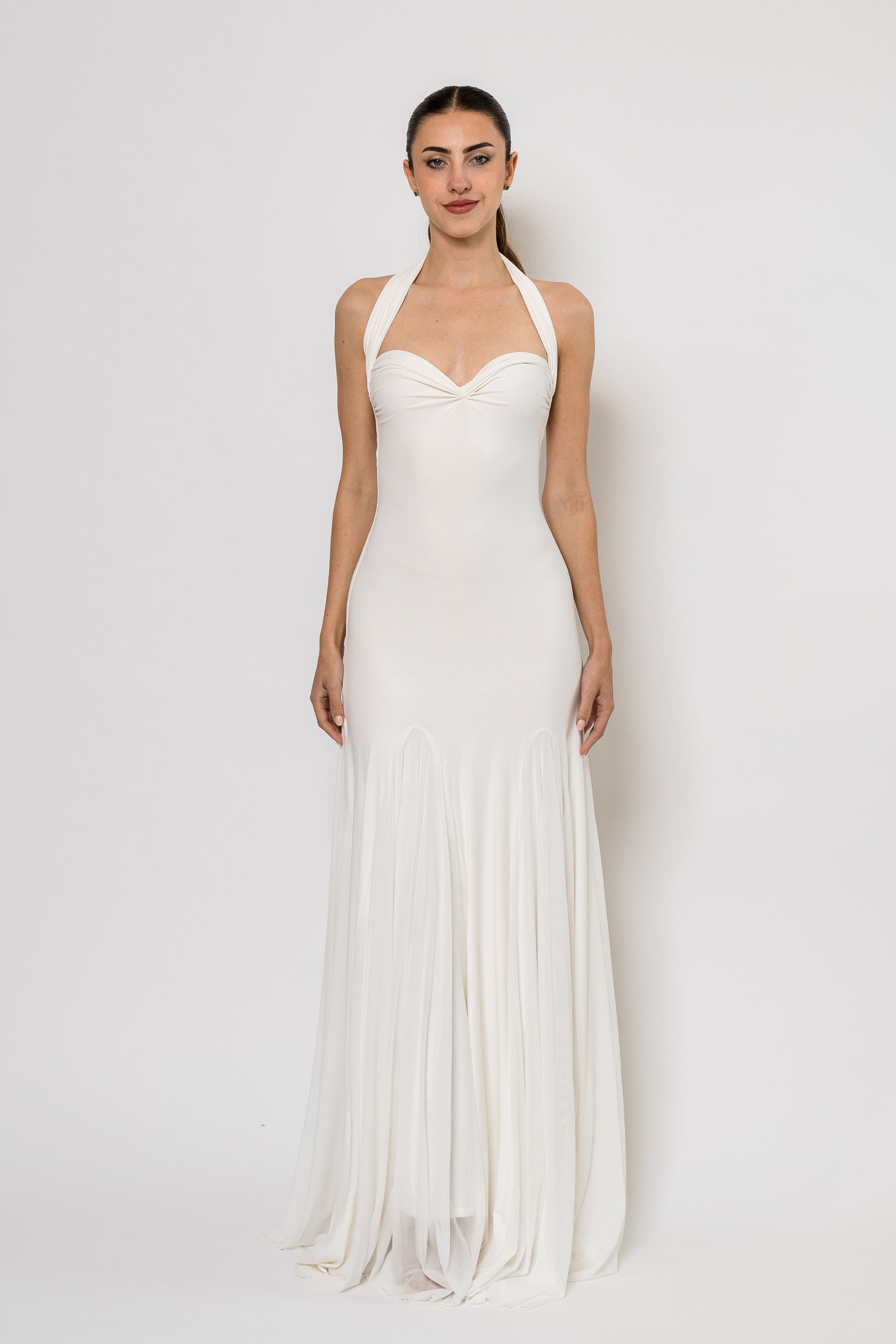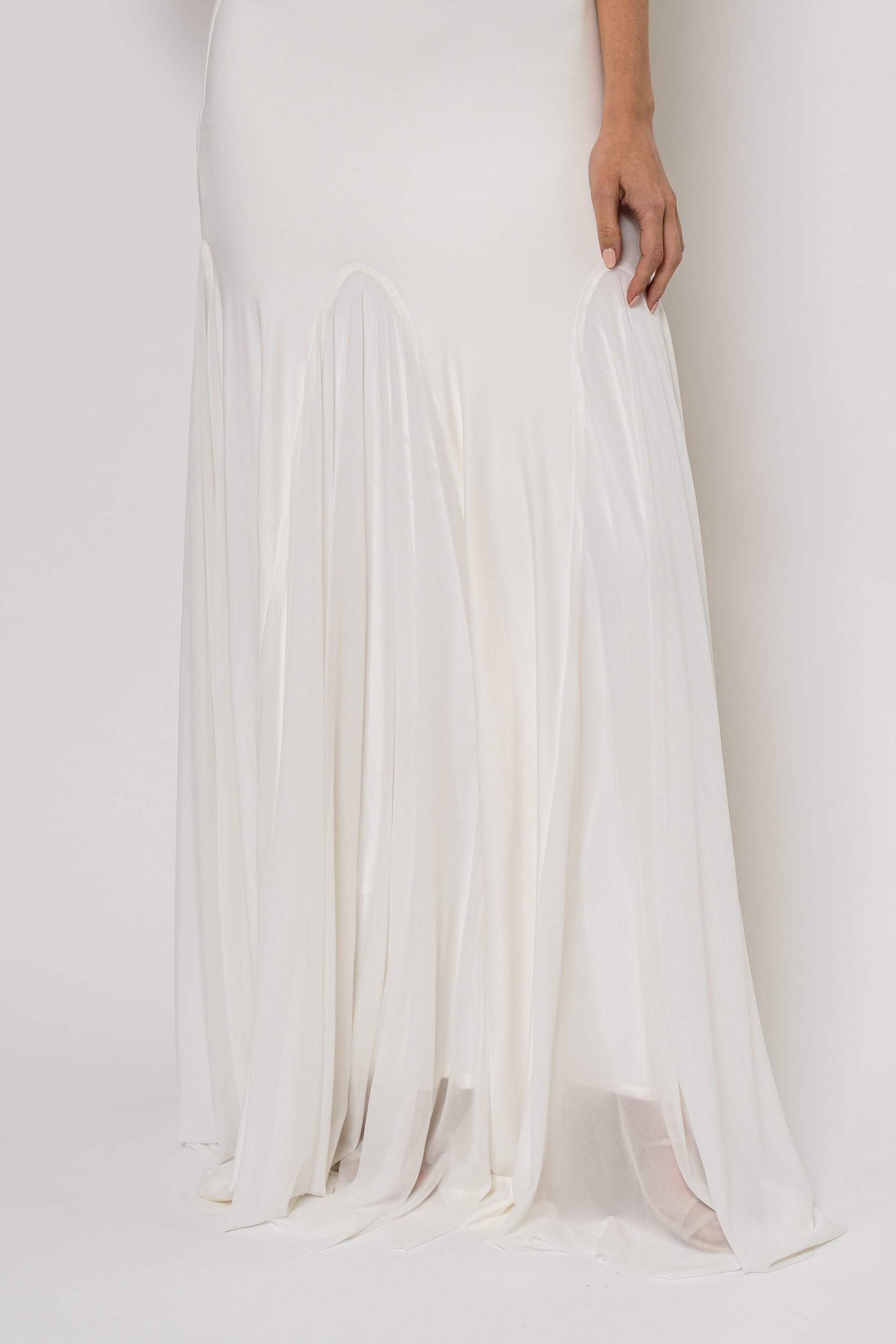 The Berta elegant strapless gown seamlessly combines sophistication and drama with its thoughtfully designed details in White/Beige by Demme by Gabriella.
