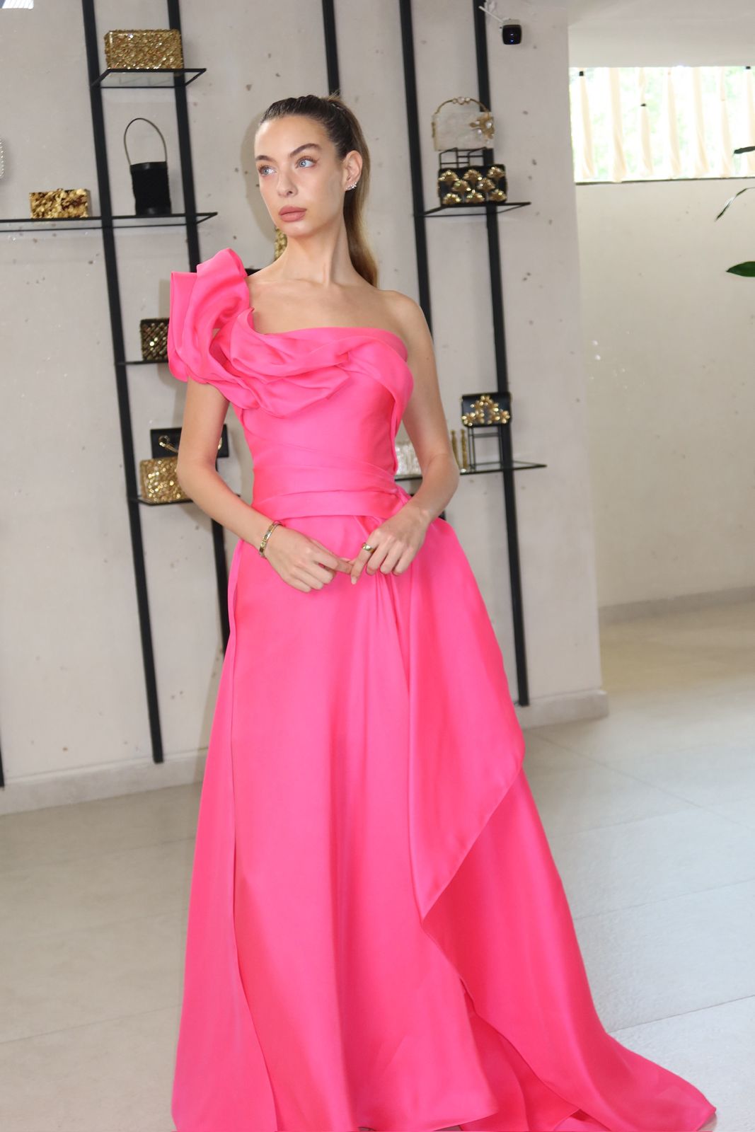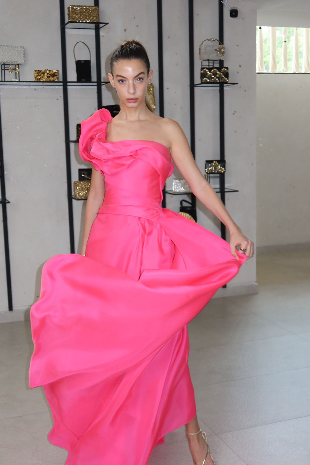 Strapless Draped Silk Gazar in Pink by Rubin Singer.