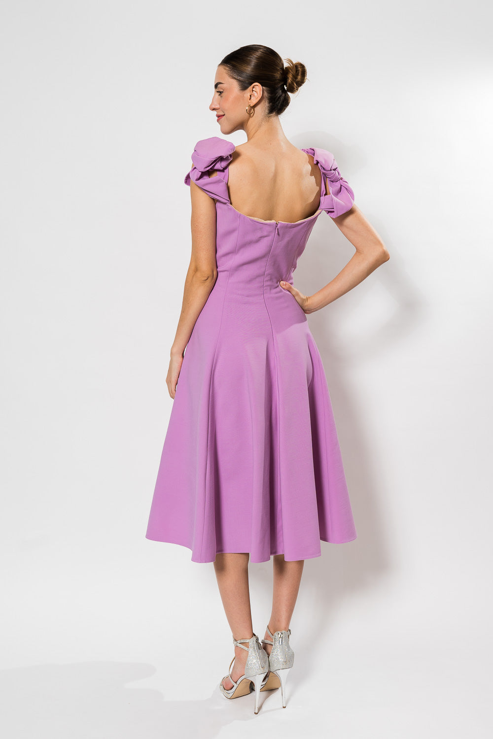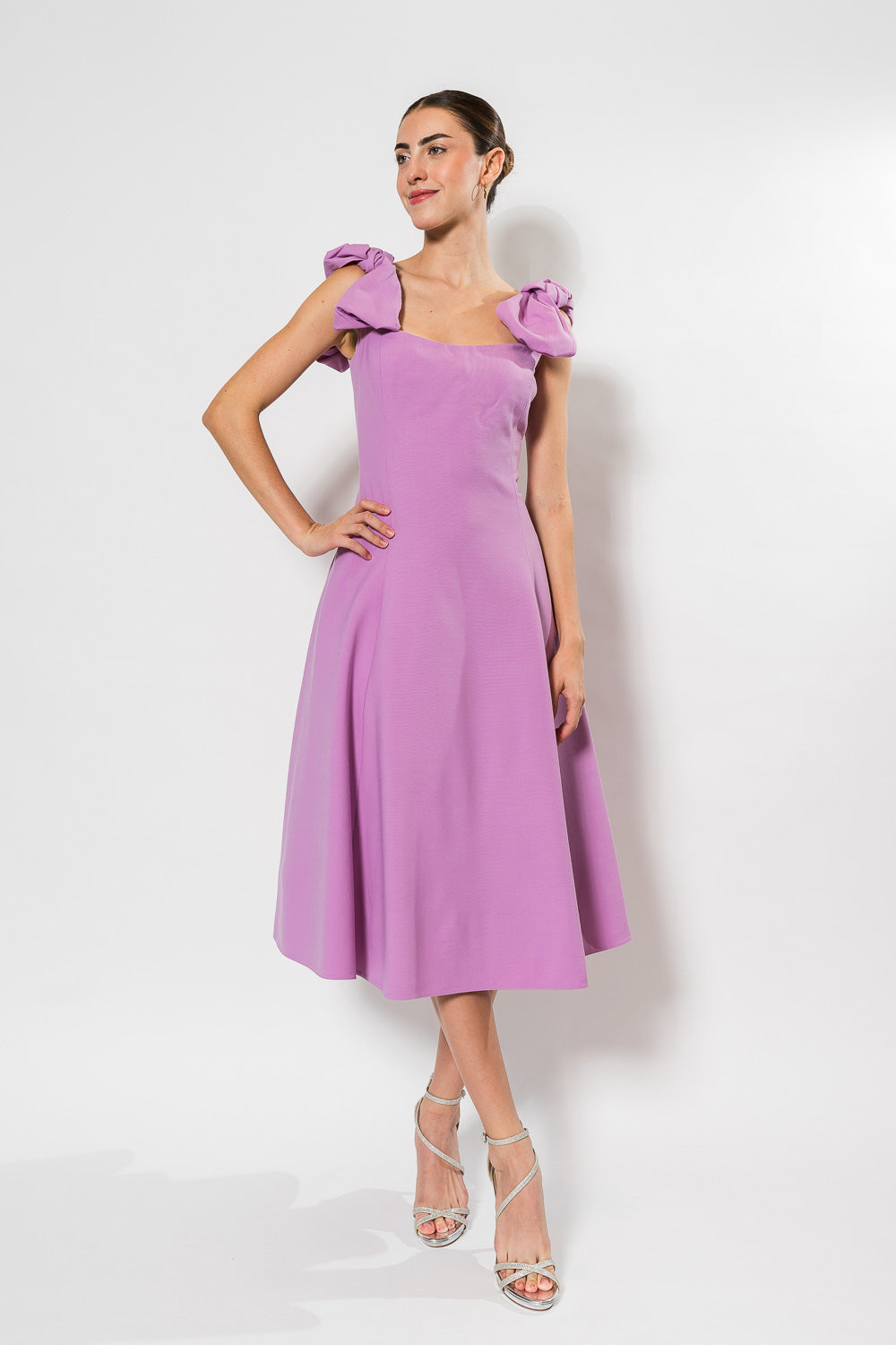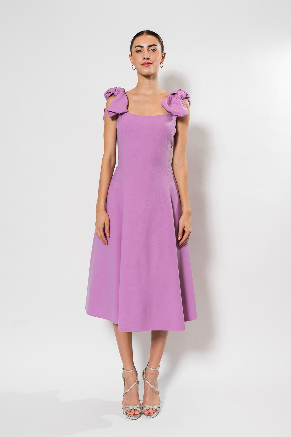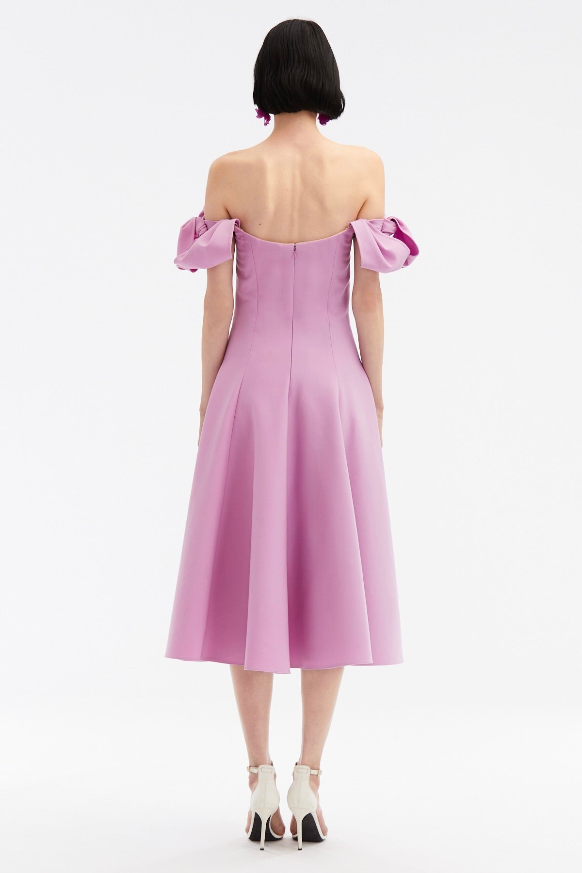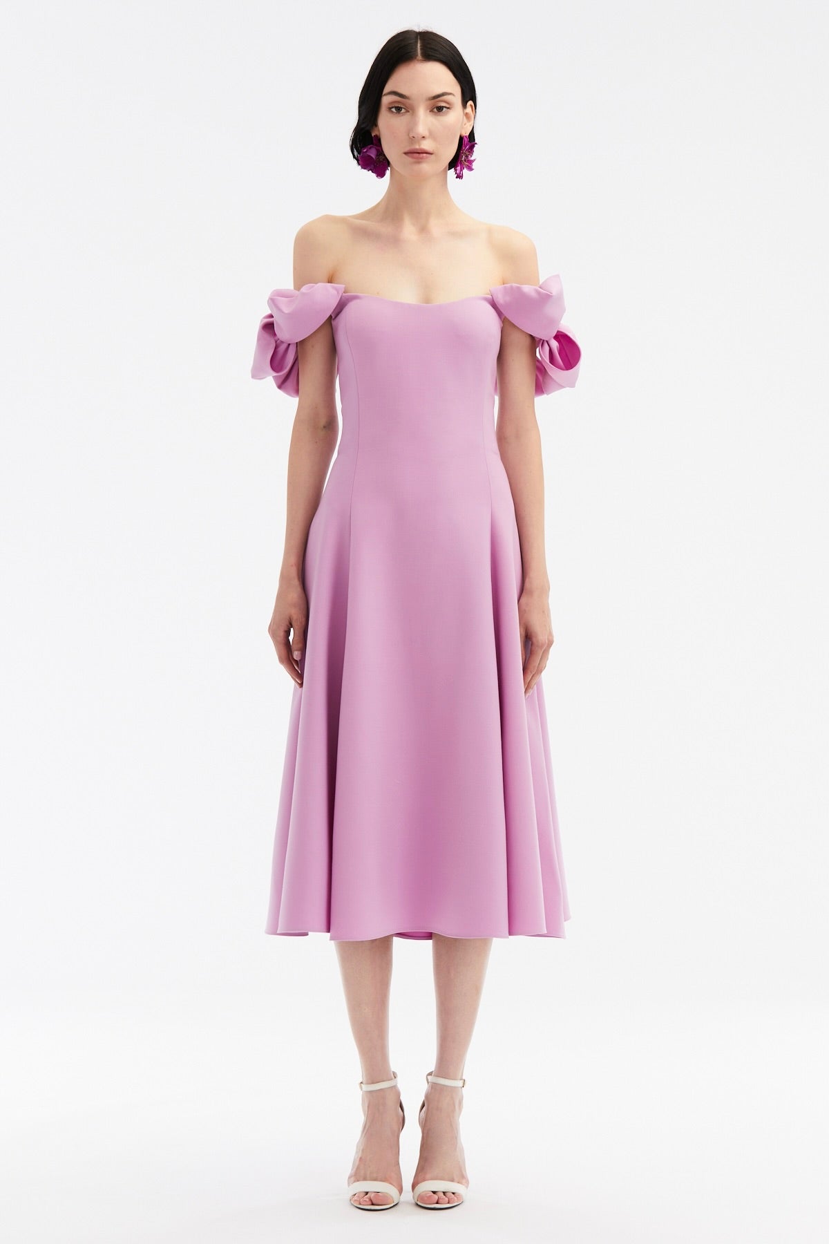 Off Shoulder Bow Detail Full Skirt Dress in Lupine by Oscar de la Renta.