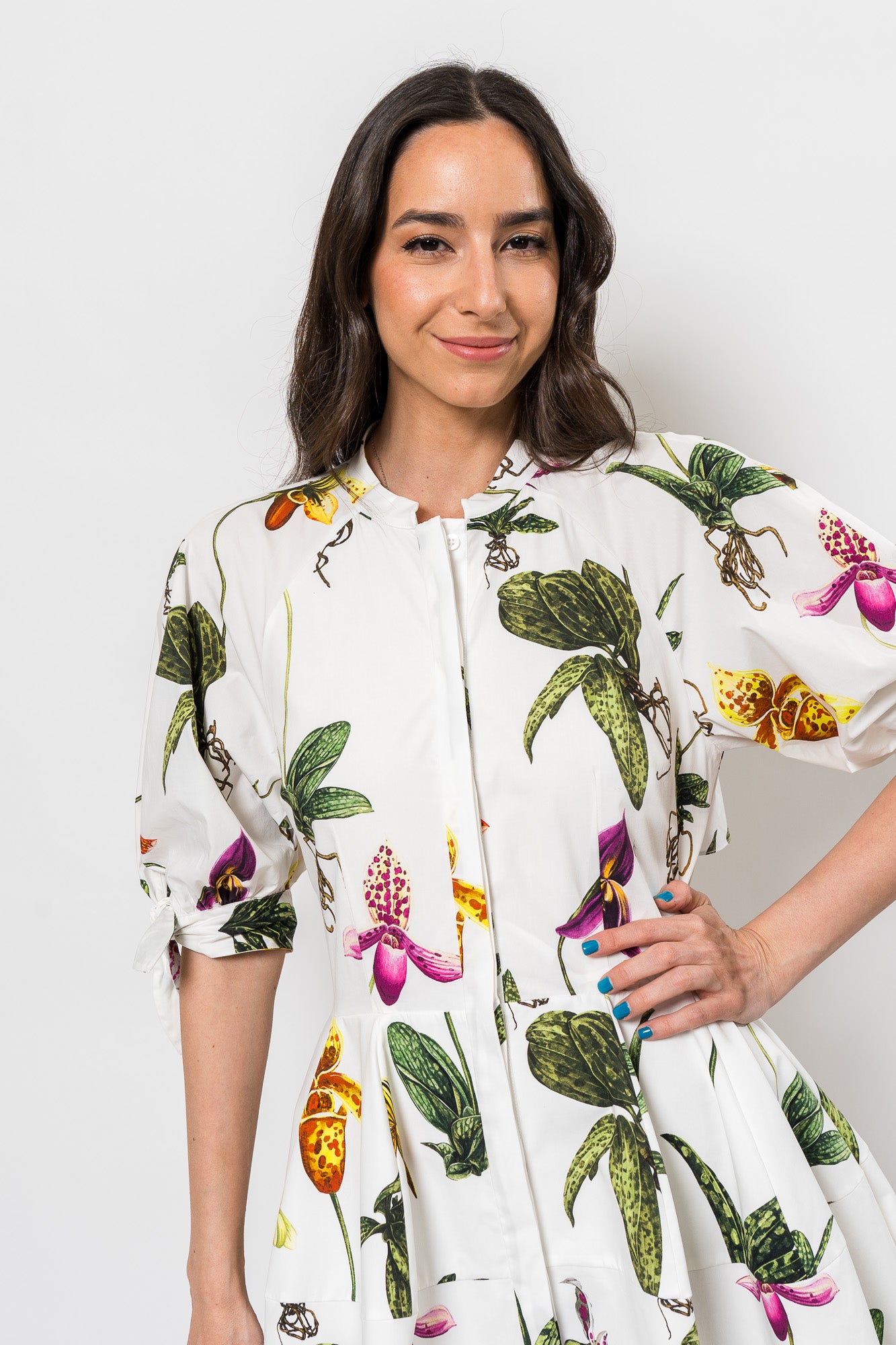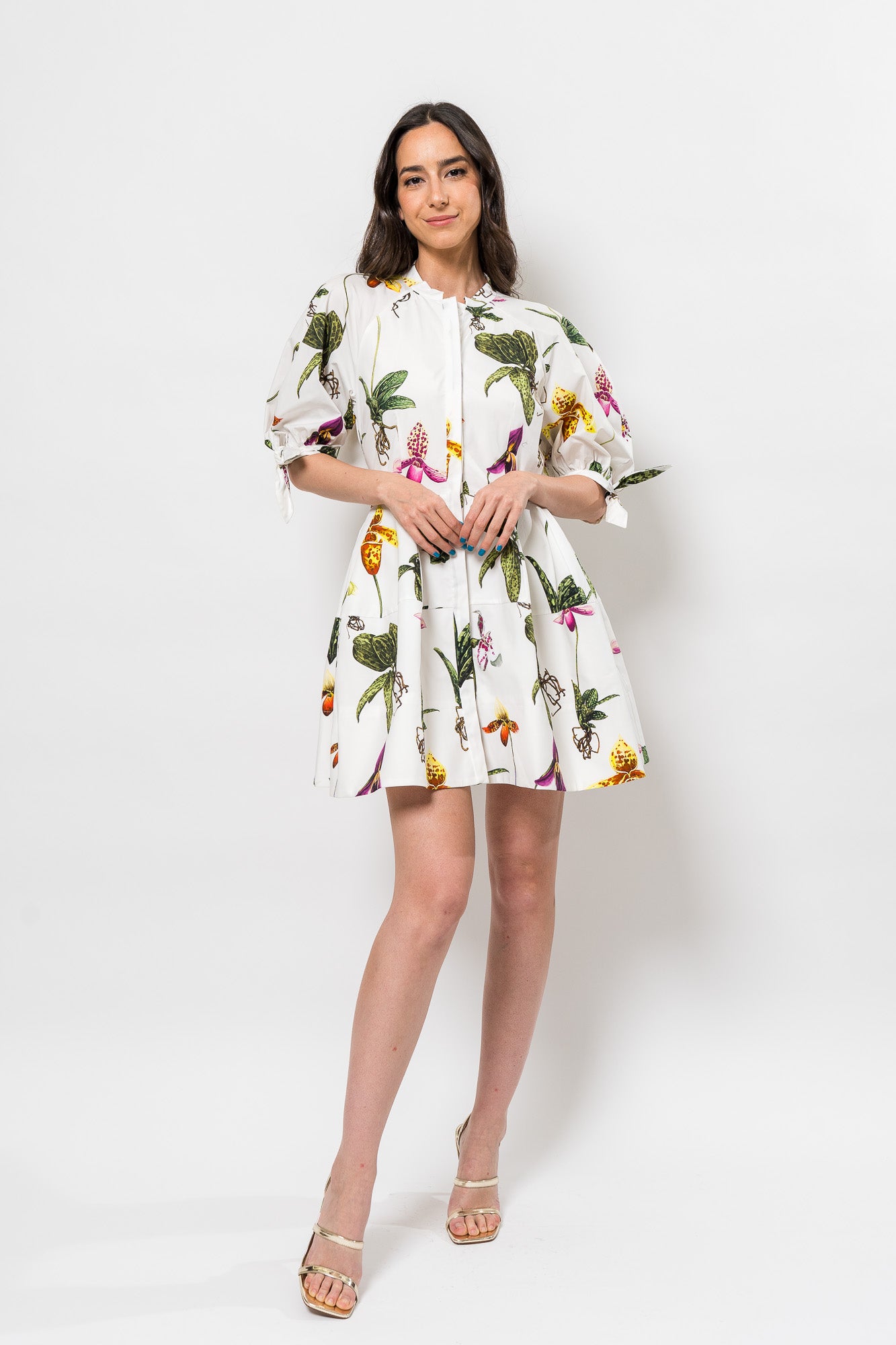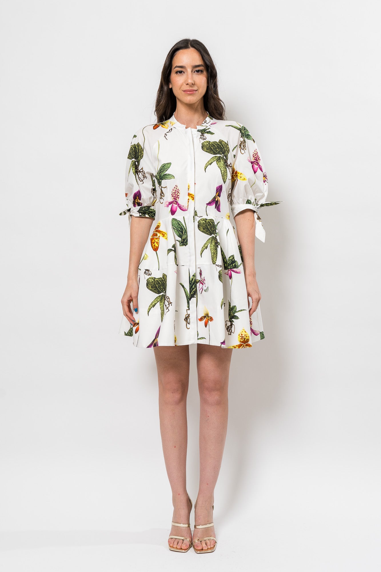 Orchid Cotton Poplin Puff Sleeve Dress in White Multi by Oscar de la Renta.
