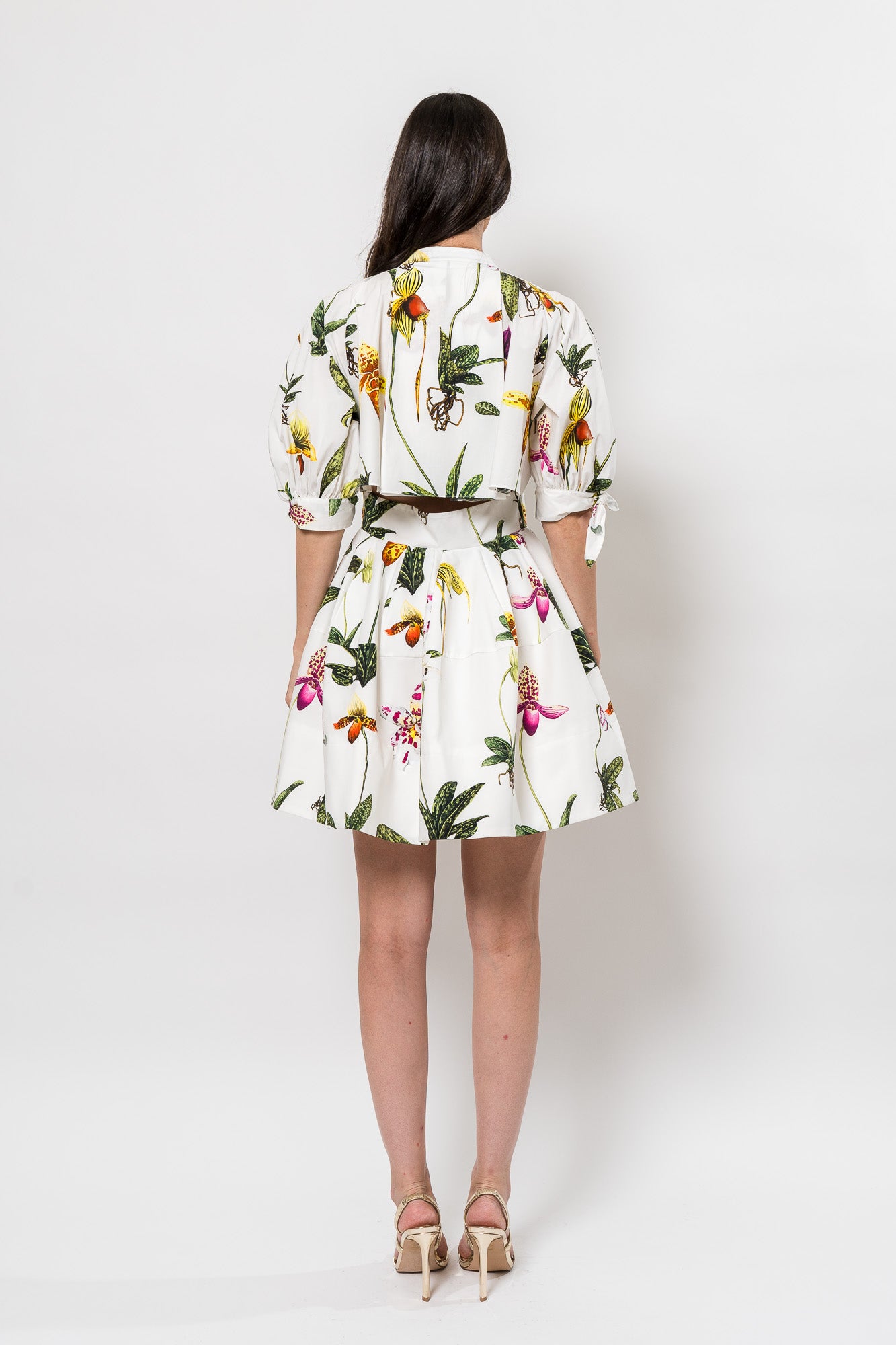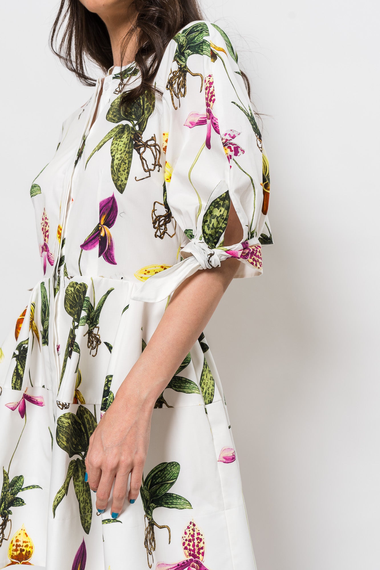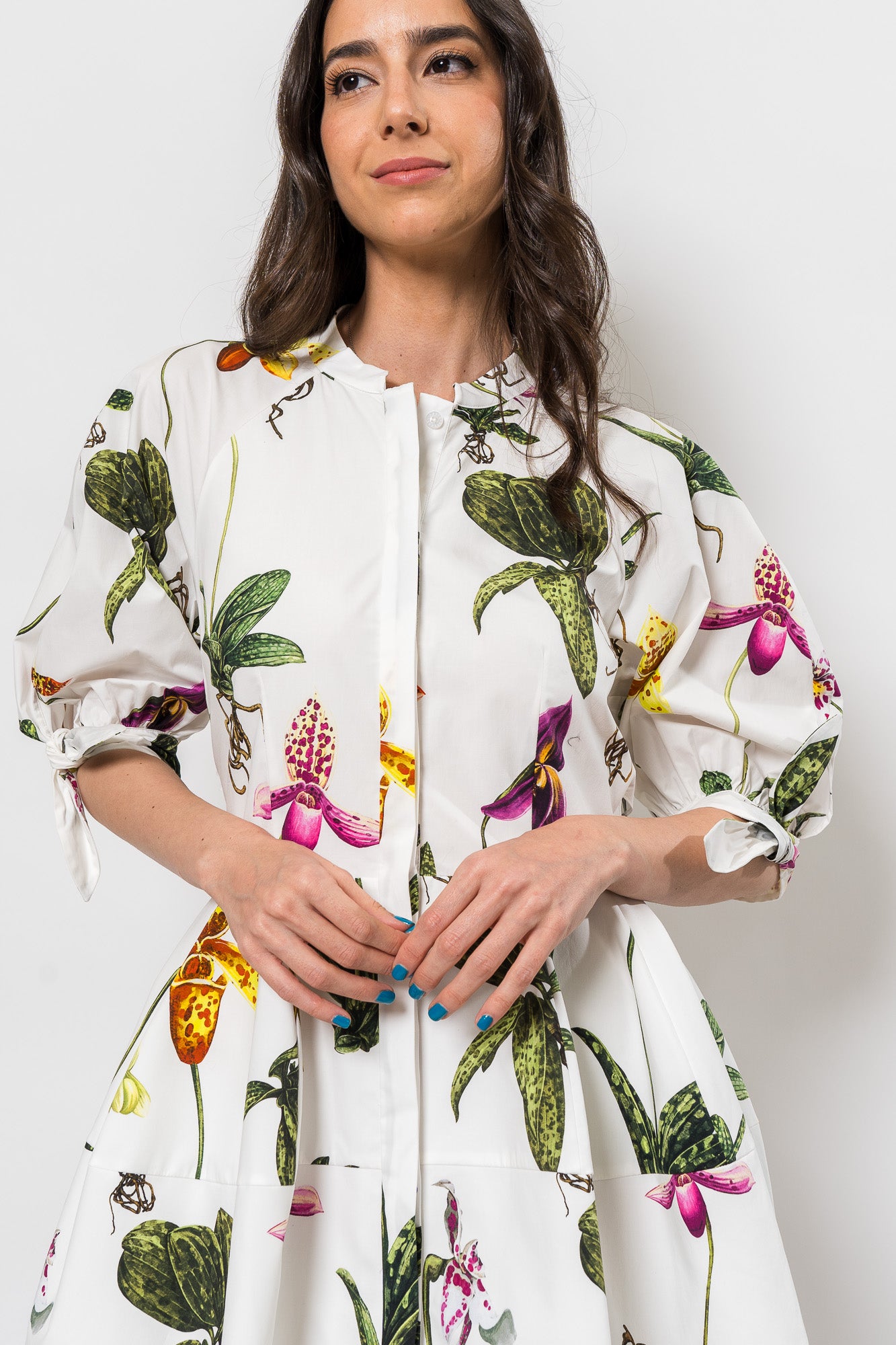 Orchid Cotton Poplin Puff Sleeve Dress in White Multi by Oscar de la Renta.
