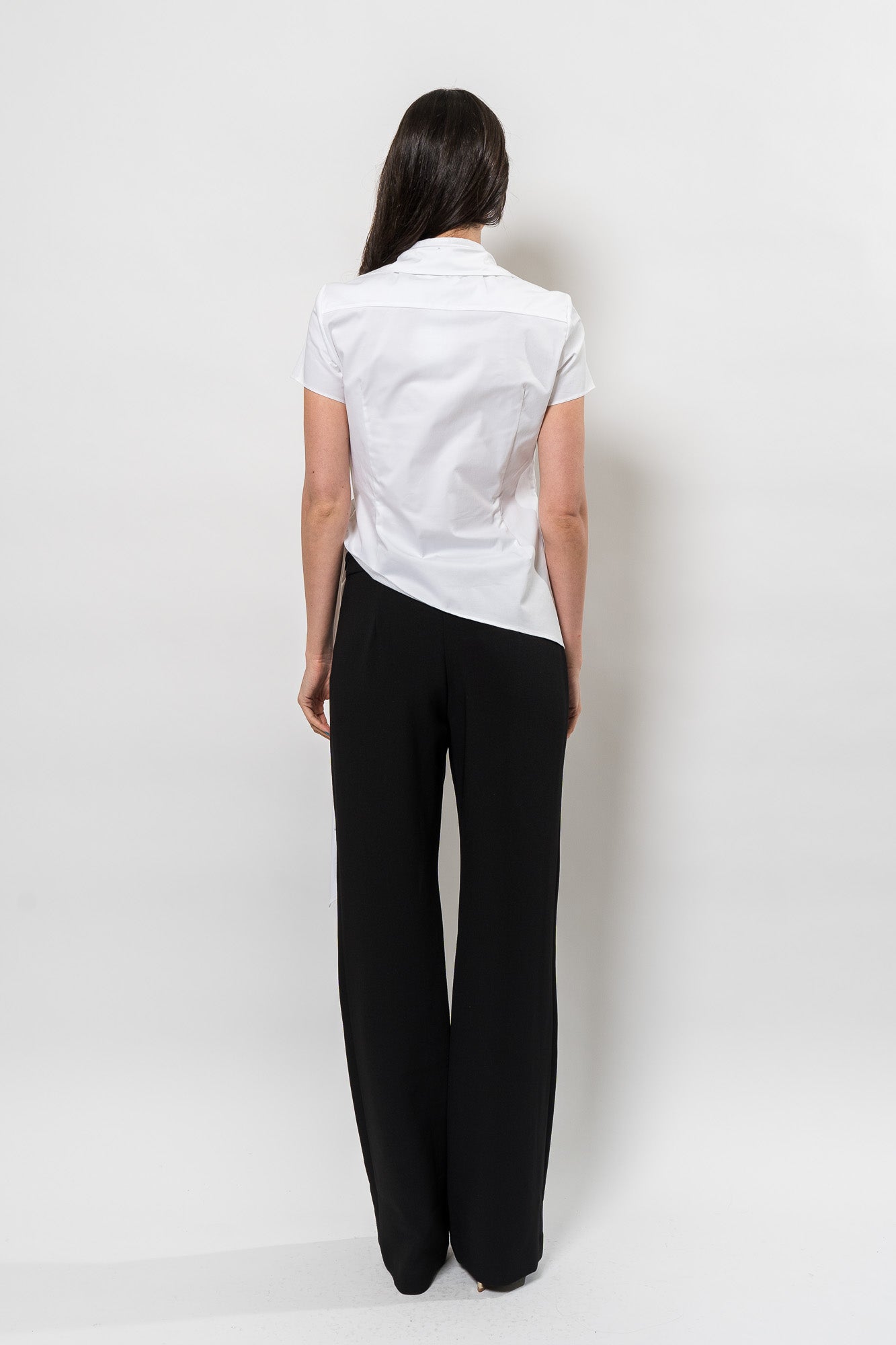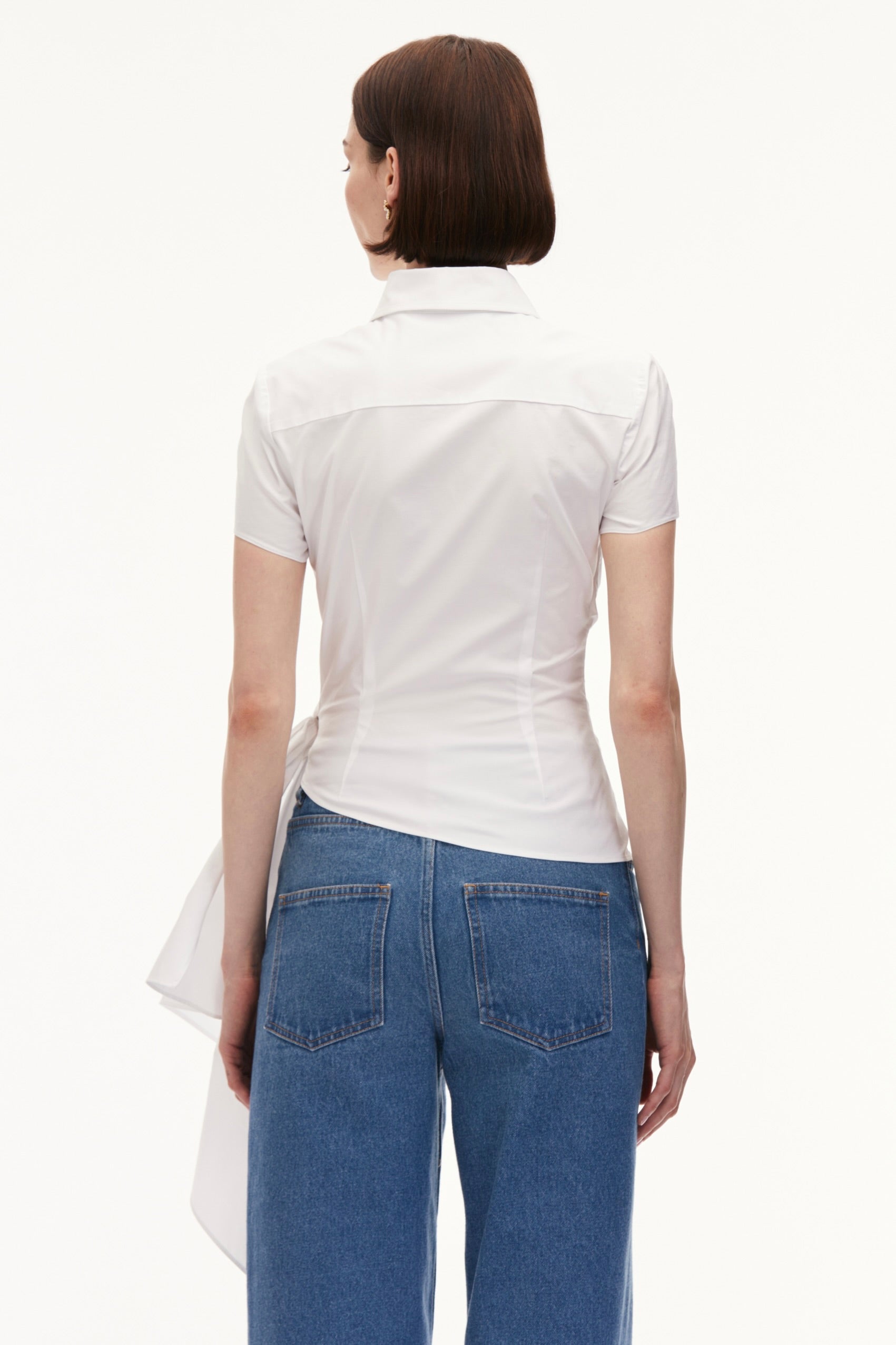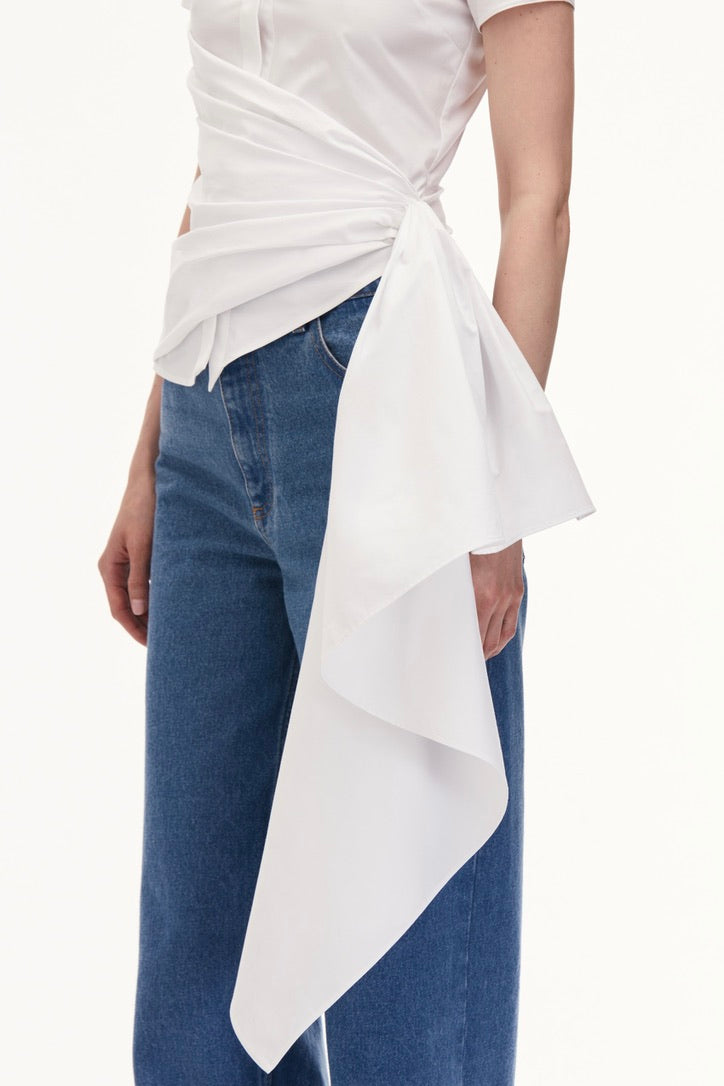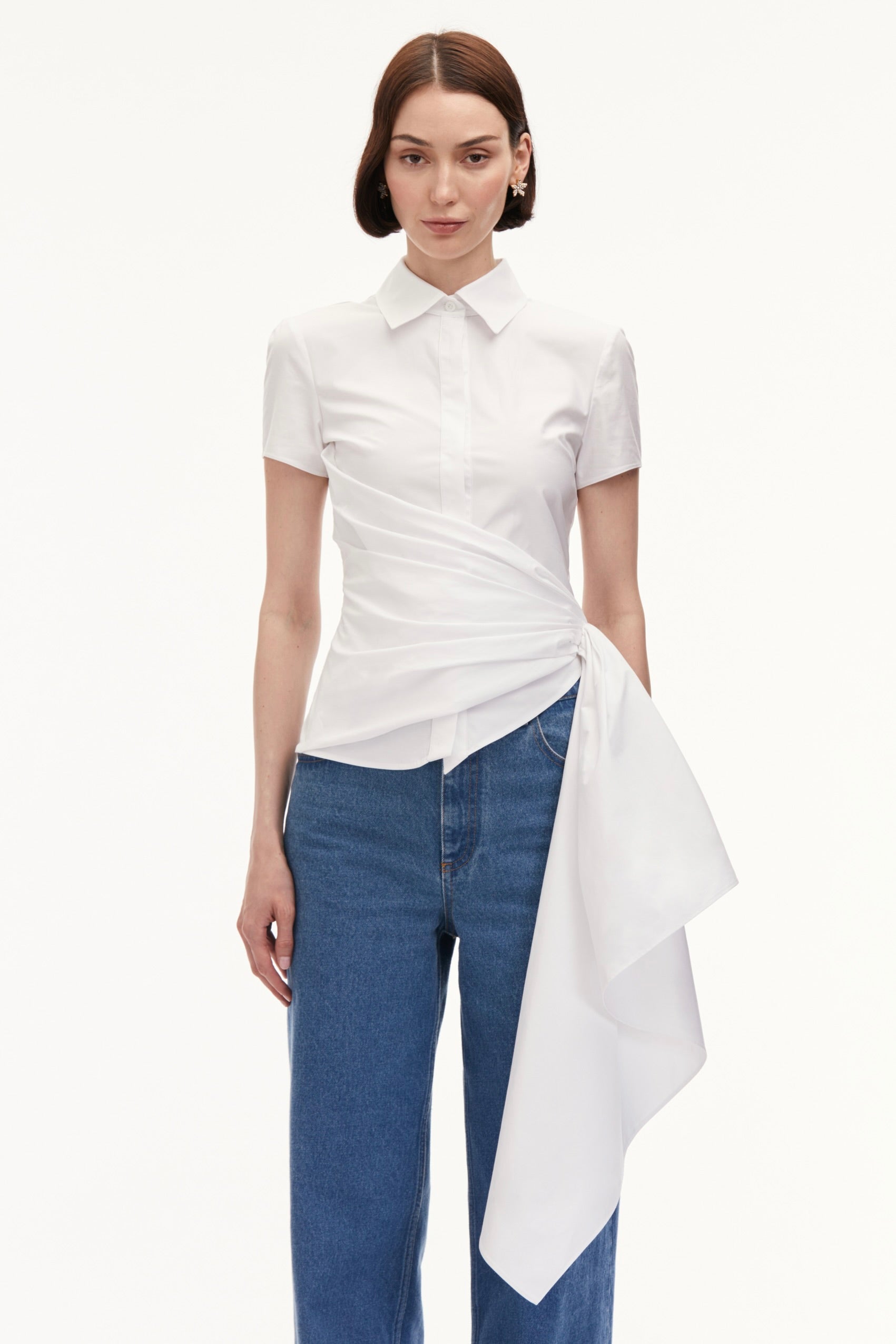 Cap Sleeve Button Front Draped Blouse in White by Oscar de la Renta.
