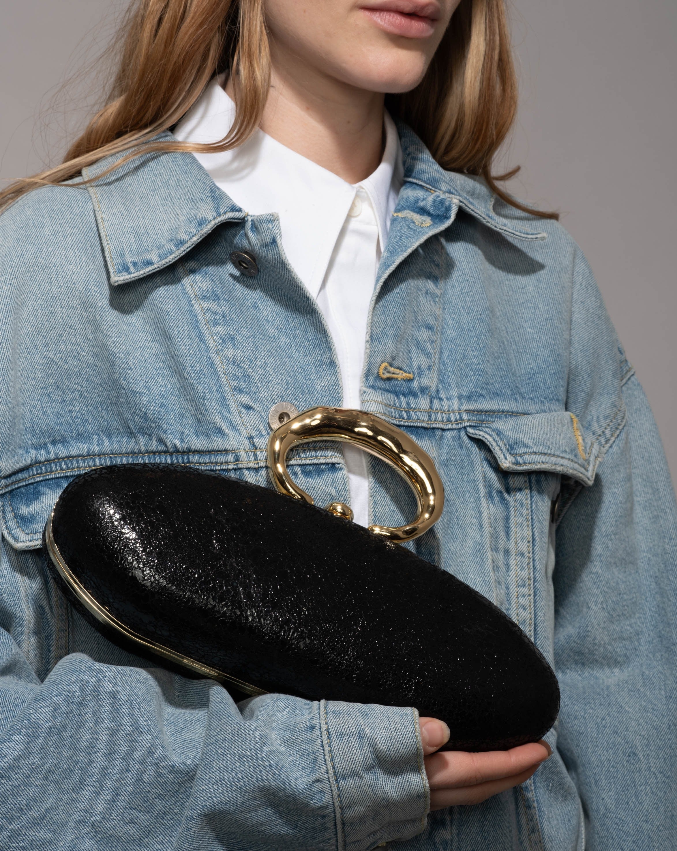 Molten Gold Bullet Minaudière in Black by Alexis Bittar.