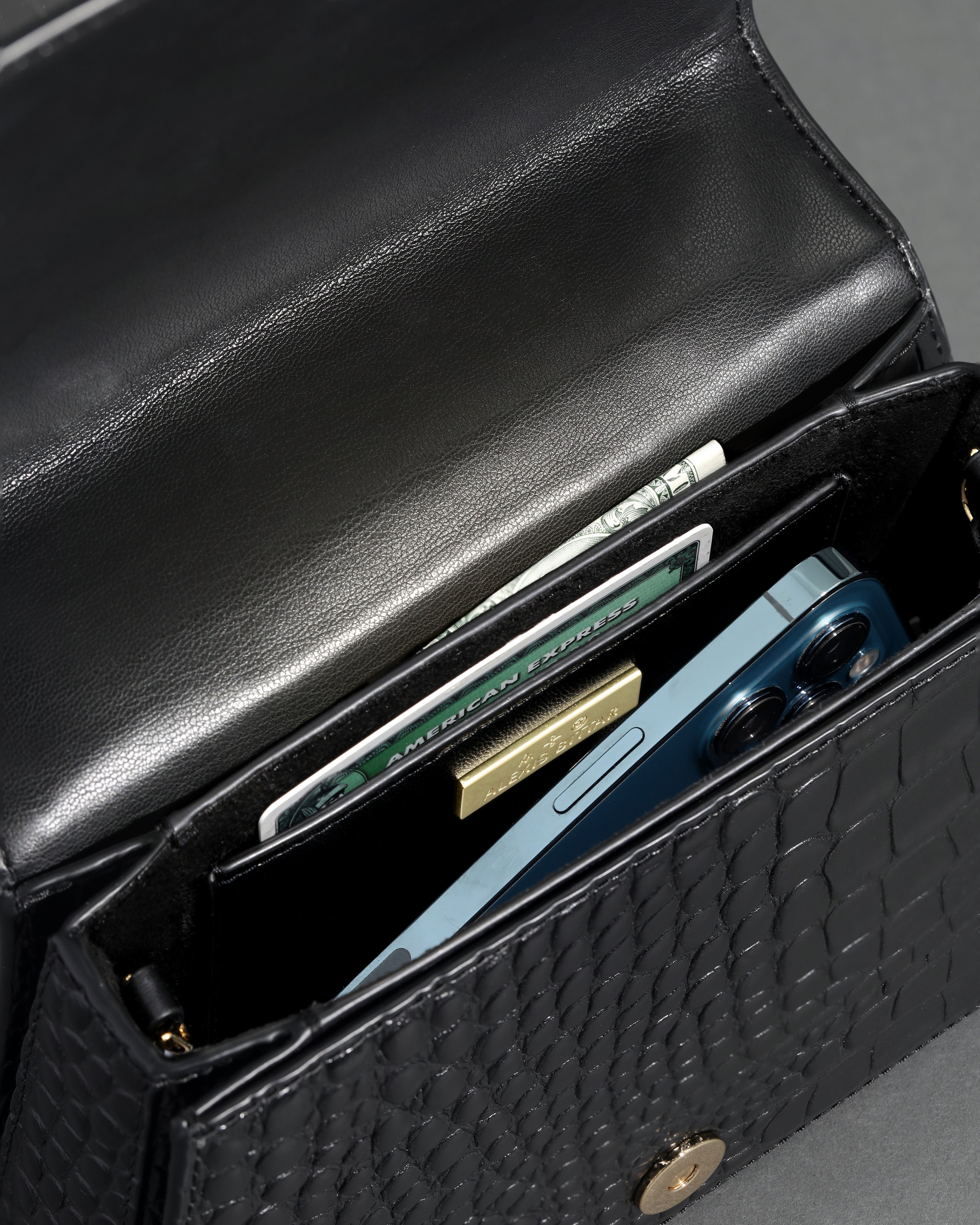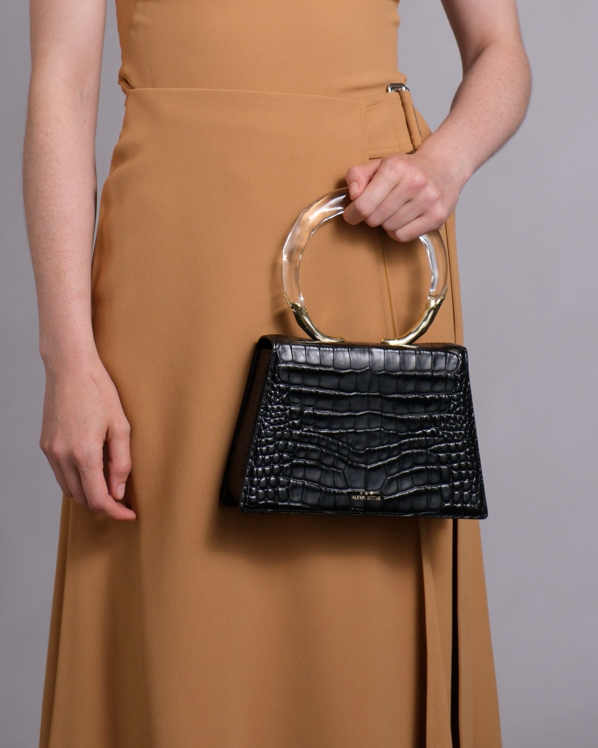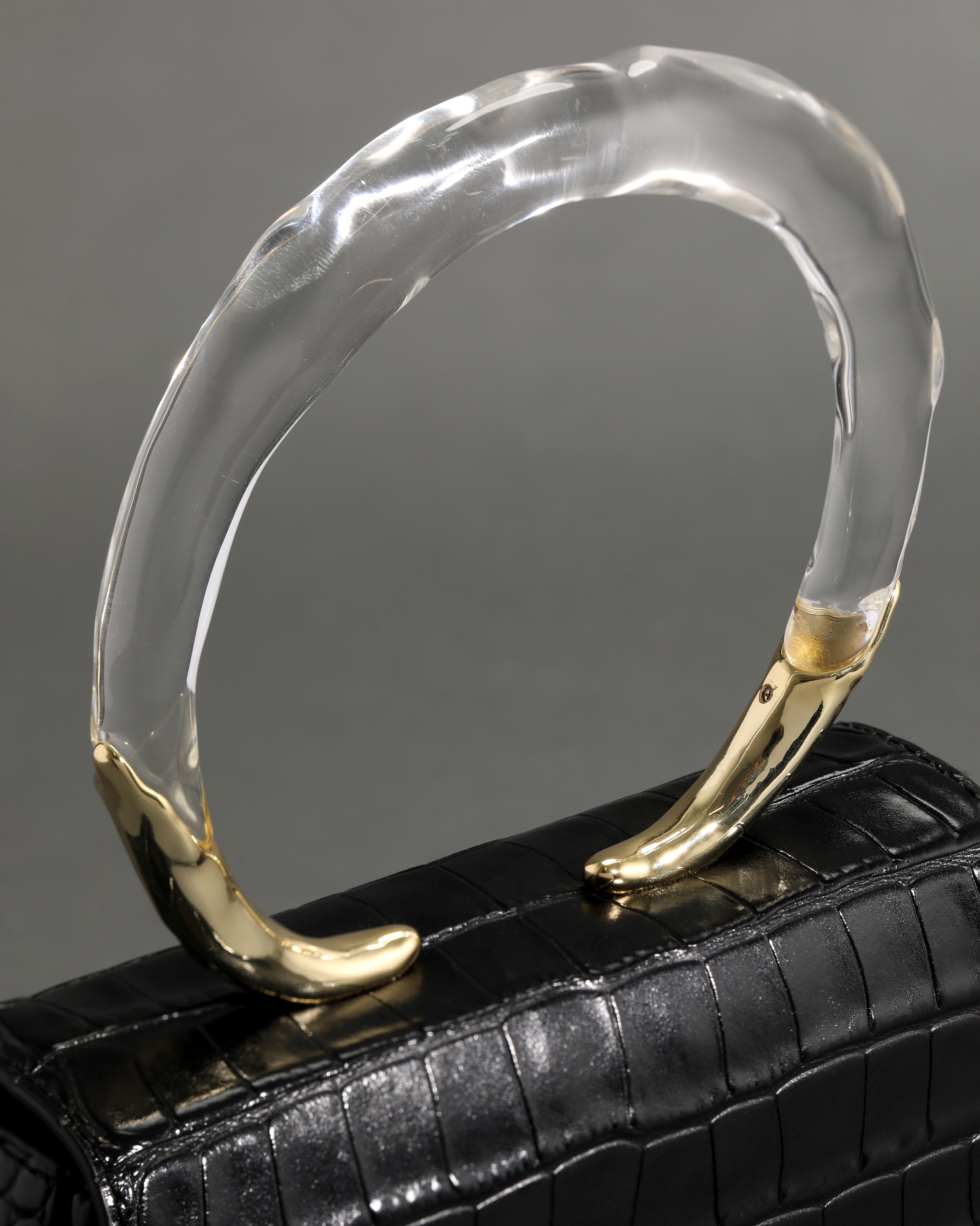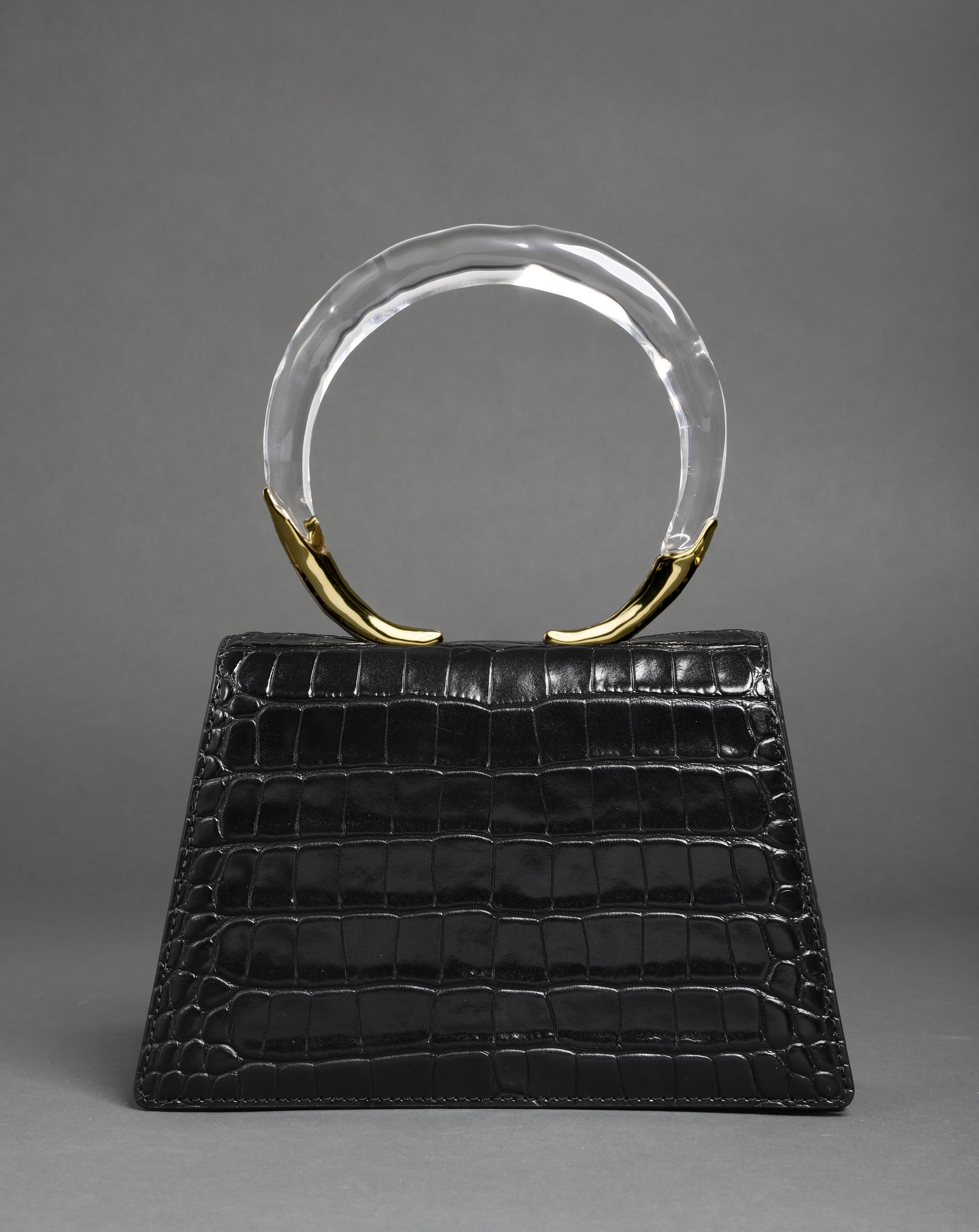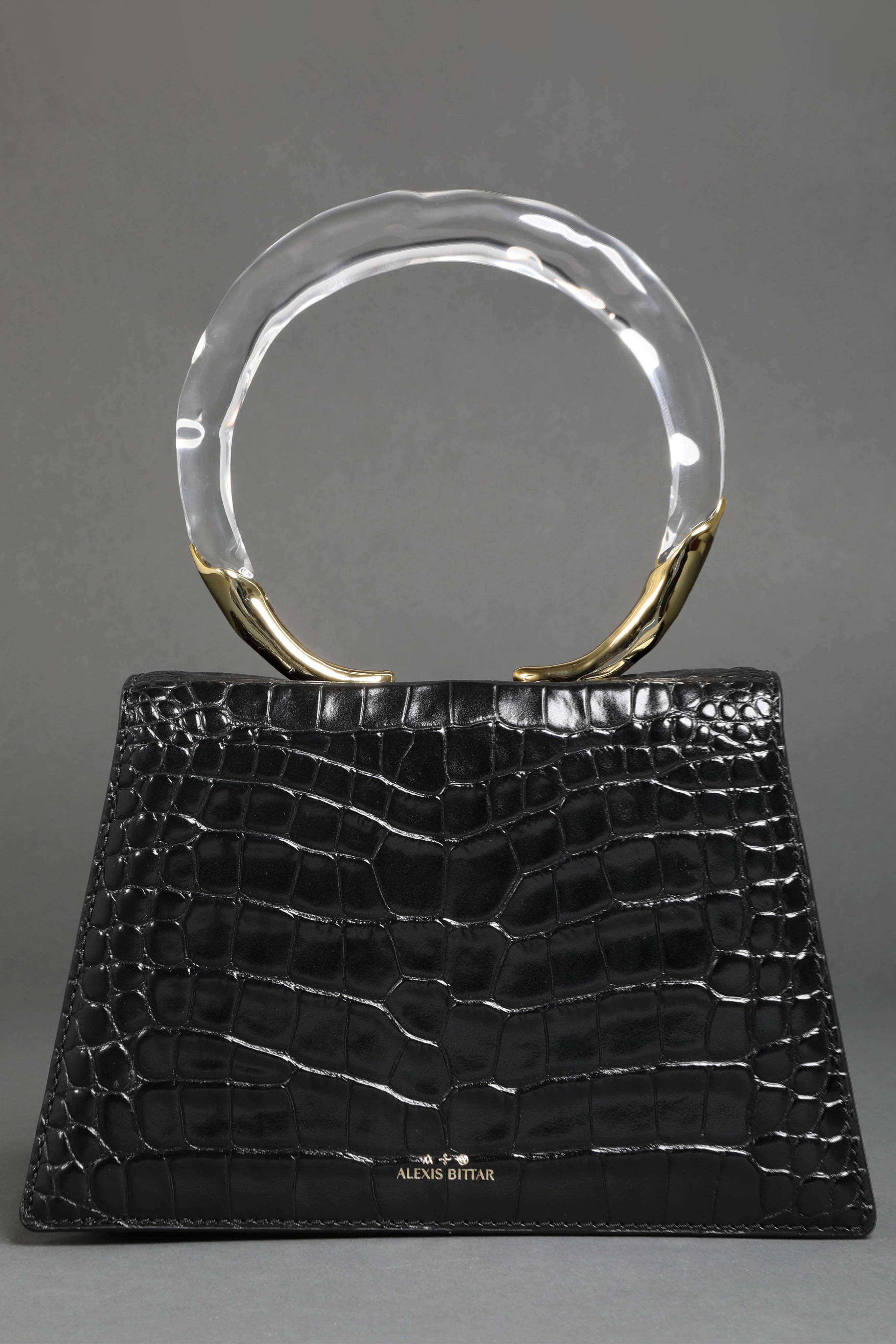Liquid Lucite Quad Handbag in Black Croc by alexis Bittar.