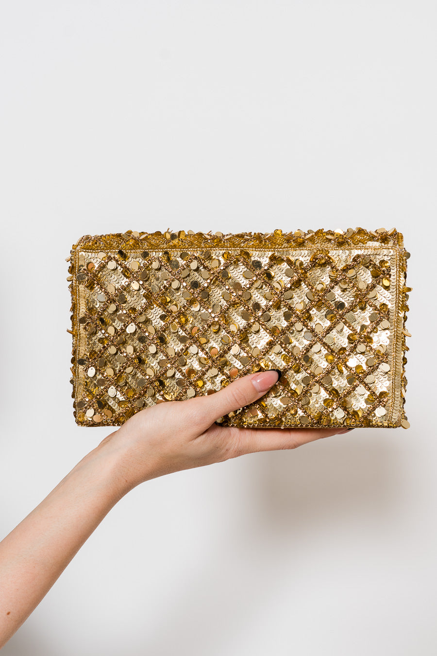 Marsa Clutch in Gold by Deepa Gurnani.