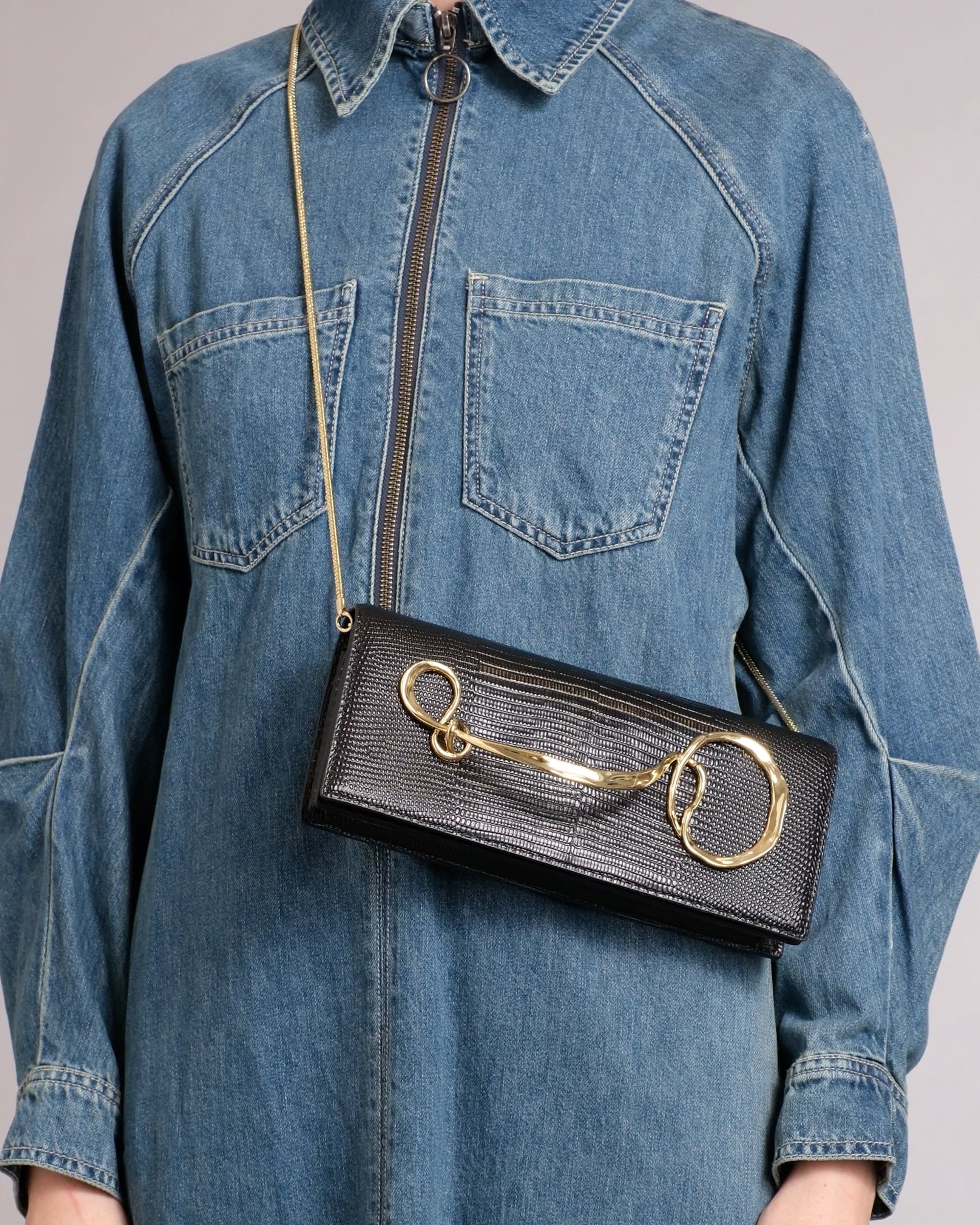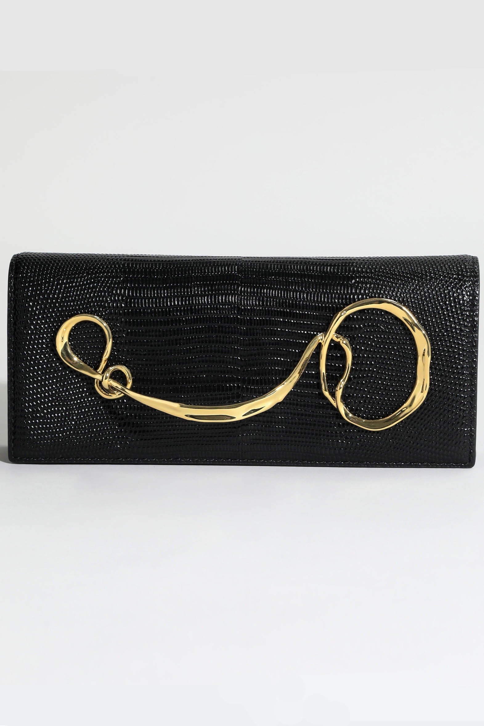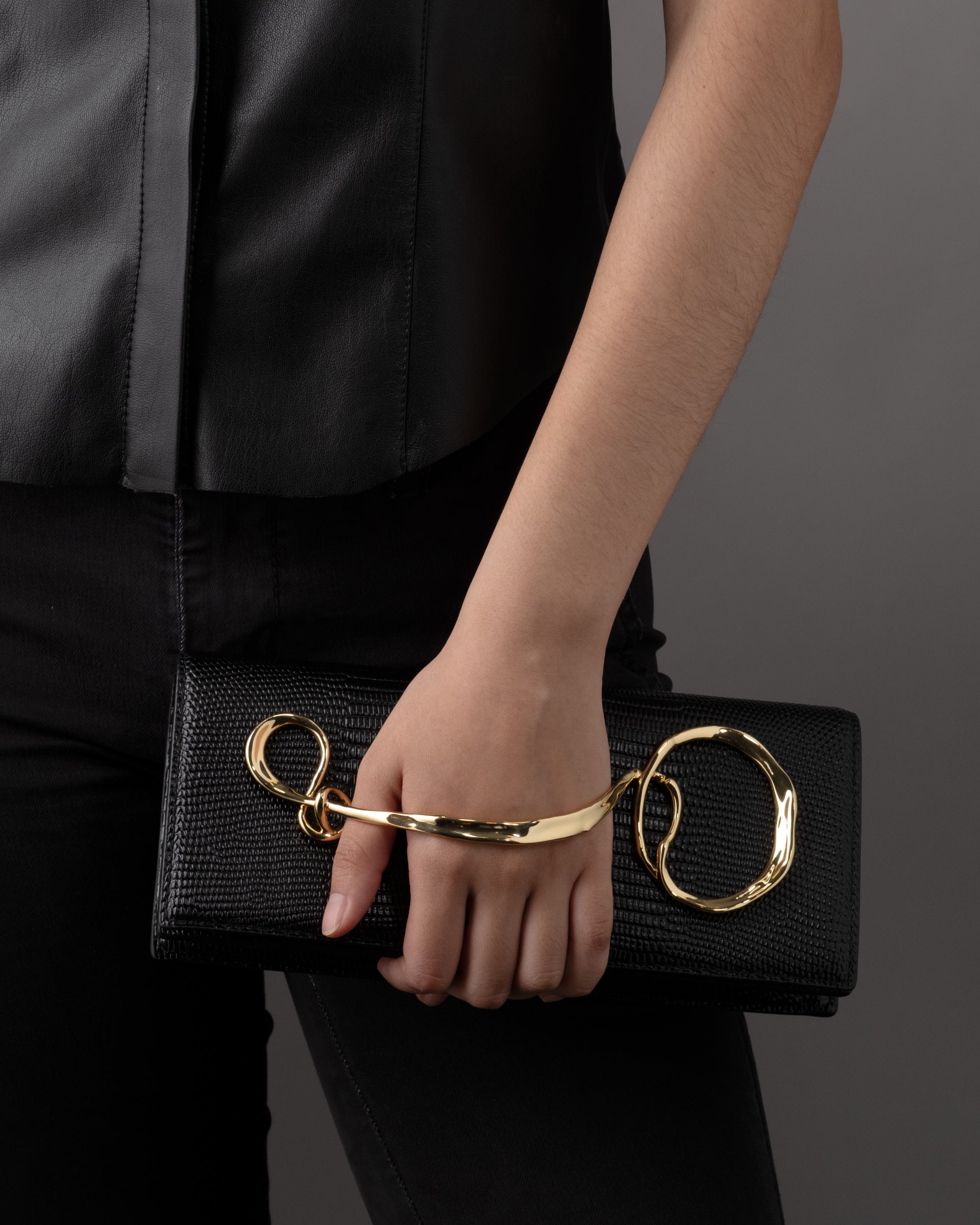 Twisted Gold Side Handle Clutch Purse in Black by Alexis Bittar.