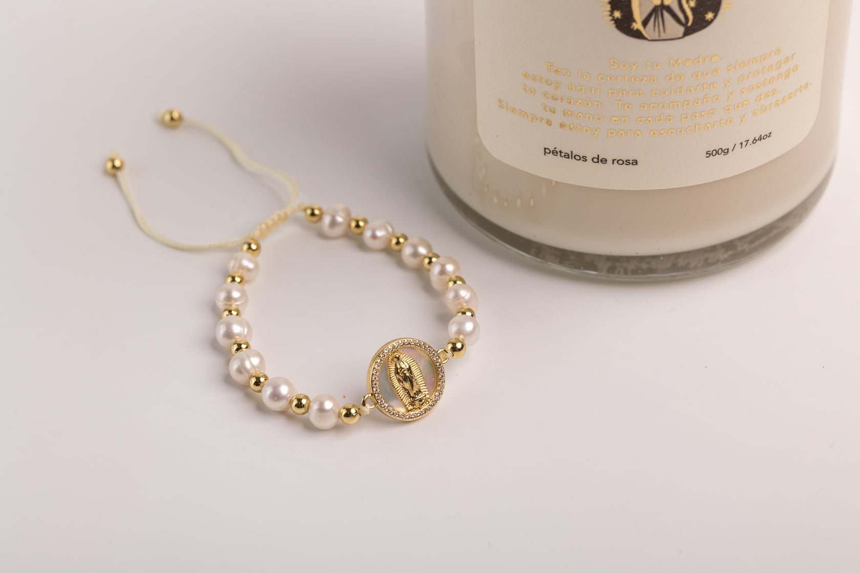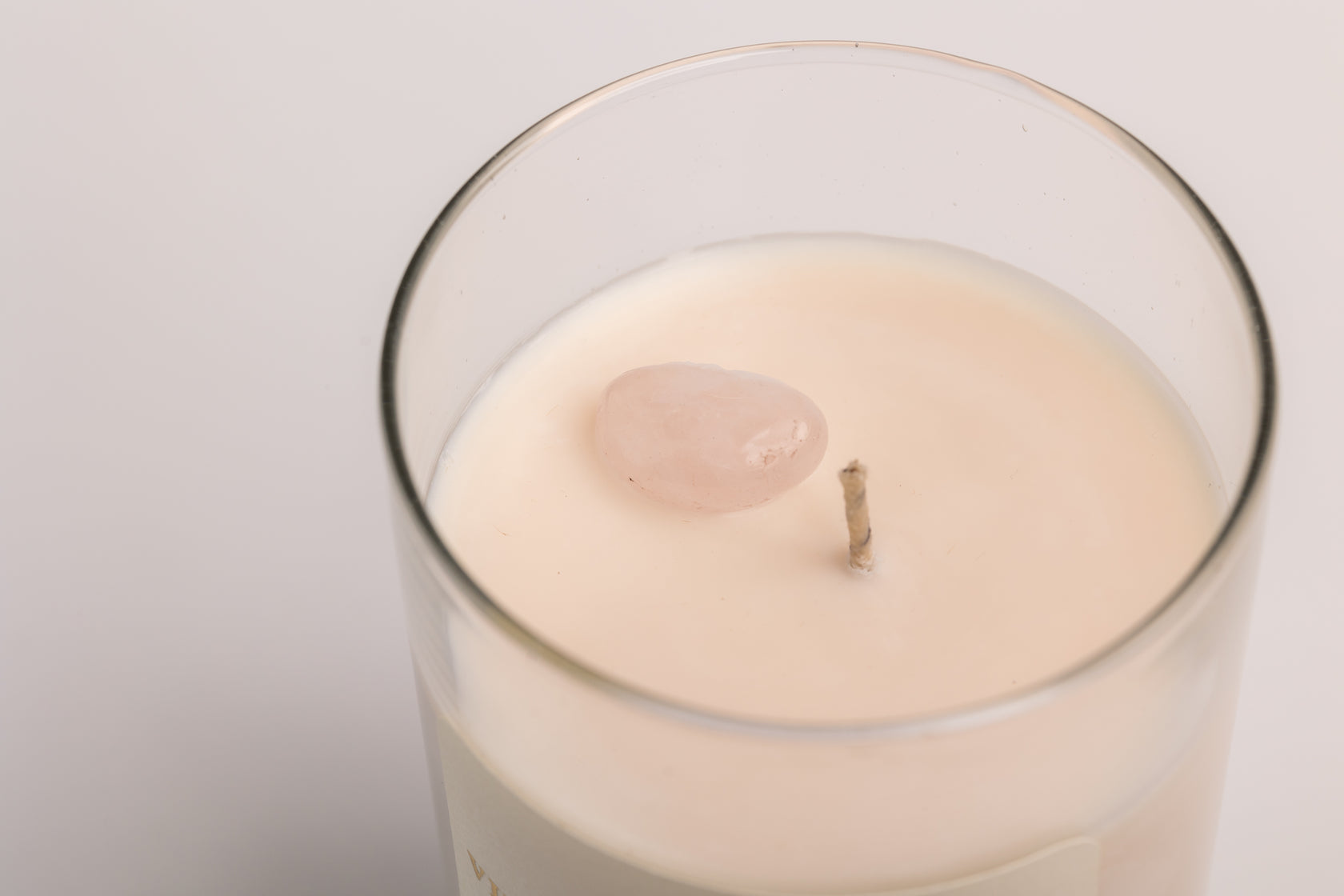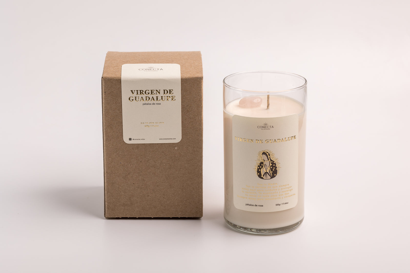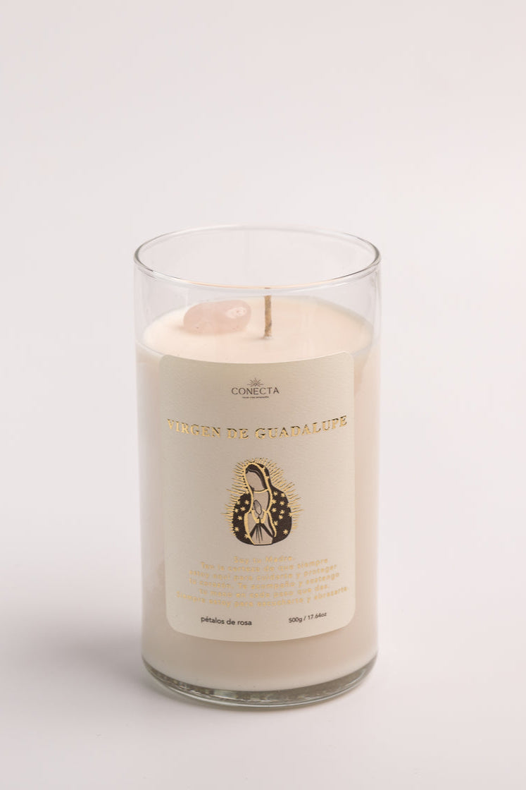 Vela de Cera de Soya Vertida a Mano 500g / 17.64 oz, Piedra Cuarzo de Rosa. Conecta Velas.