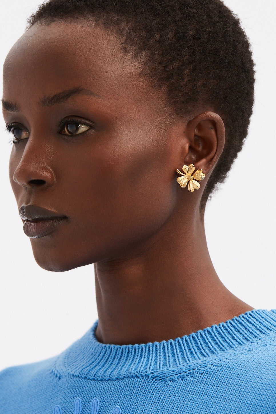 Clover Stud Earring in Gold by Oscar de la Renta.