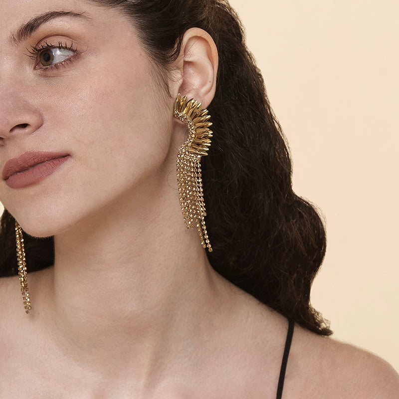 100% COTTON WOVEN WITH GLASS BEADS, GLASS CRYSTALS, BRASS COMPONENT AND MILD STEEL POST