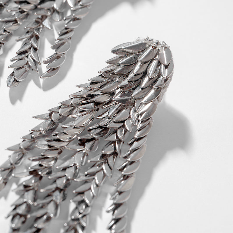 Morrigan Earrings in Silver by Deepa Gurnani.