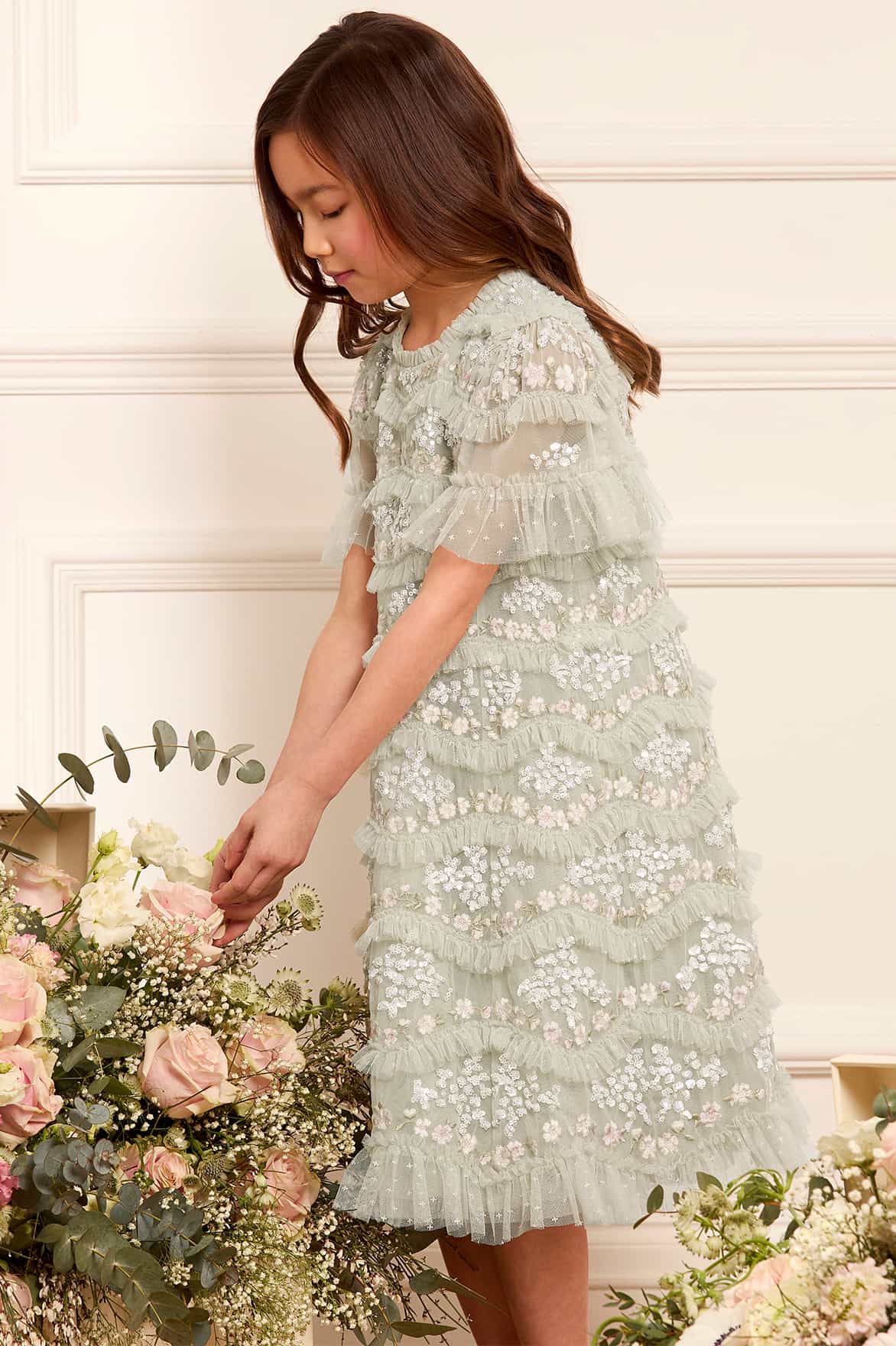Daisy Wave Kids Dress in Mist by Needle & Thread.