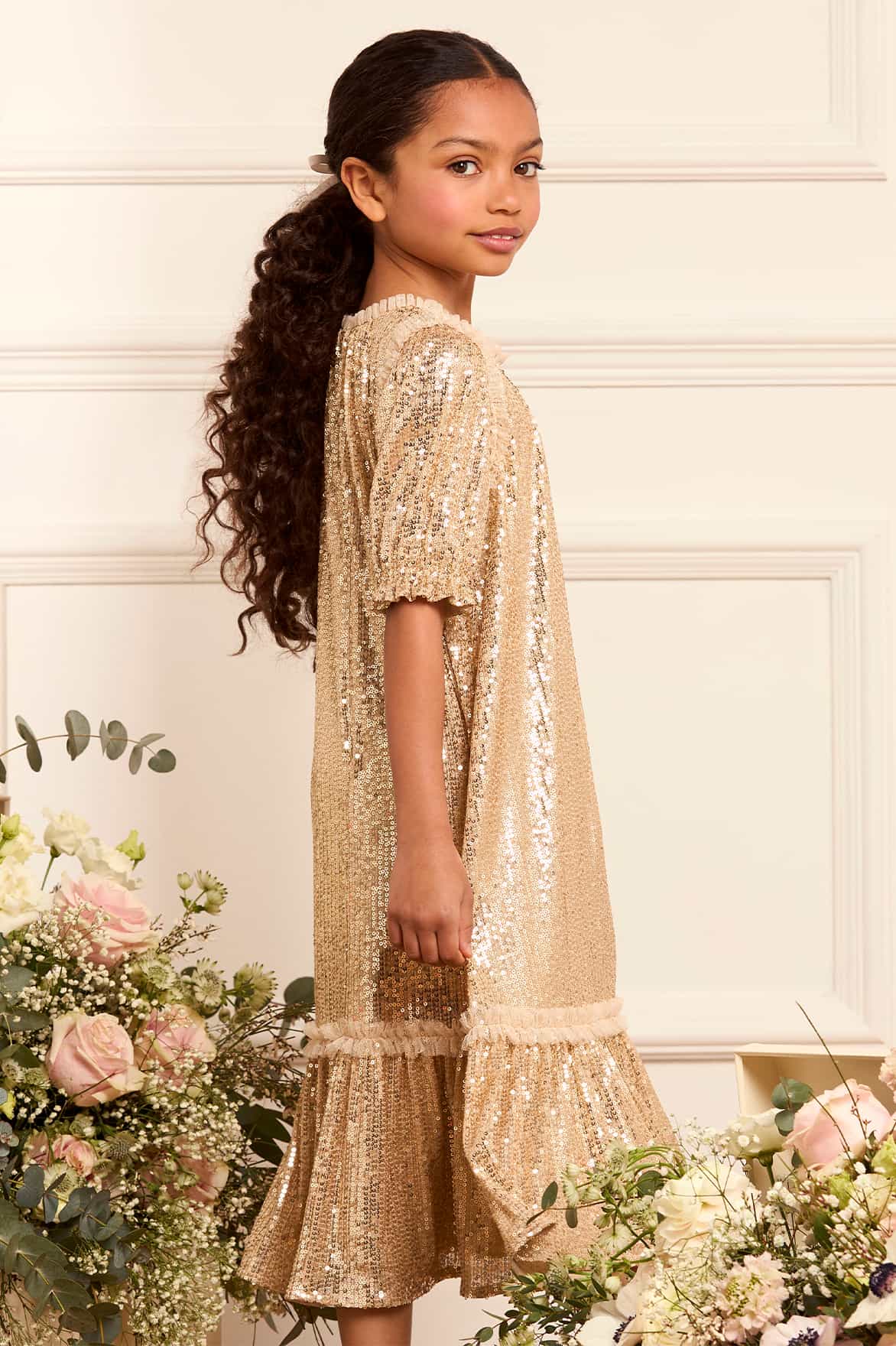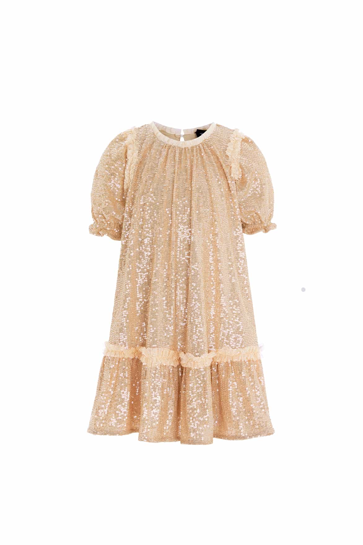 Starlight Short Sleeve Kids Dress in Parchment by Needle & Thread.