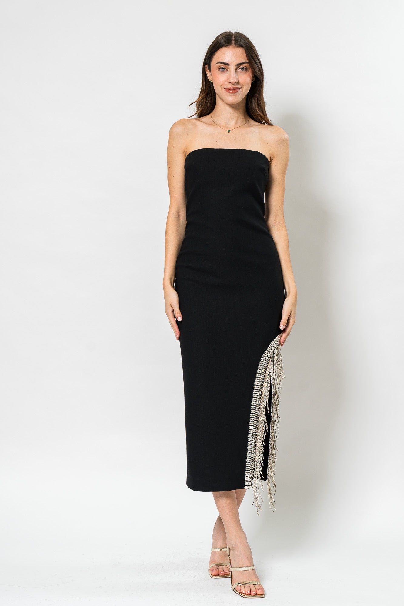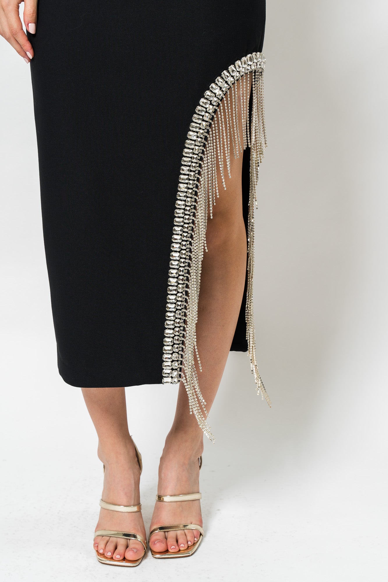 Rhinestone Fringe Sammy Dress in Black by Cinq à Sept.