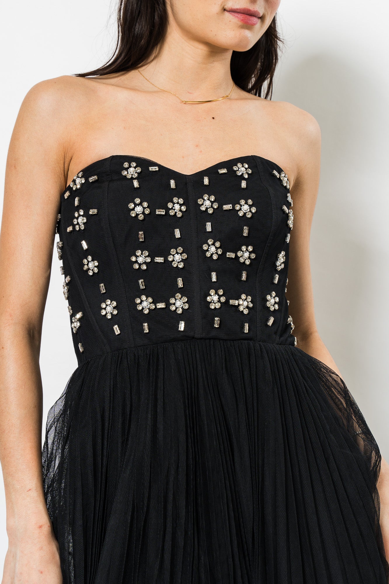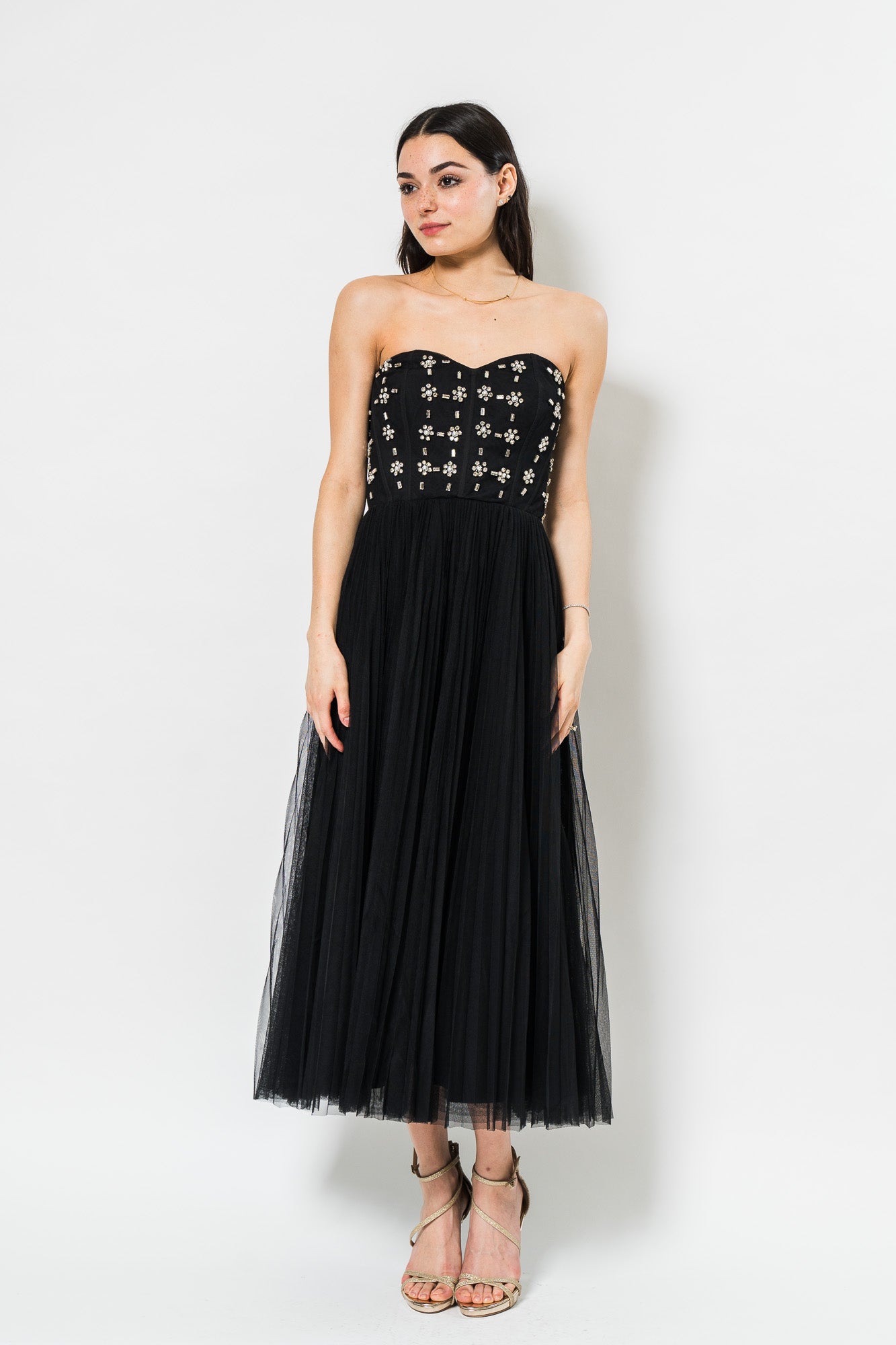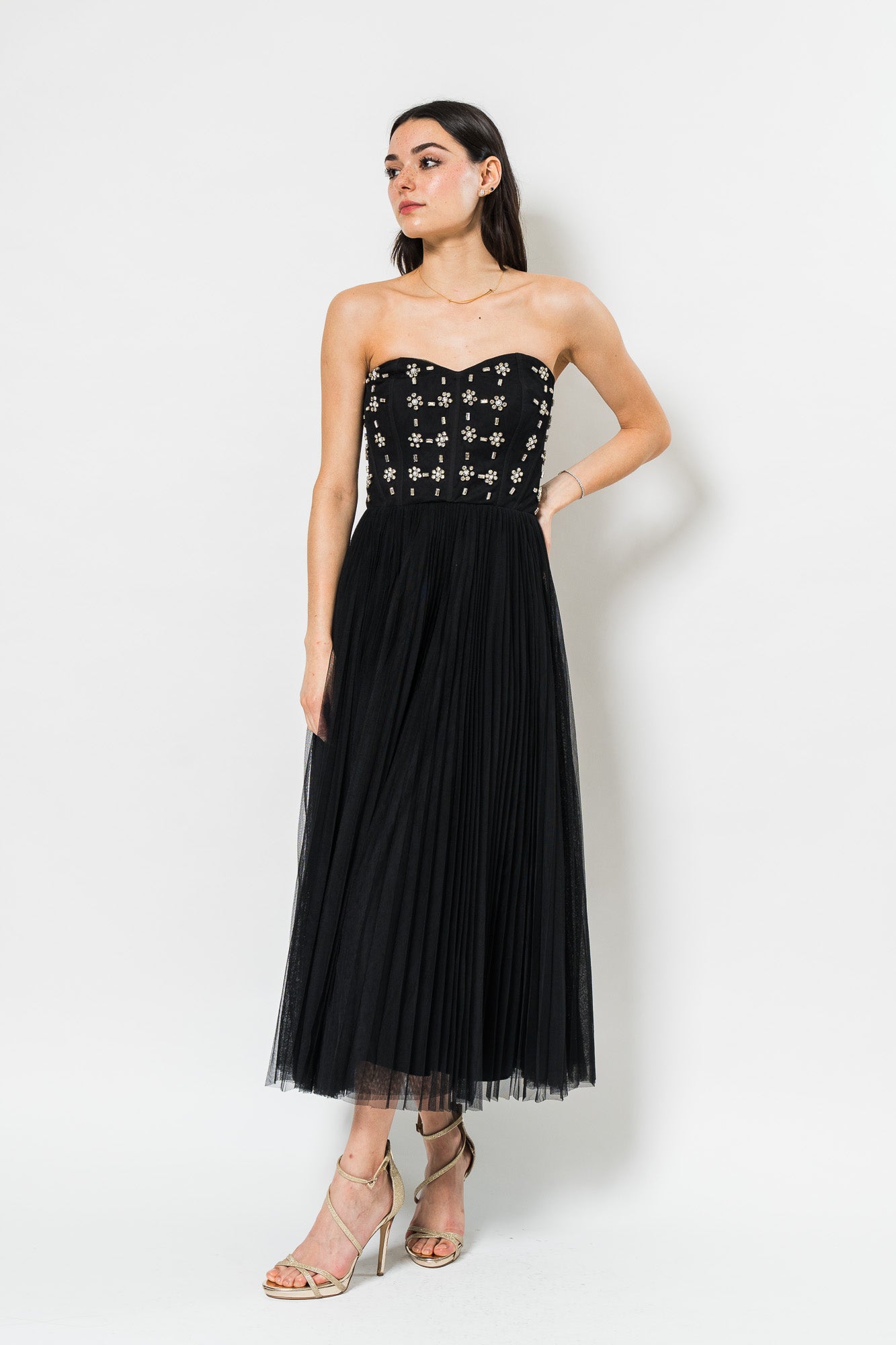 Alesia Strapless Midi Dress in Black by Theia.