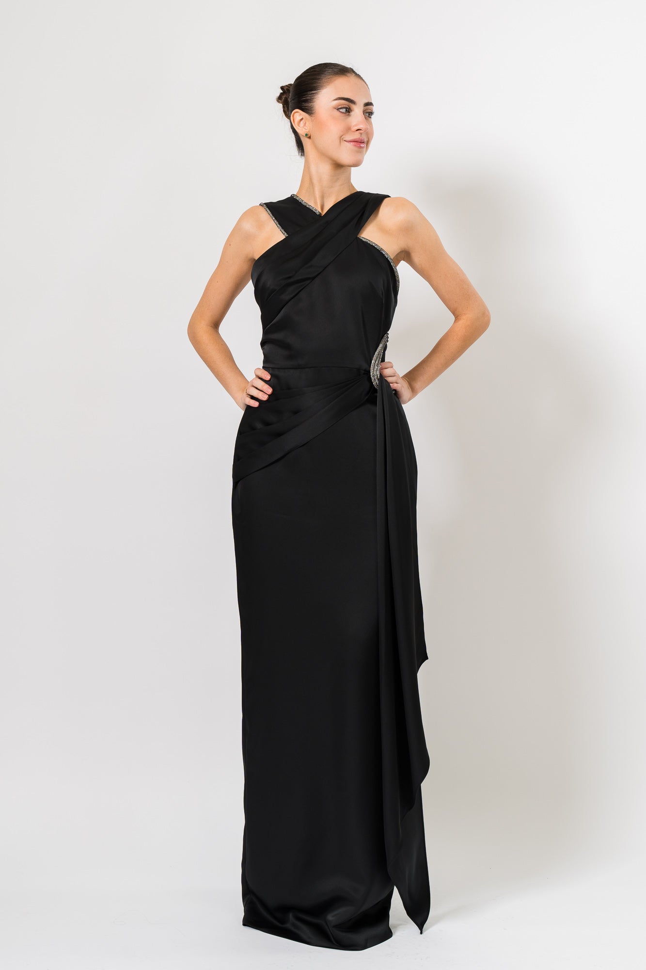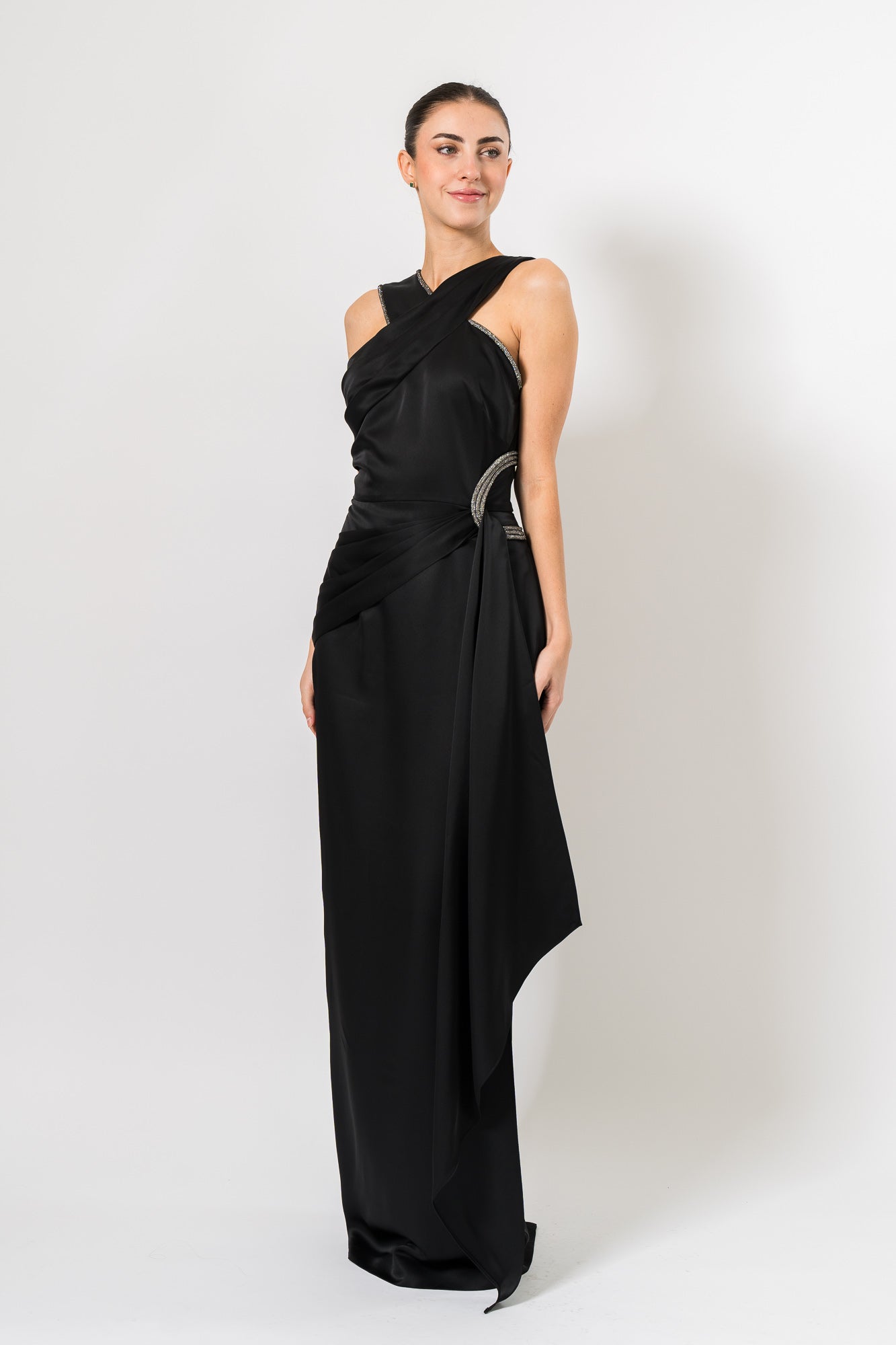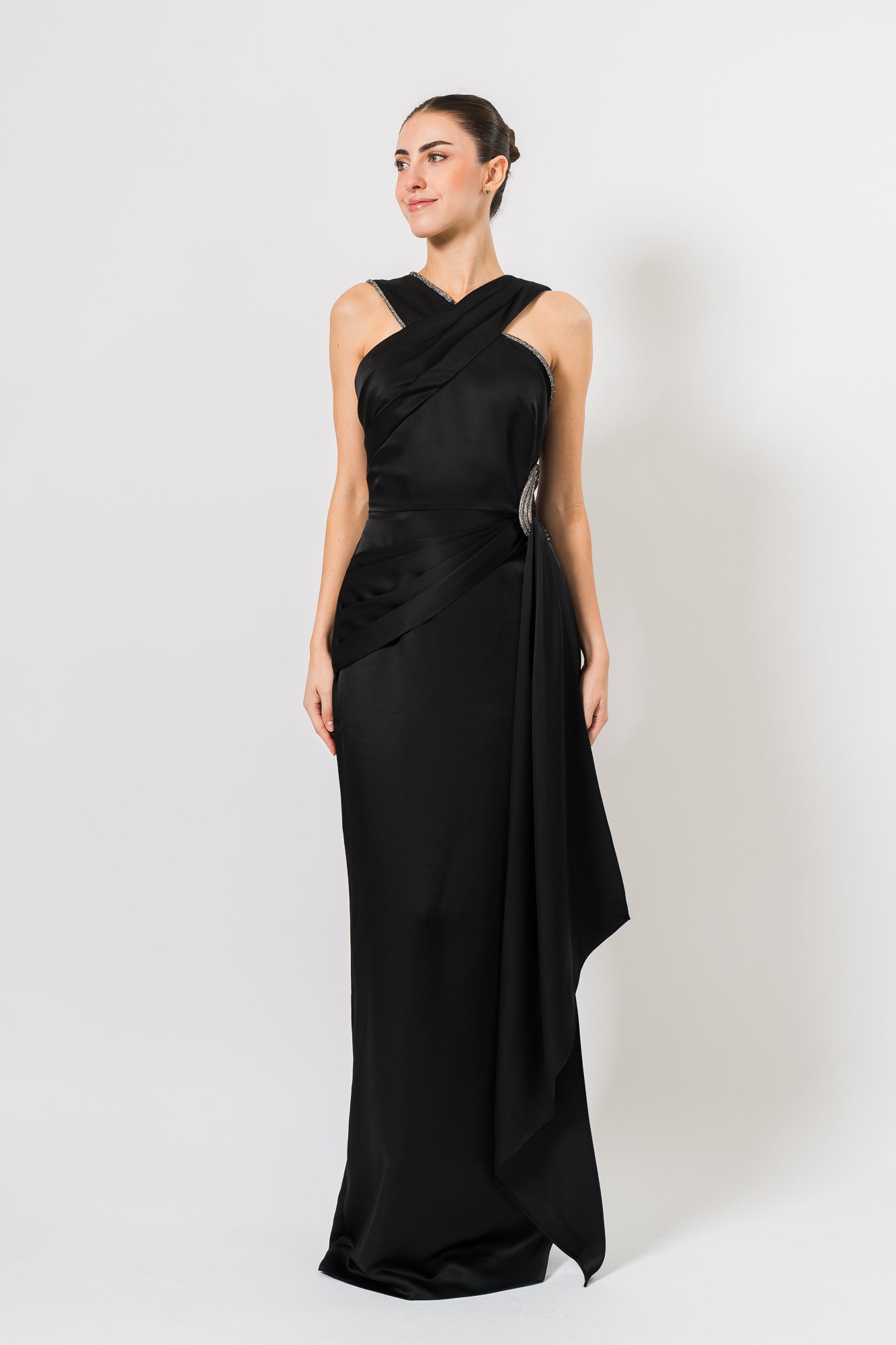 Cressida Halter Column Gown in Black by Theia.