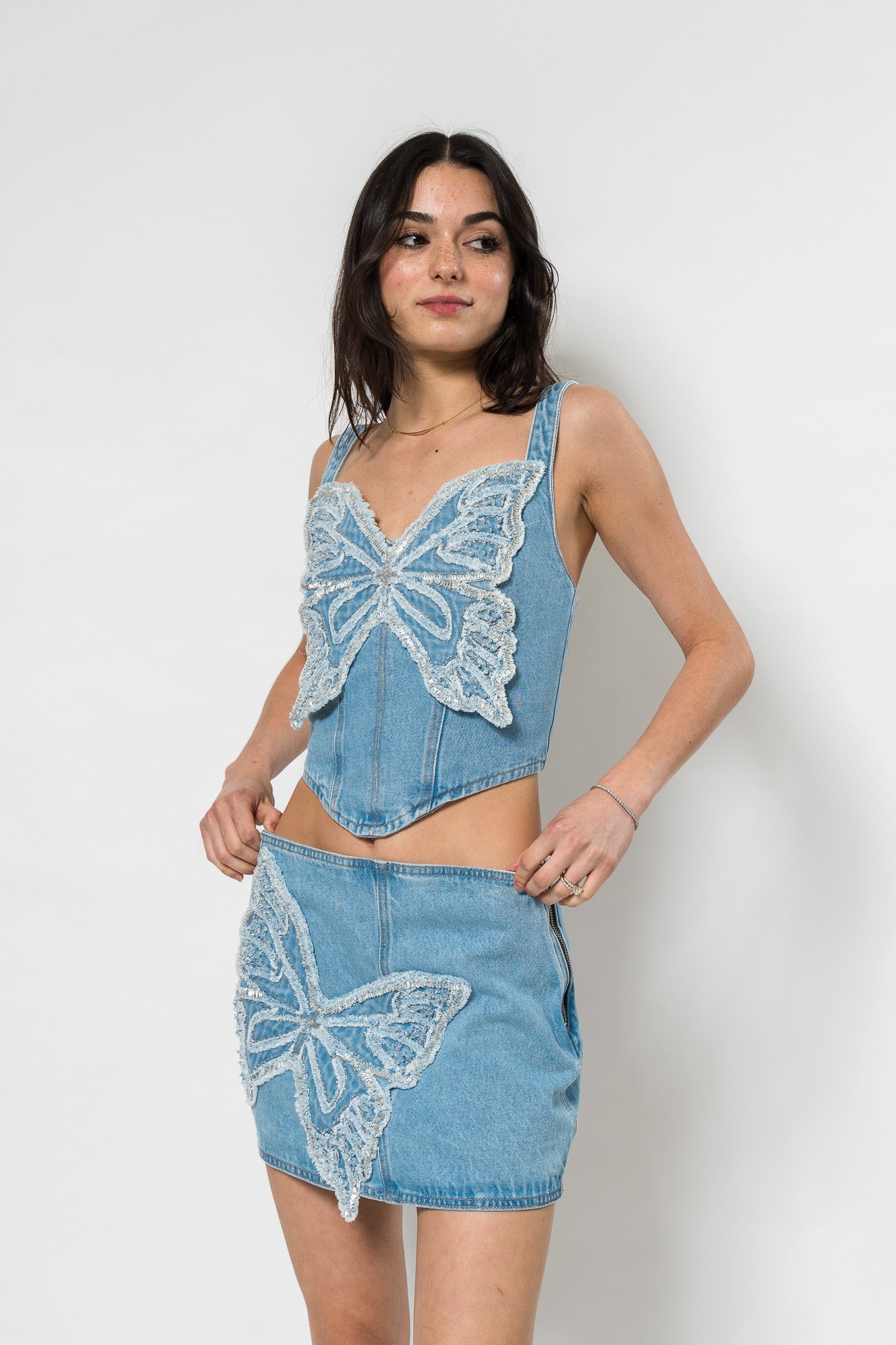 Camila Coelho Demin Top & Skirt in Blue by PatBo.