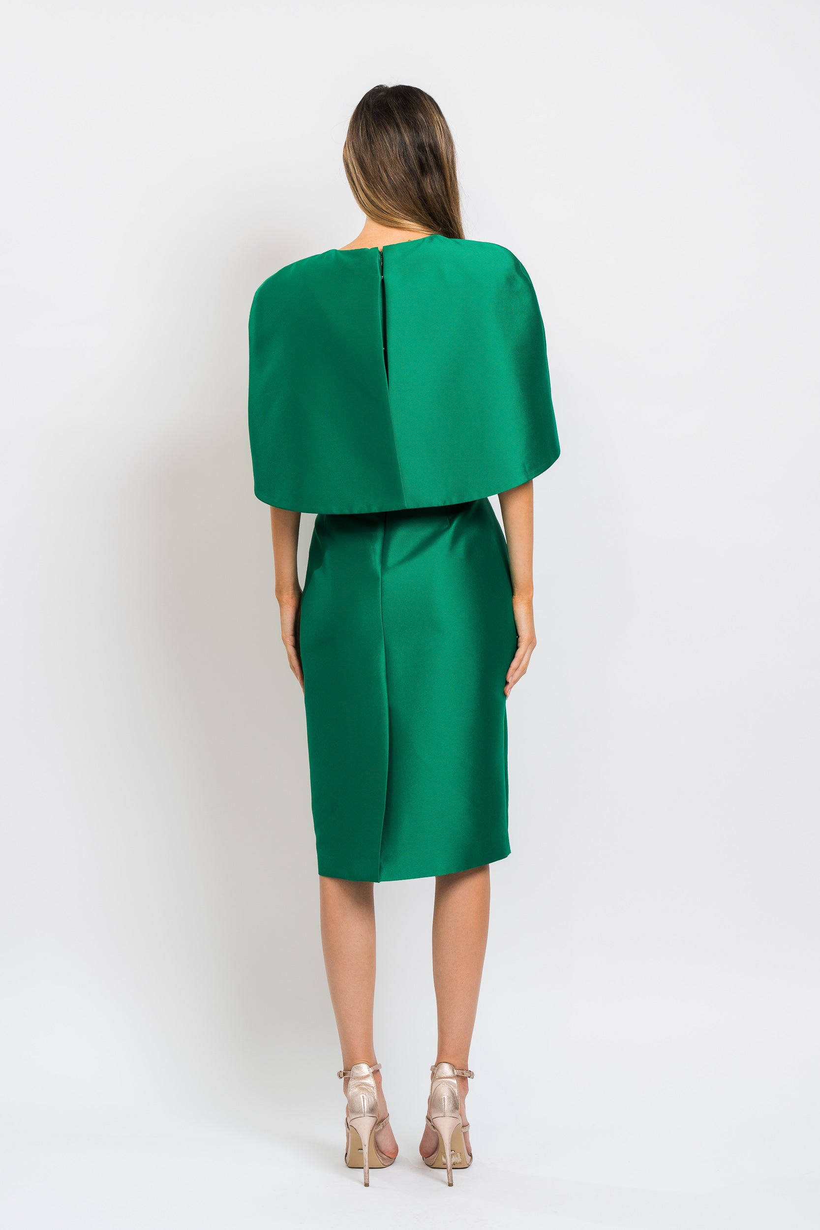 Cape Shoulder Coctail Sheath Dress in Emerald by Badgley Mischka.