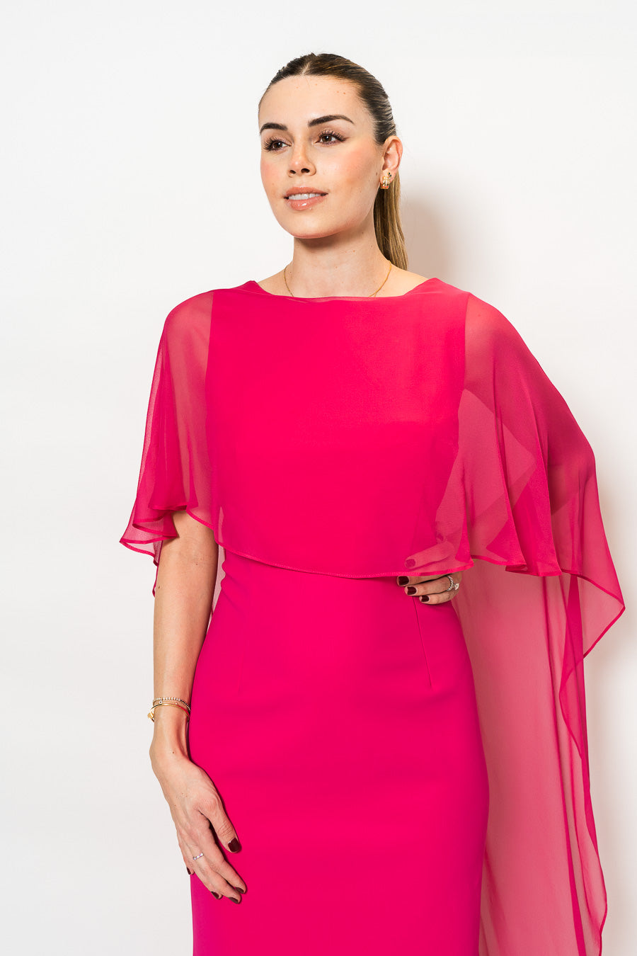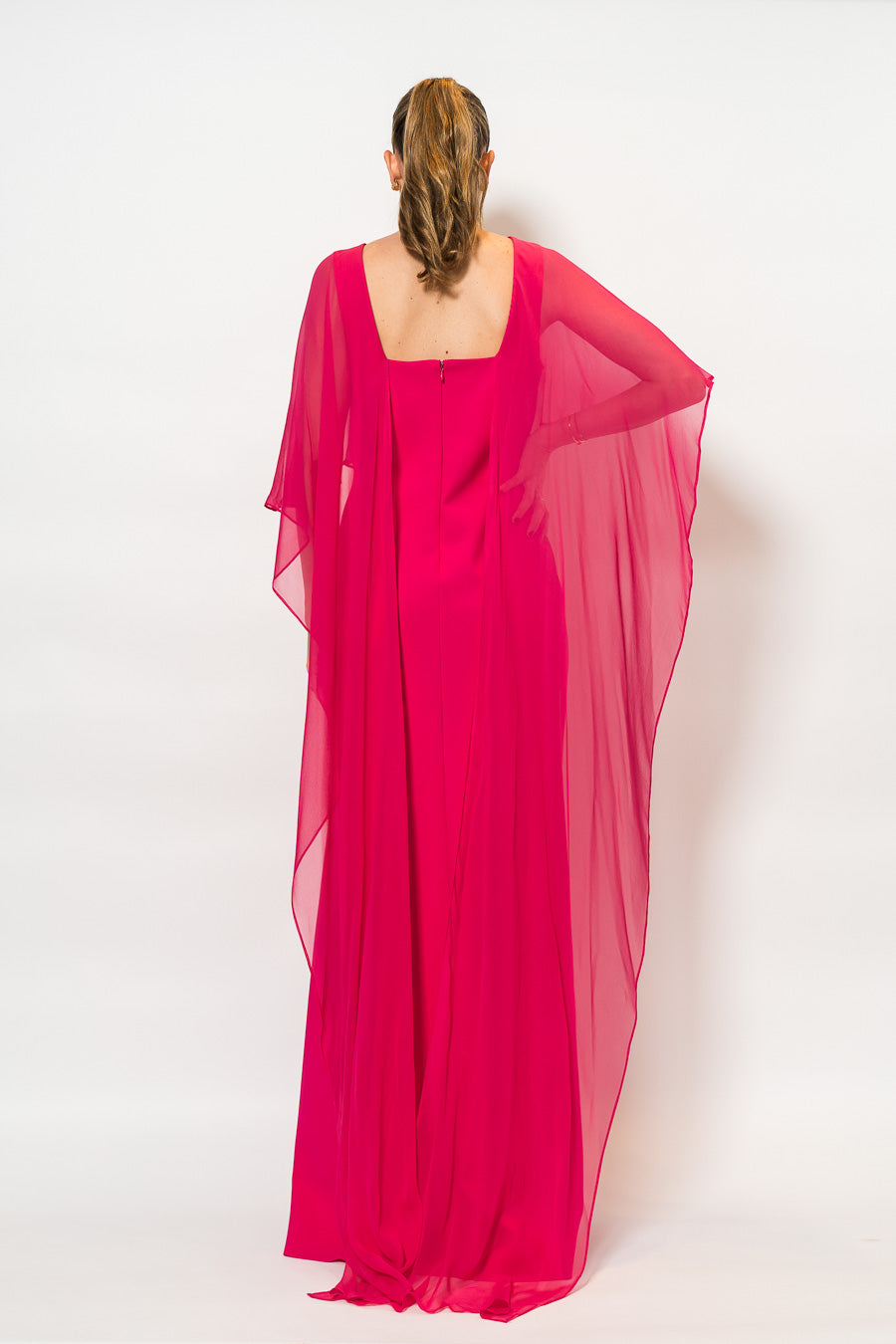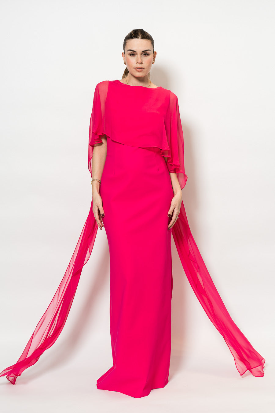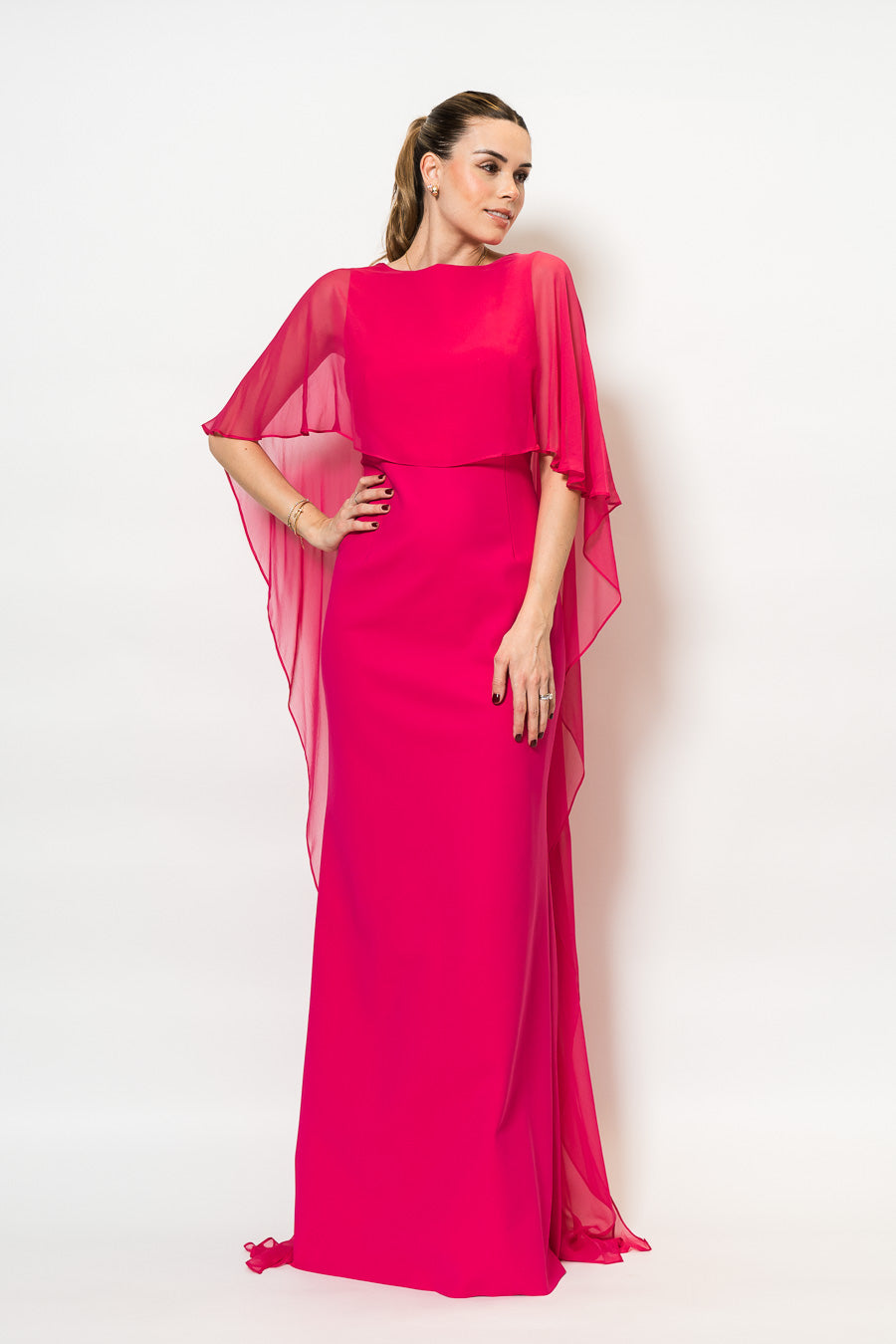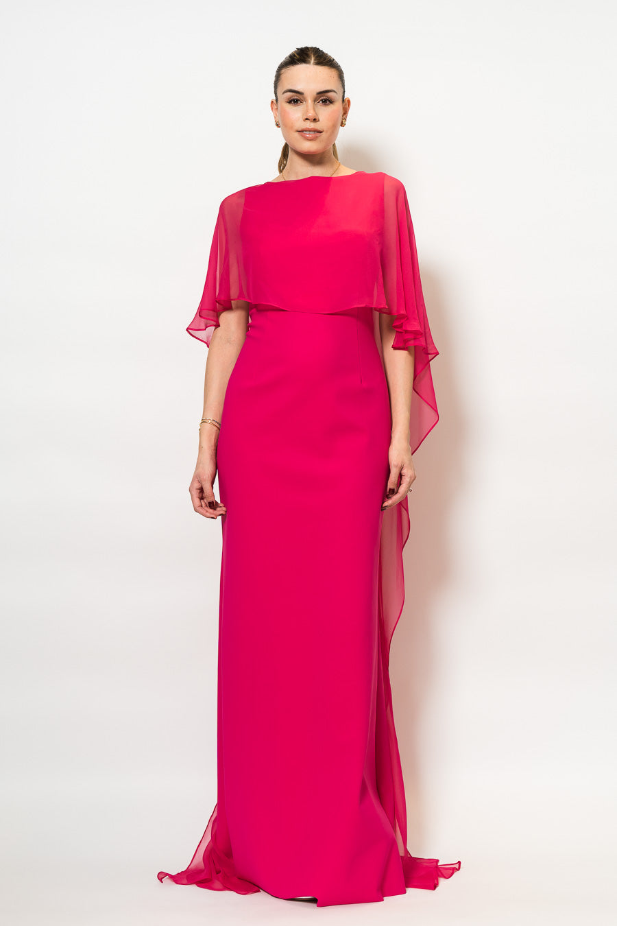 Scuba Gown With Chiffon Cape in Fuschia by Teri Jon.