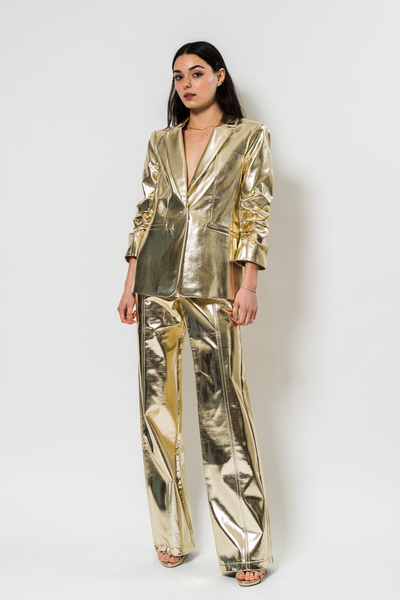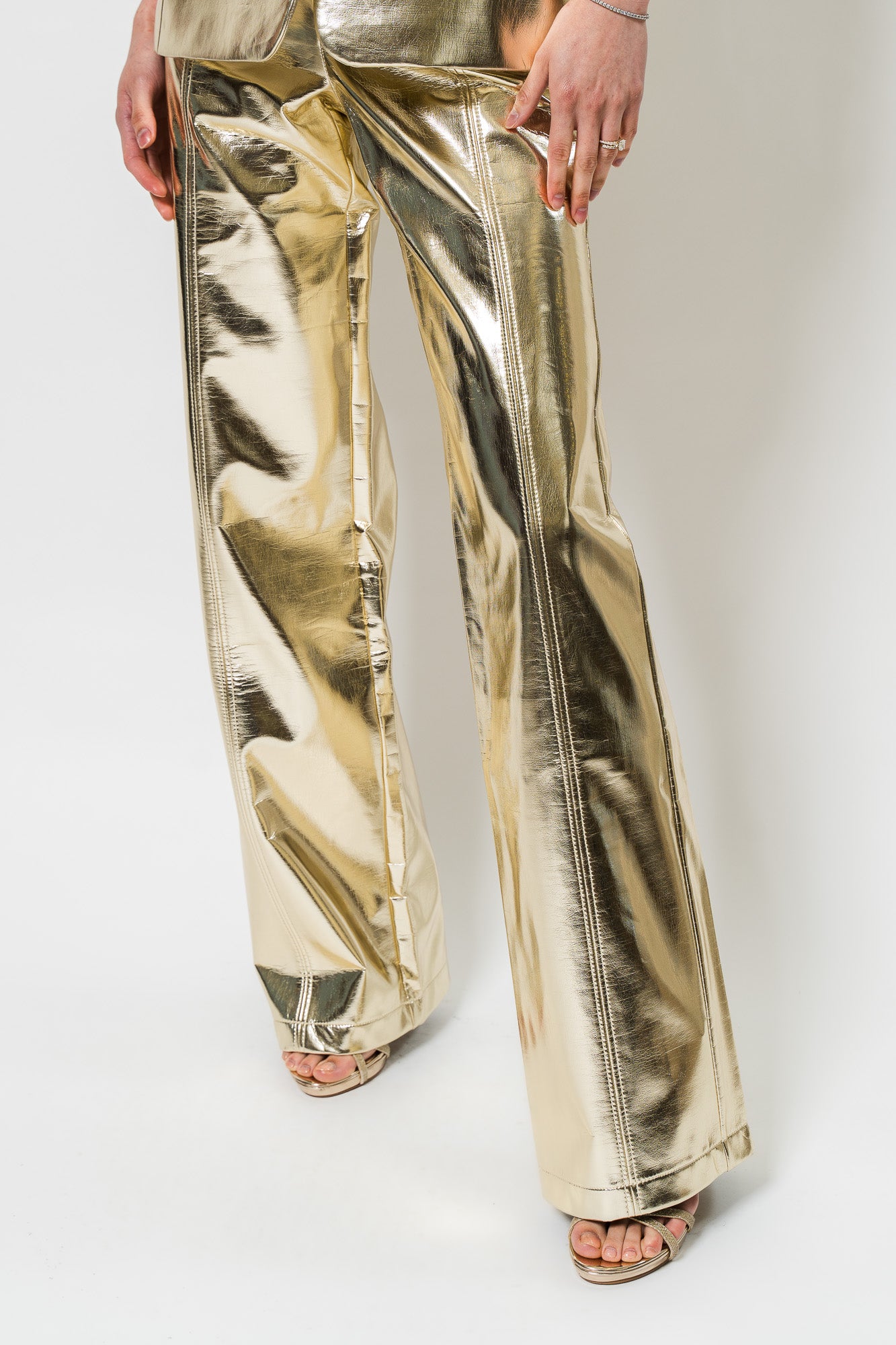 Metallic Vegan Leather Francine Pant in Gold by Cinq à Sept.
