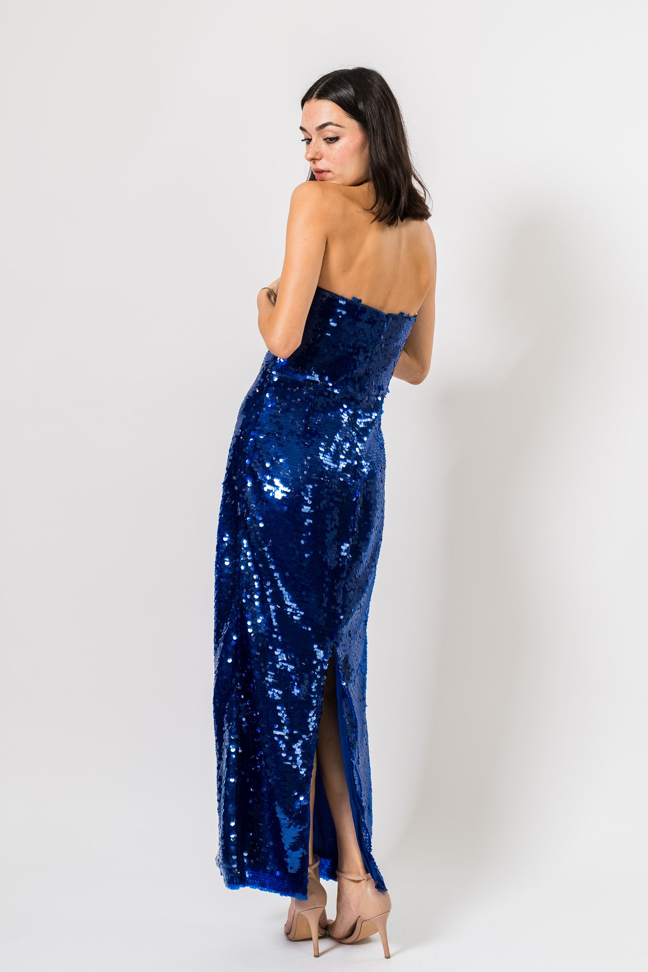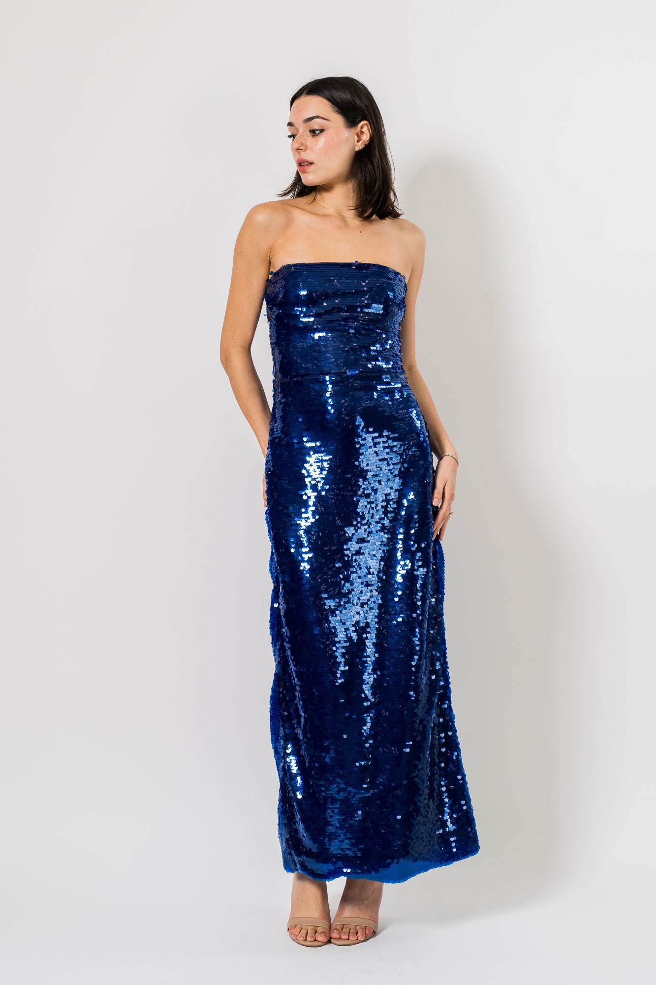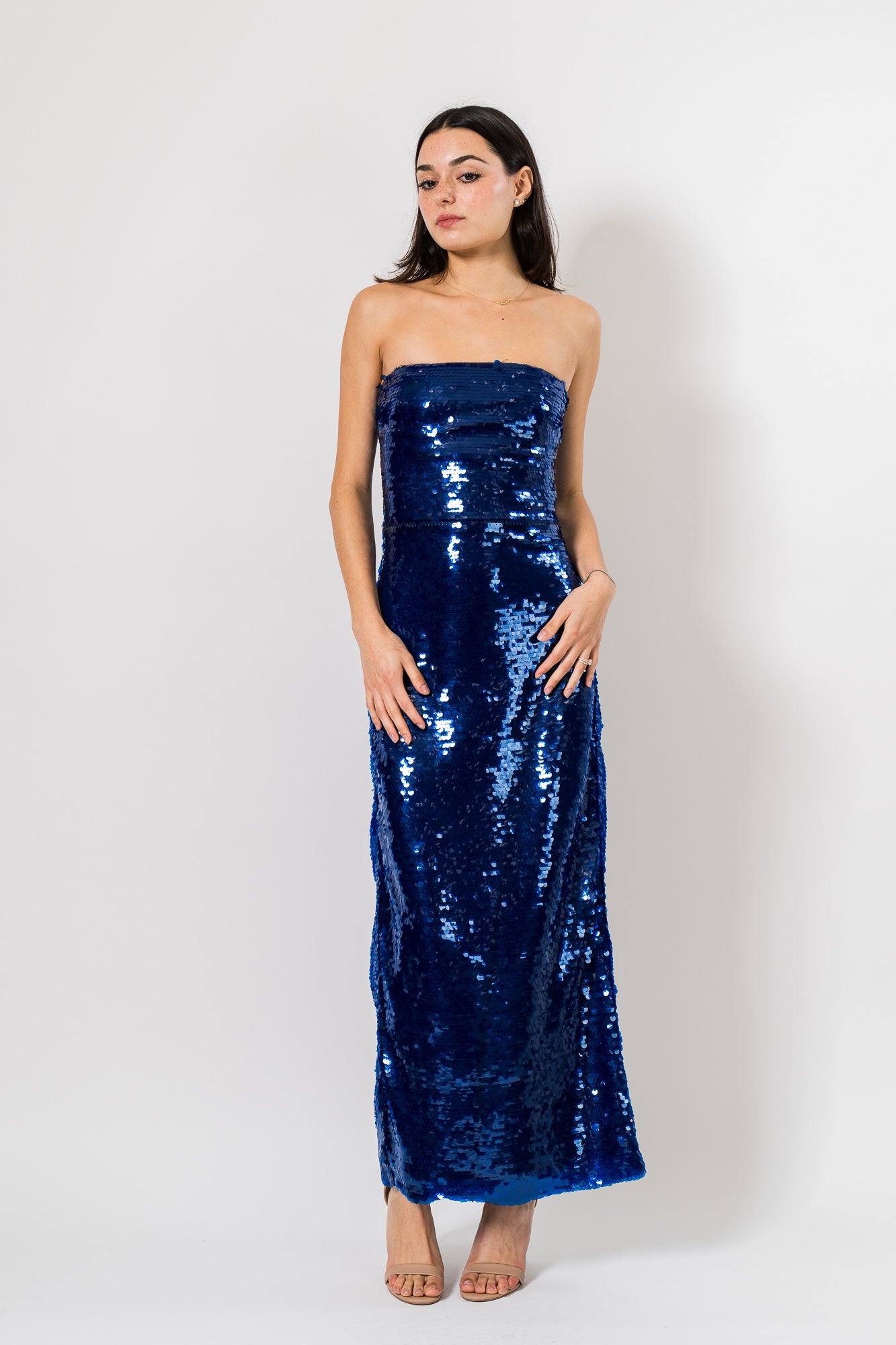Mira Sequins Long Dress in Marine by ML Monique Lhuillier .