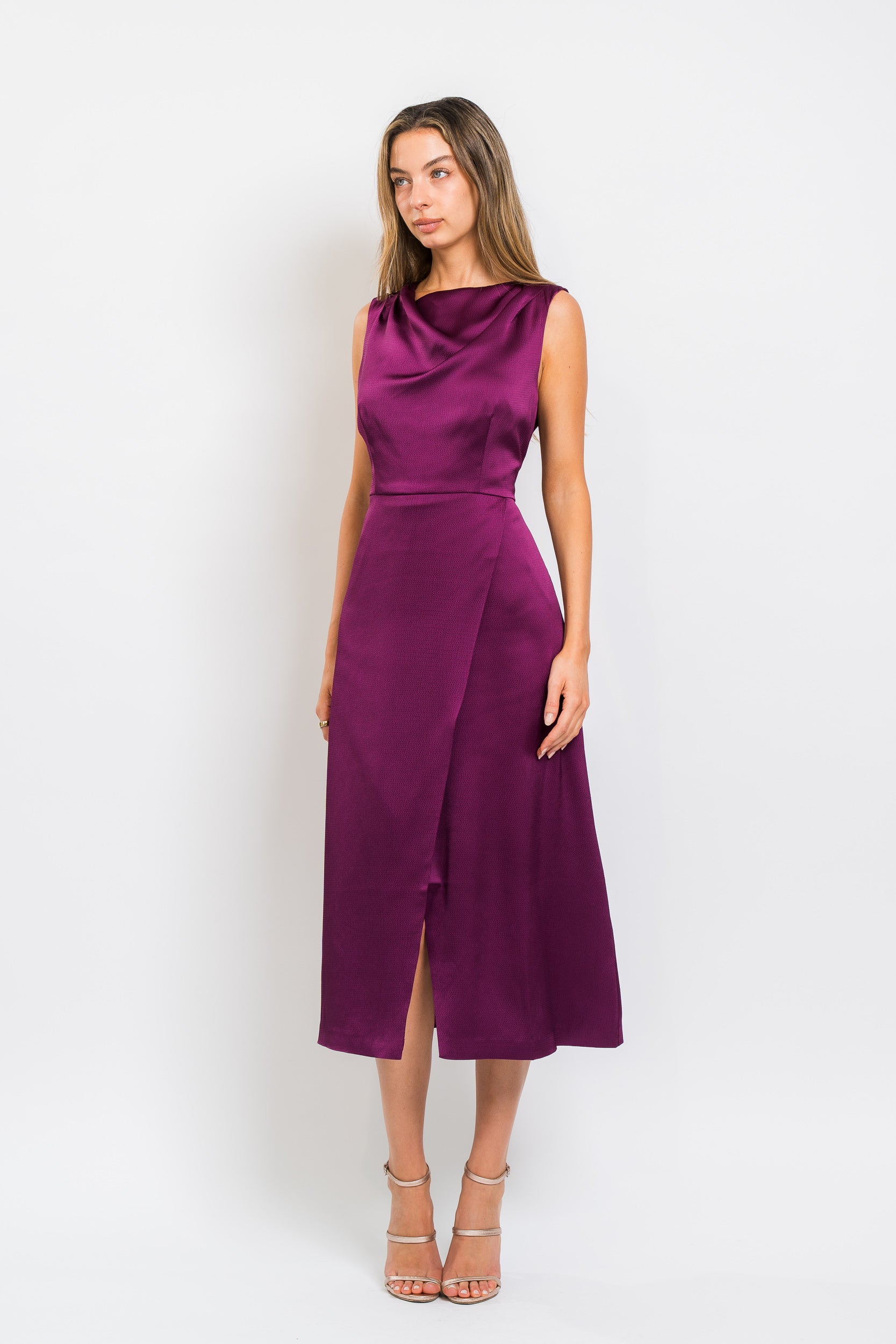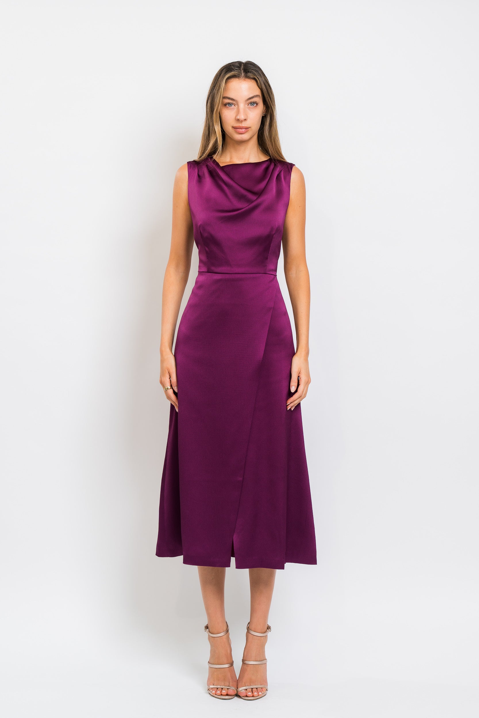 Ginger Tea Length Dress in Mulberry by Kay Unger.