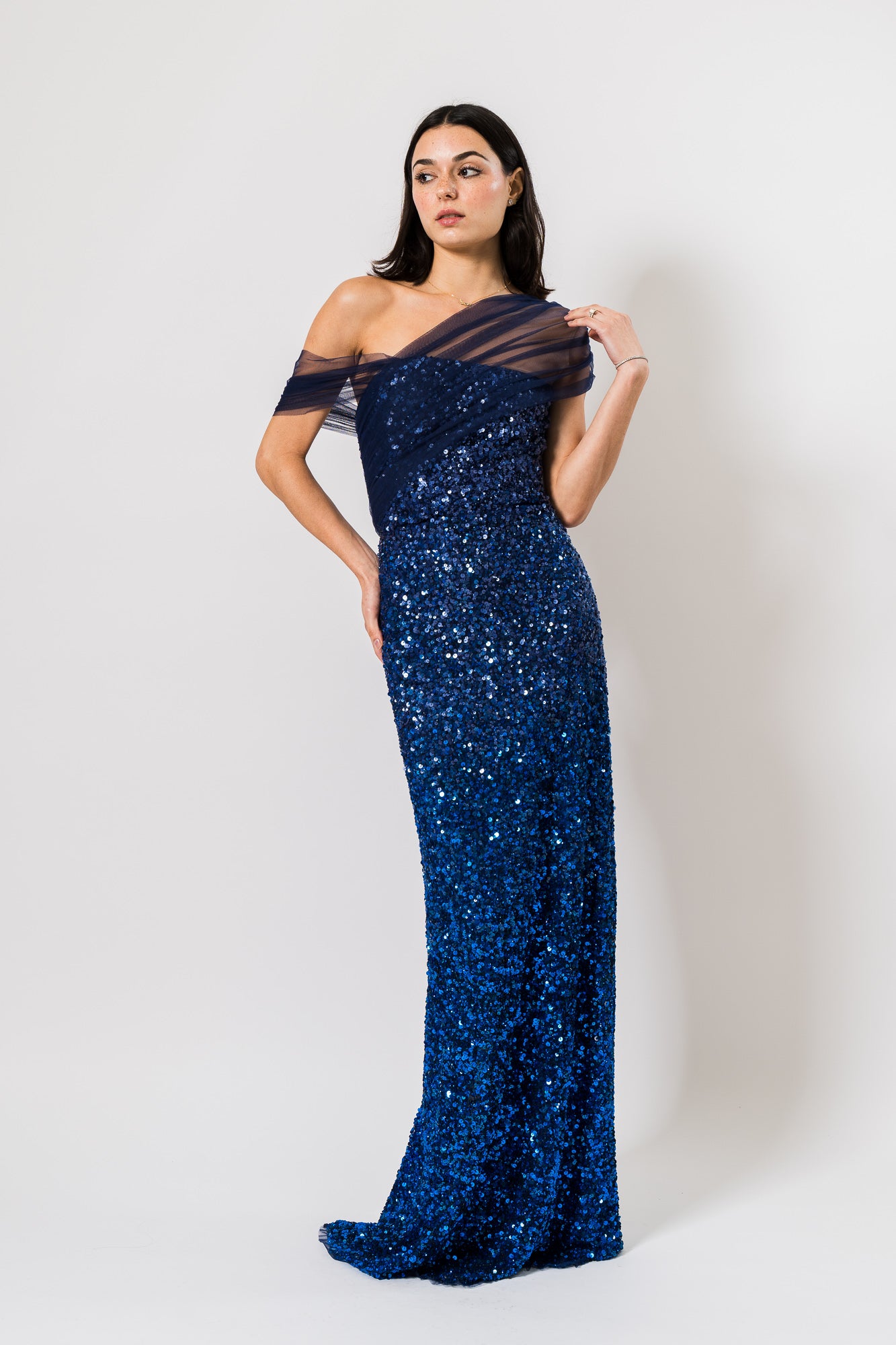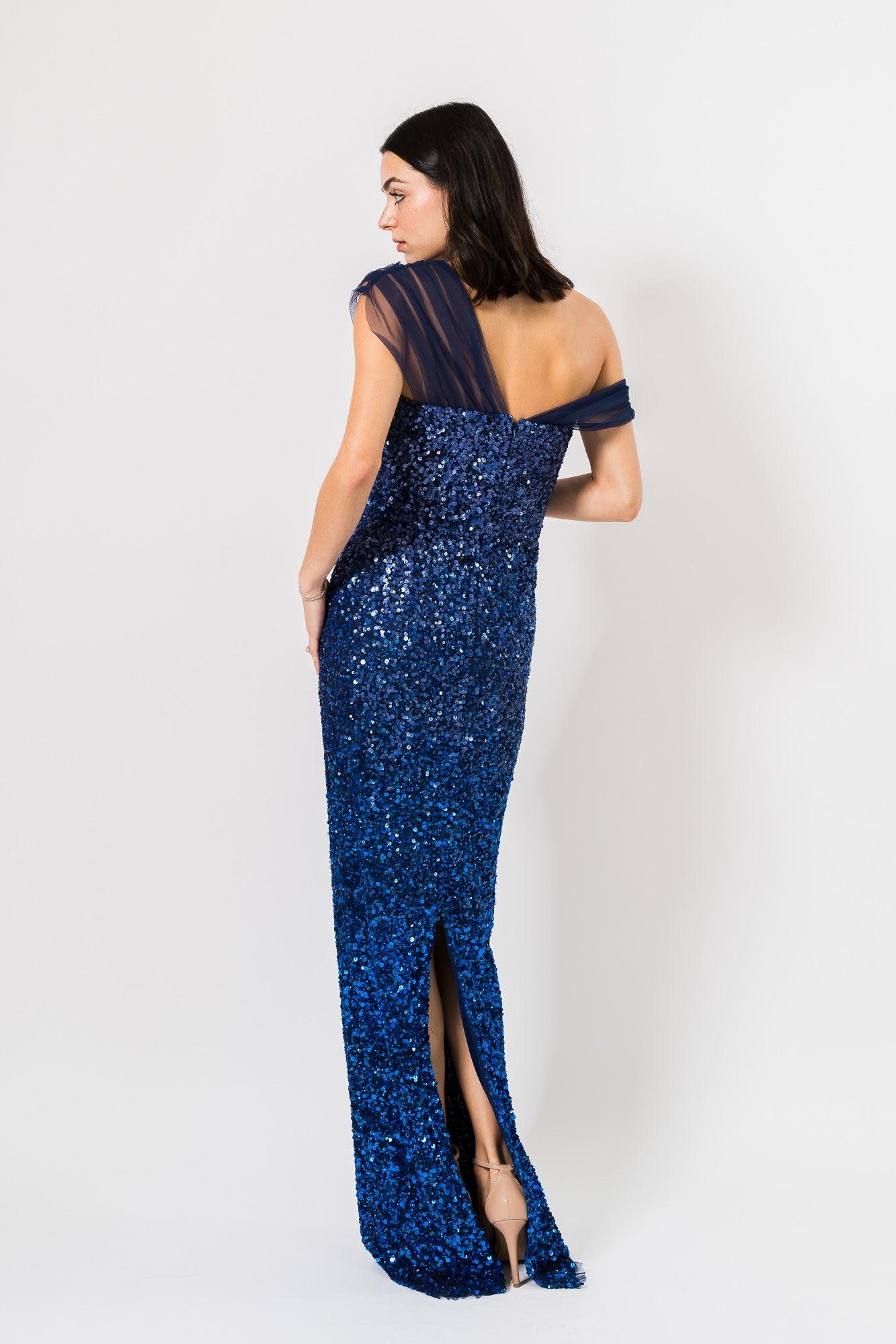 Dina Beaded Column Gown in Navy / Pacifica by Theia.