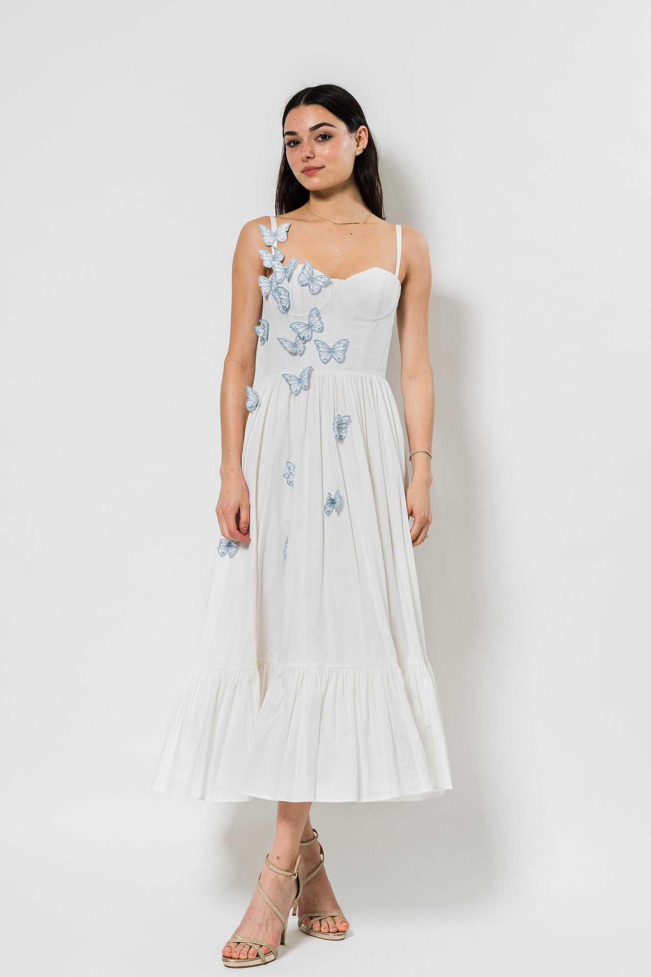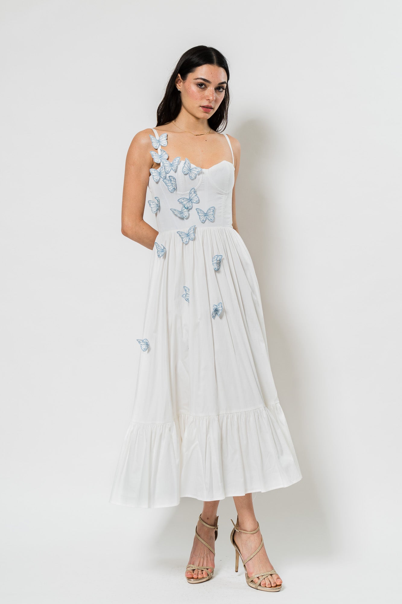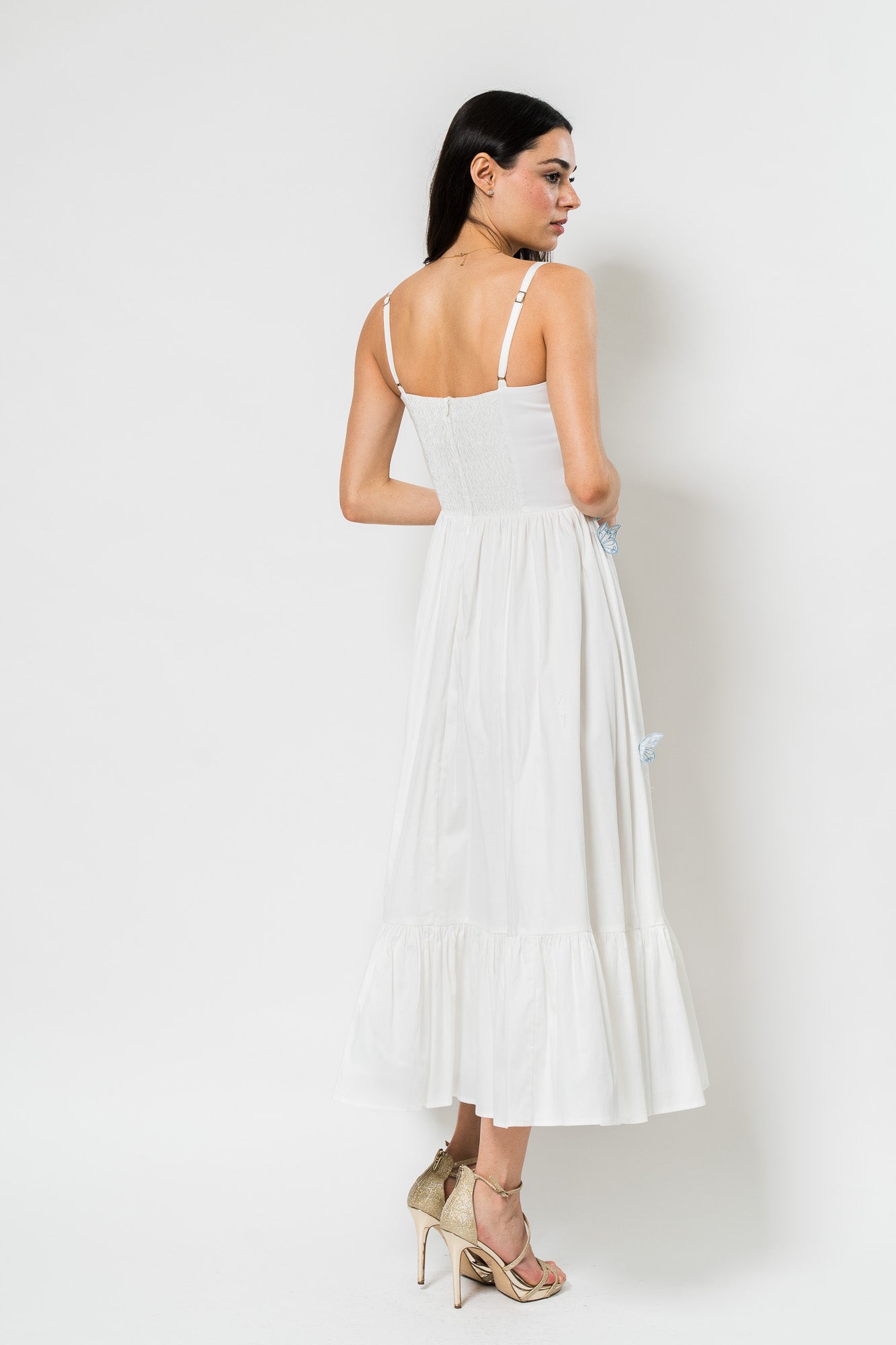 Flutter Poplin Butterfly Midi Dress in Off White by PatBo.