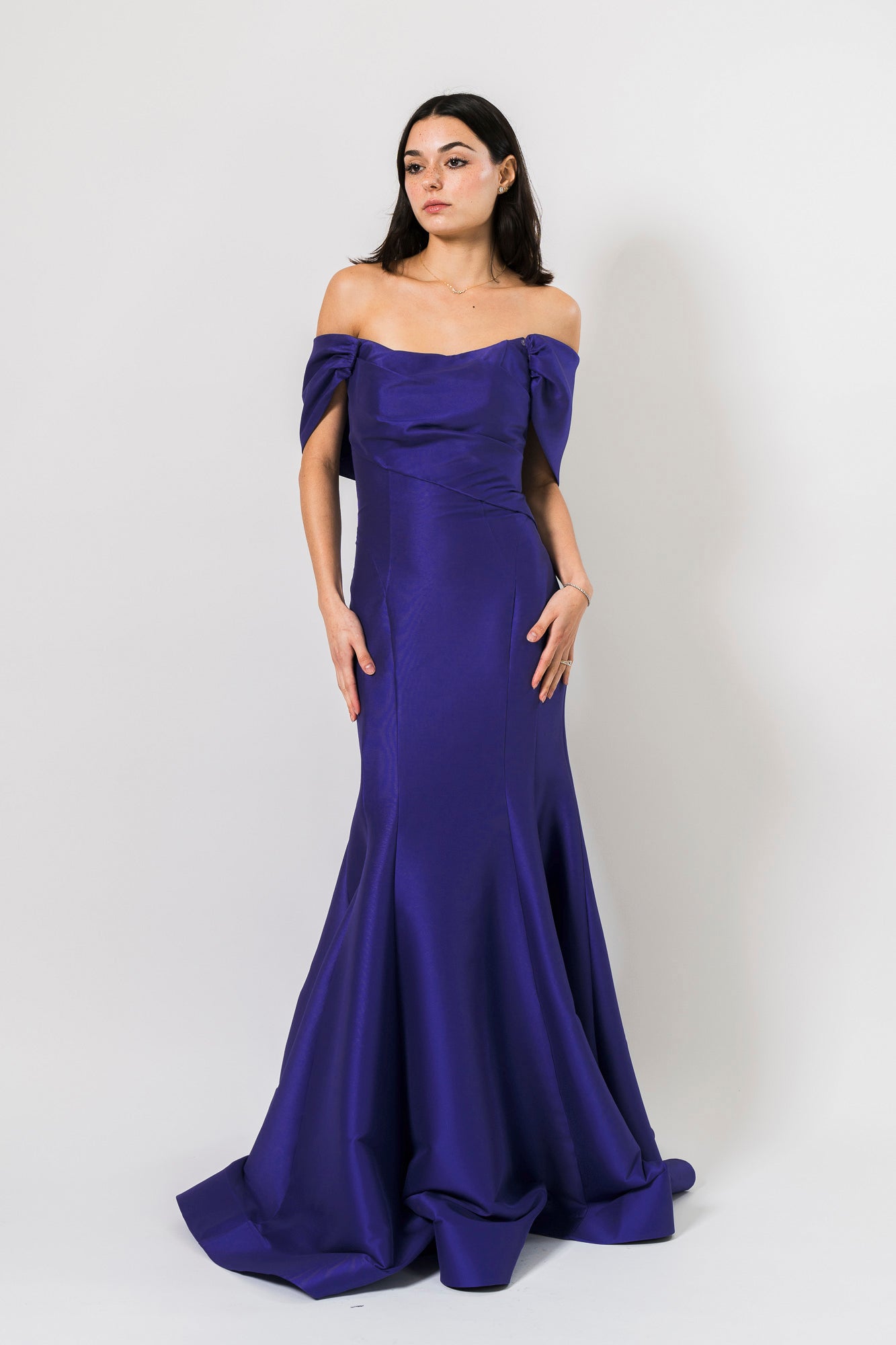Off the Shoulder Mermaid Dress in Purple by Jovani.