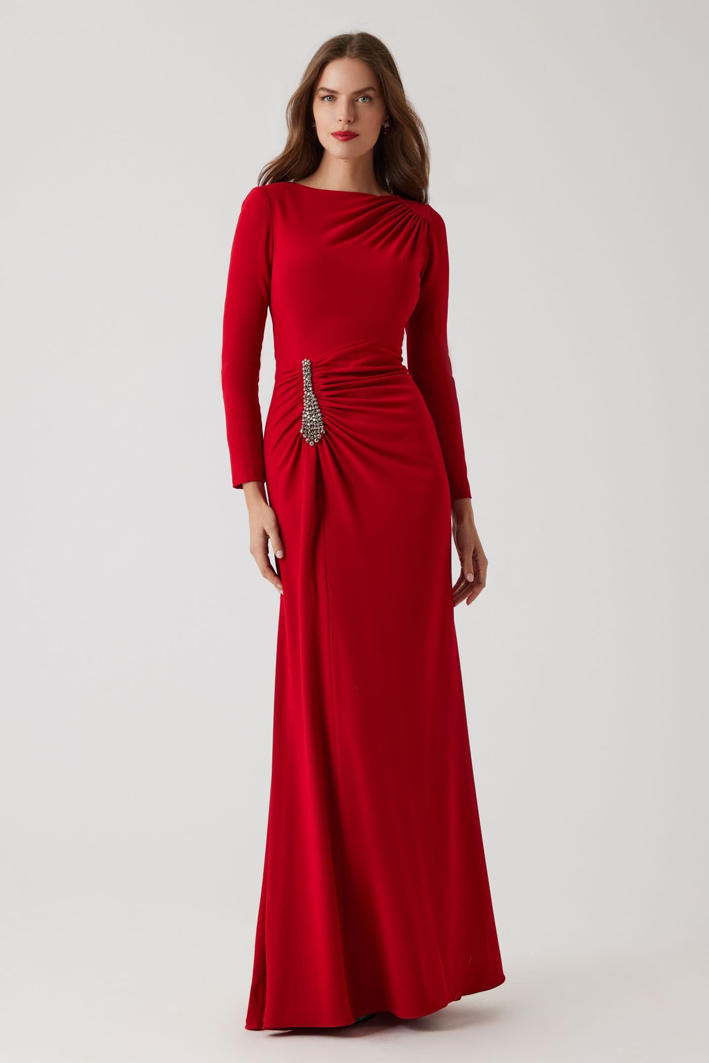 Crepe Ruched Jewel Applique Gown un Red by Teri Jon.