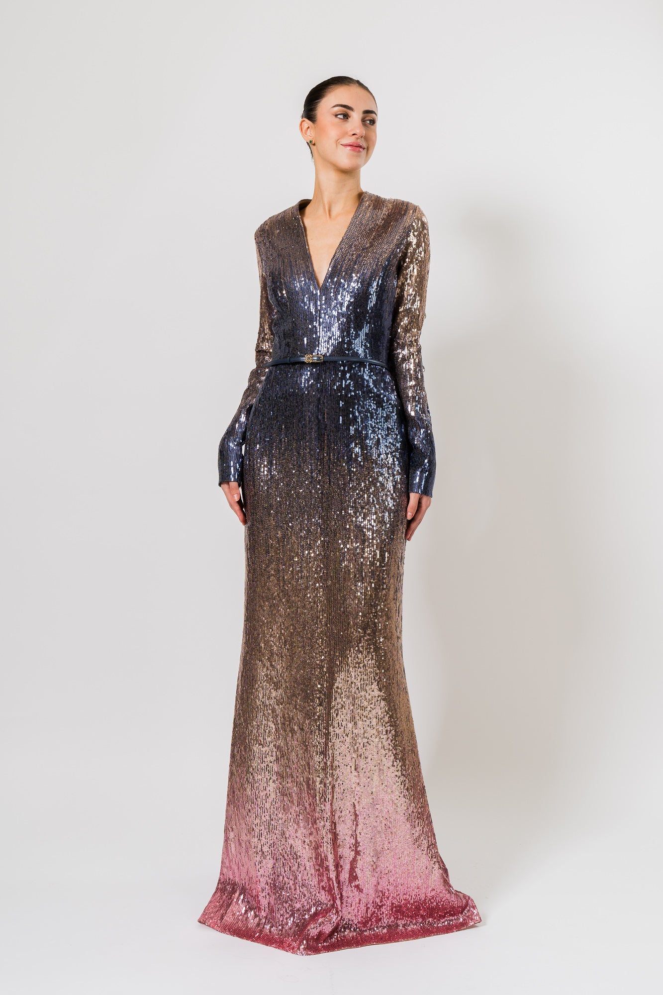 Sequins Gown in Rose/Cerulean by Ellie Saab.