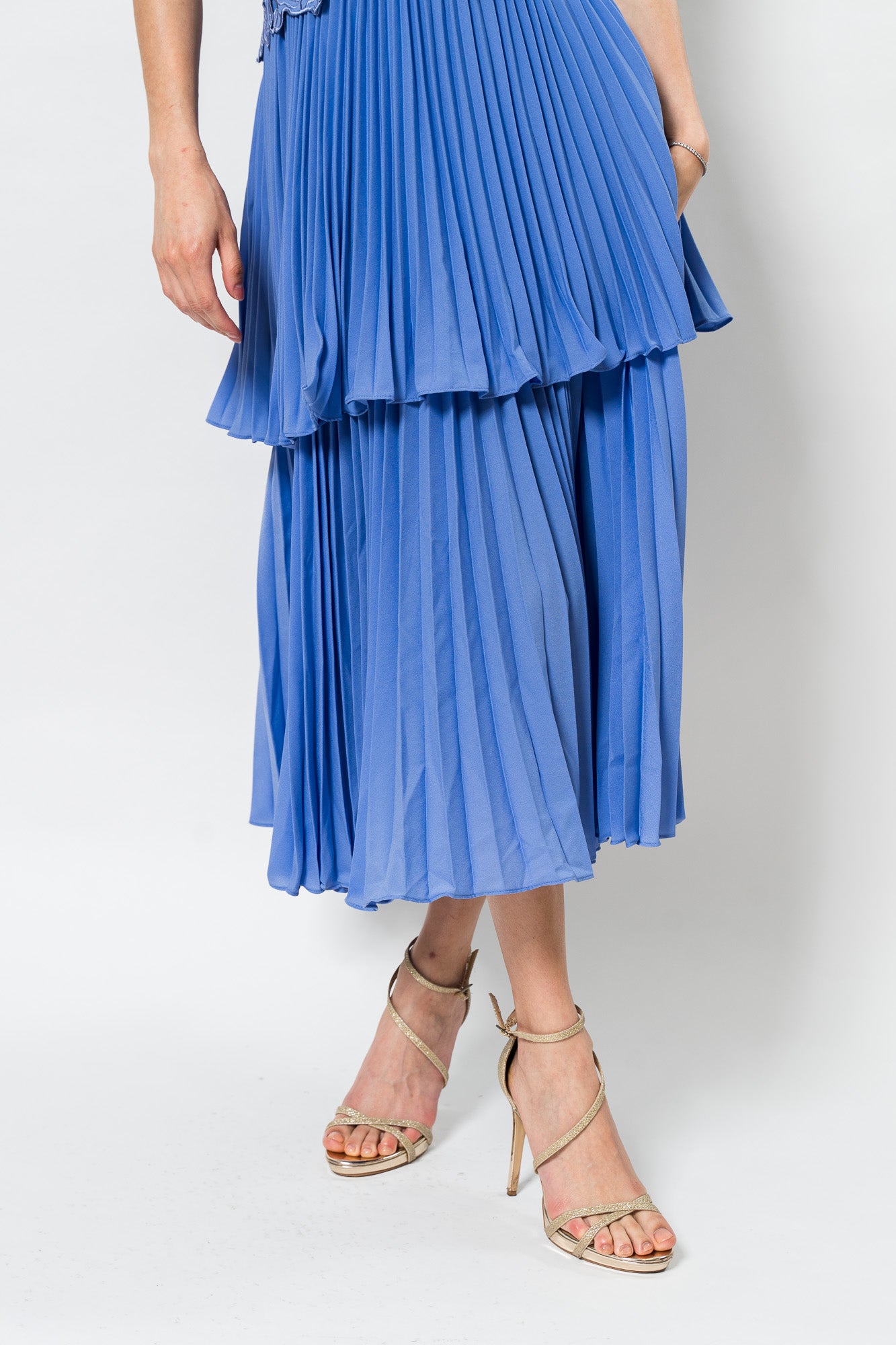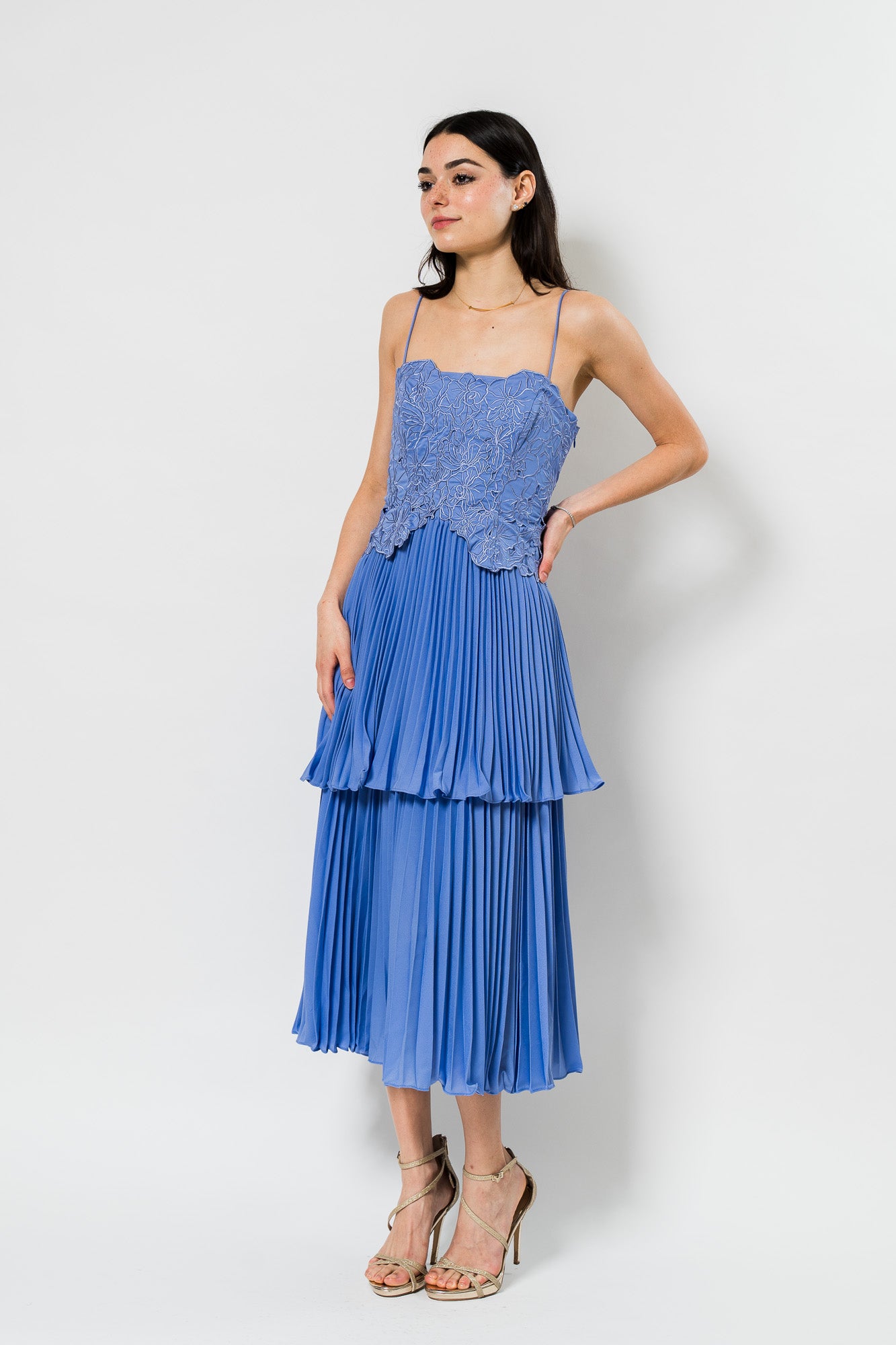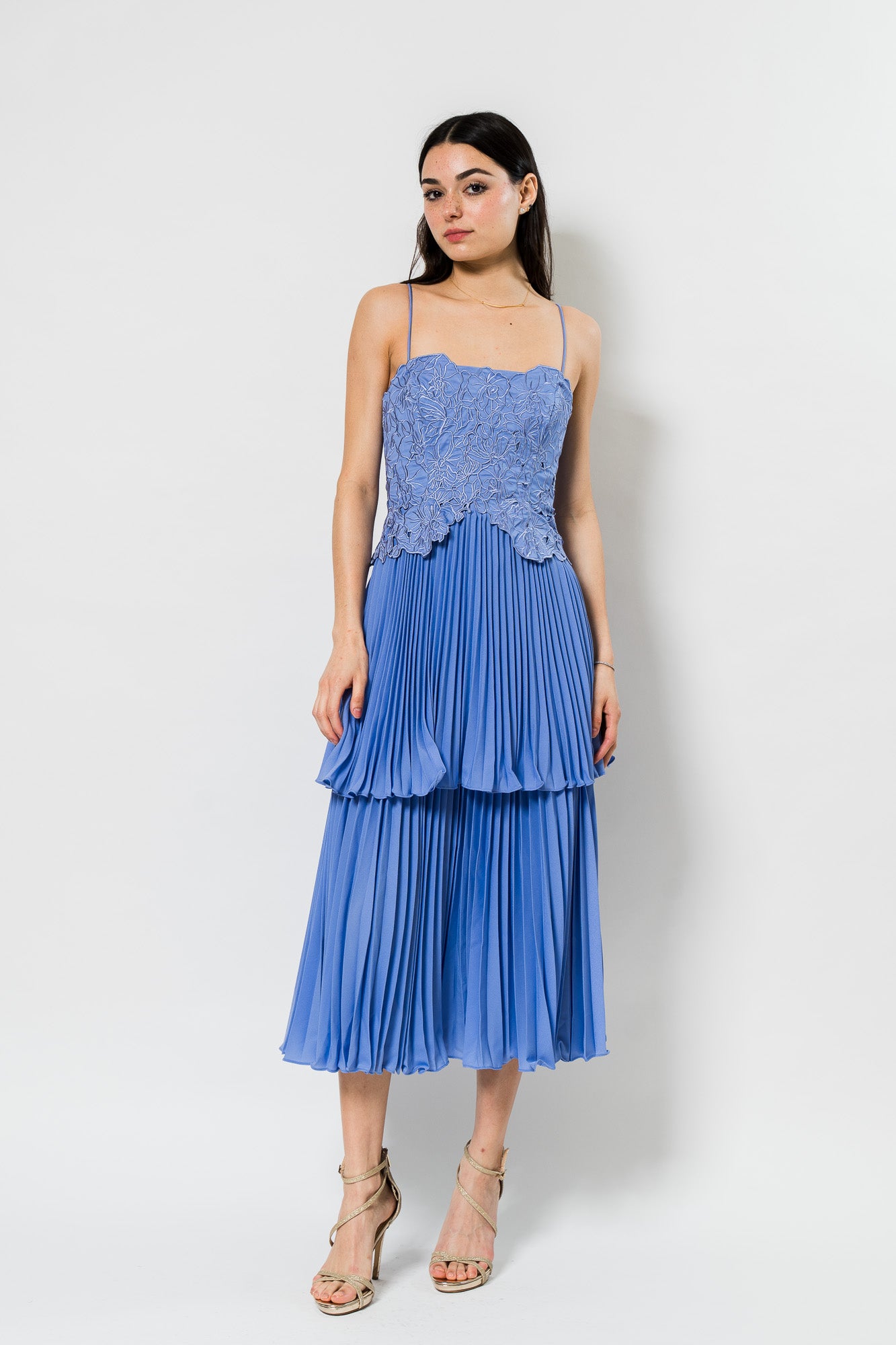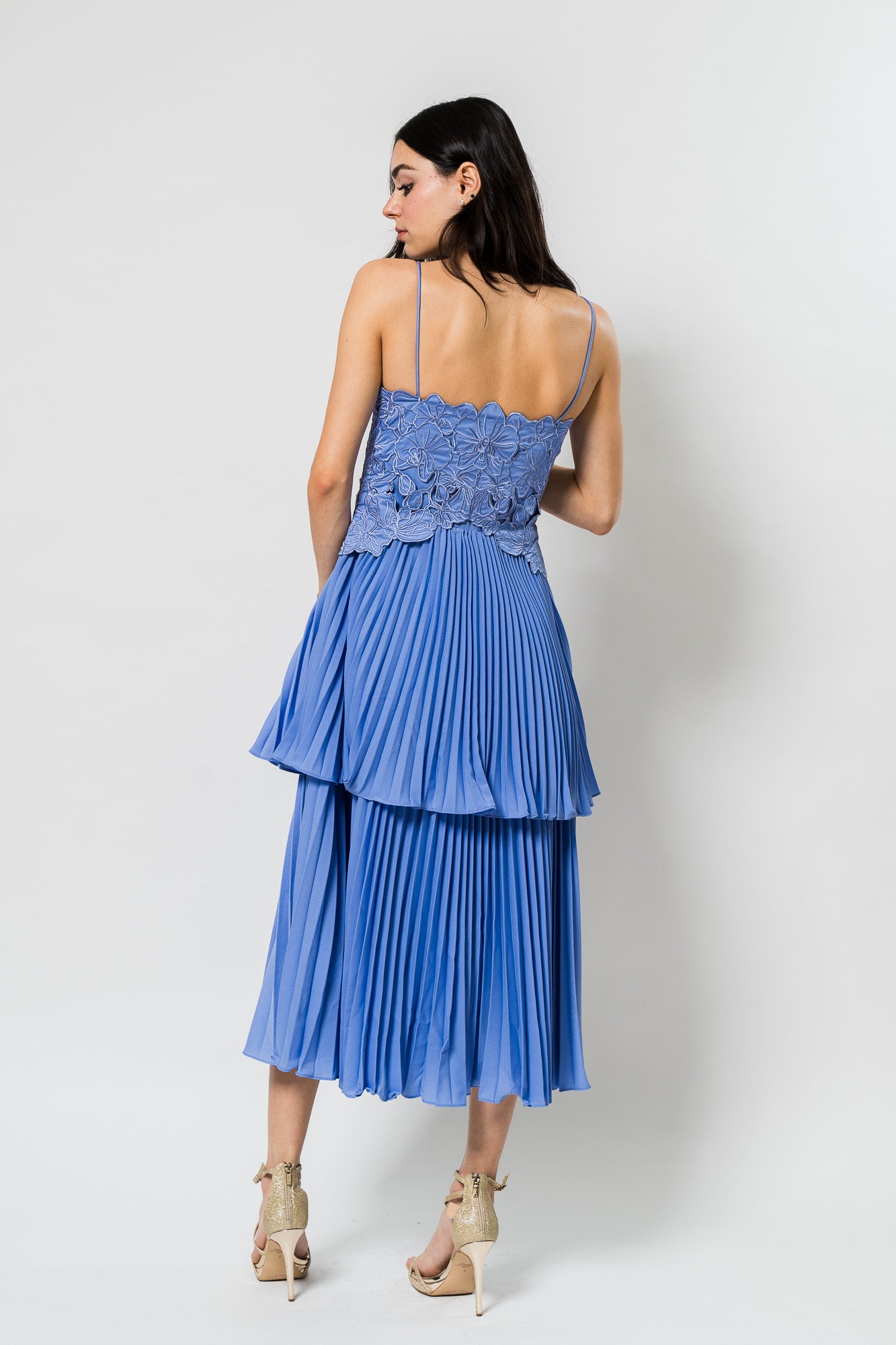 Esmae Laser Cutn Floral Dress in Sail Blue by Amur.