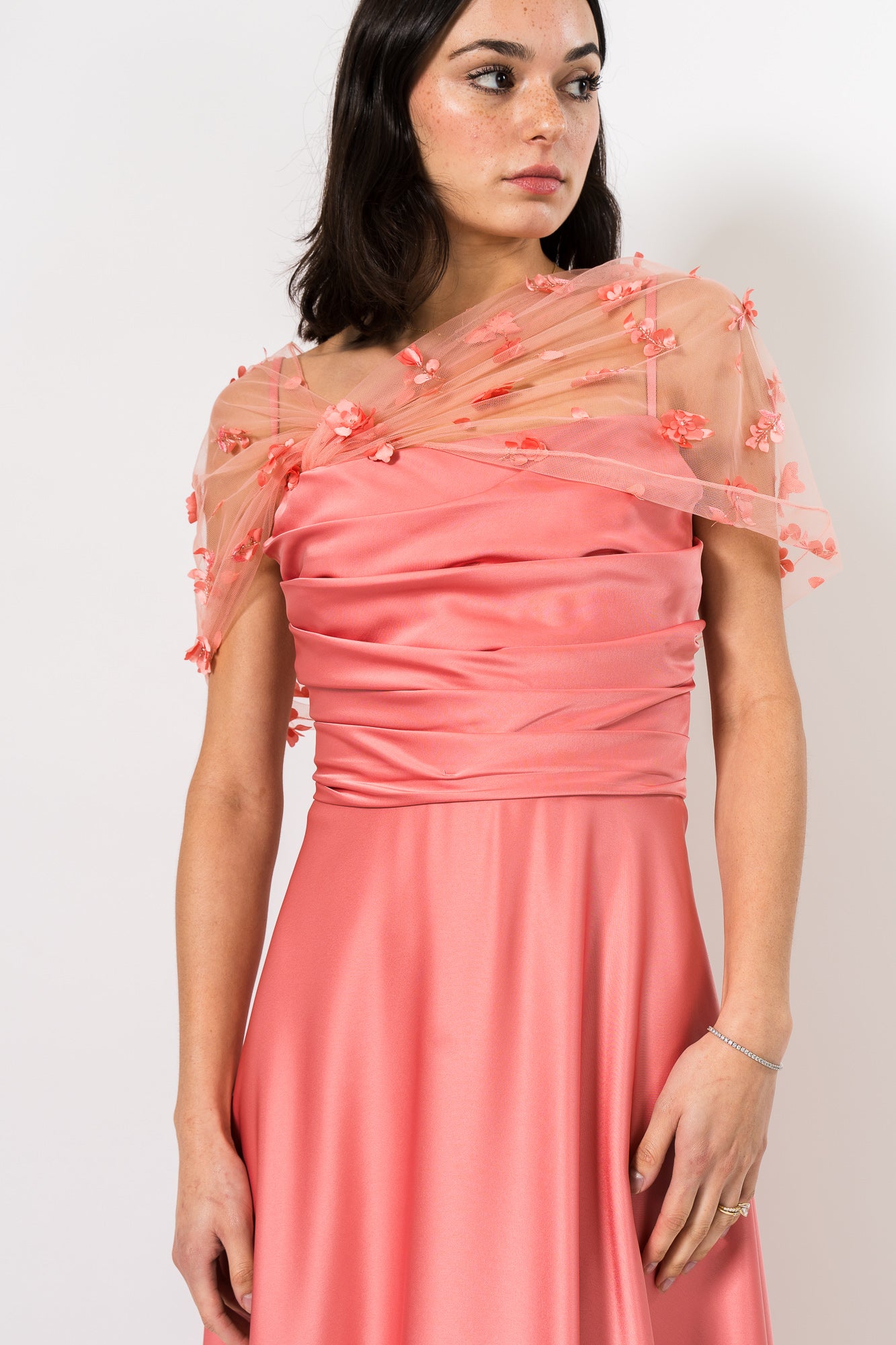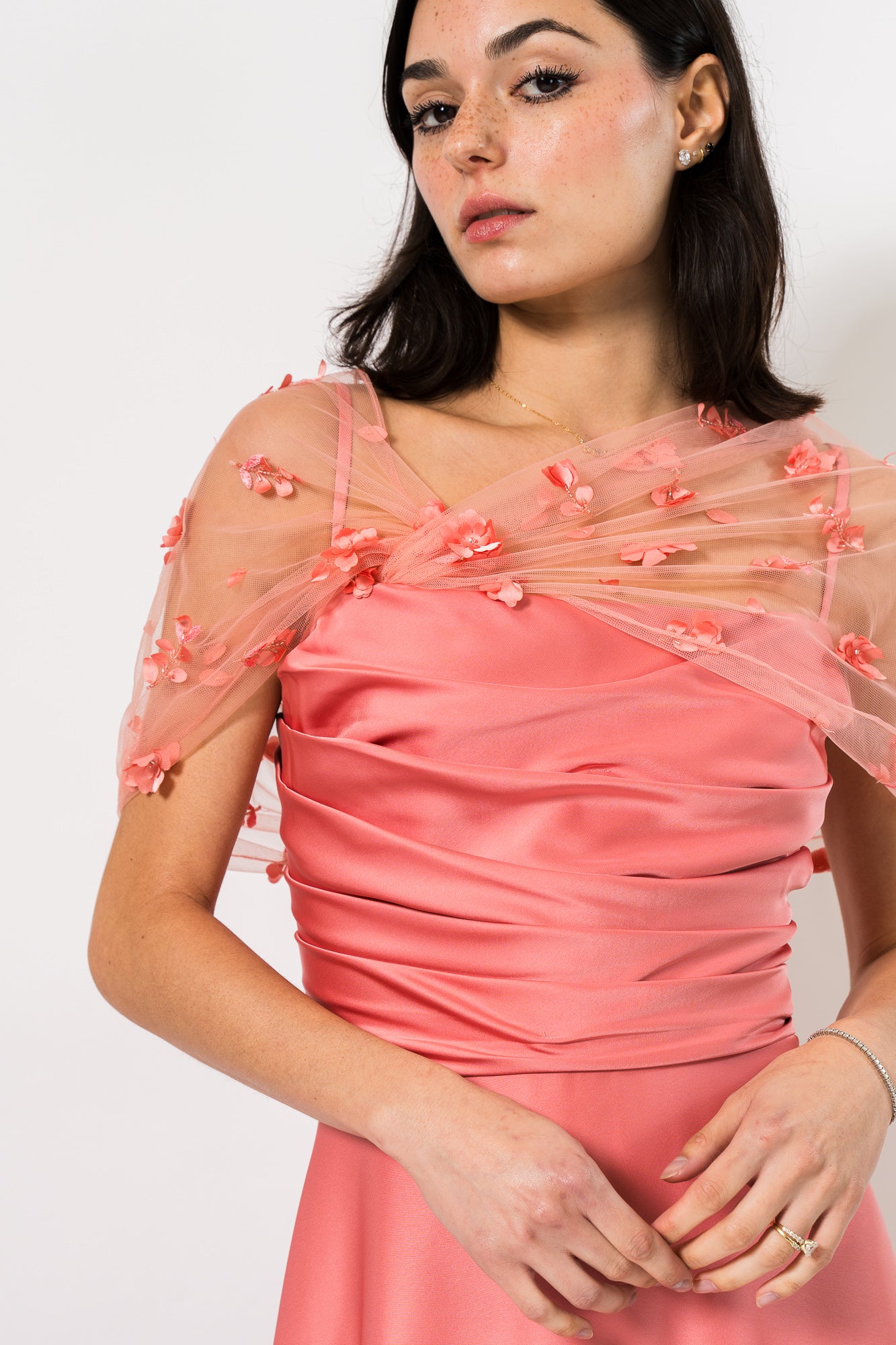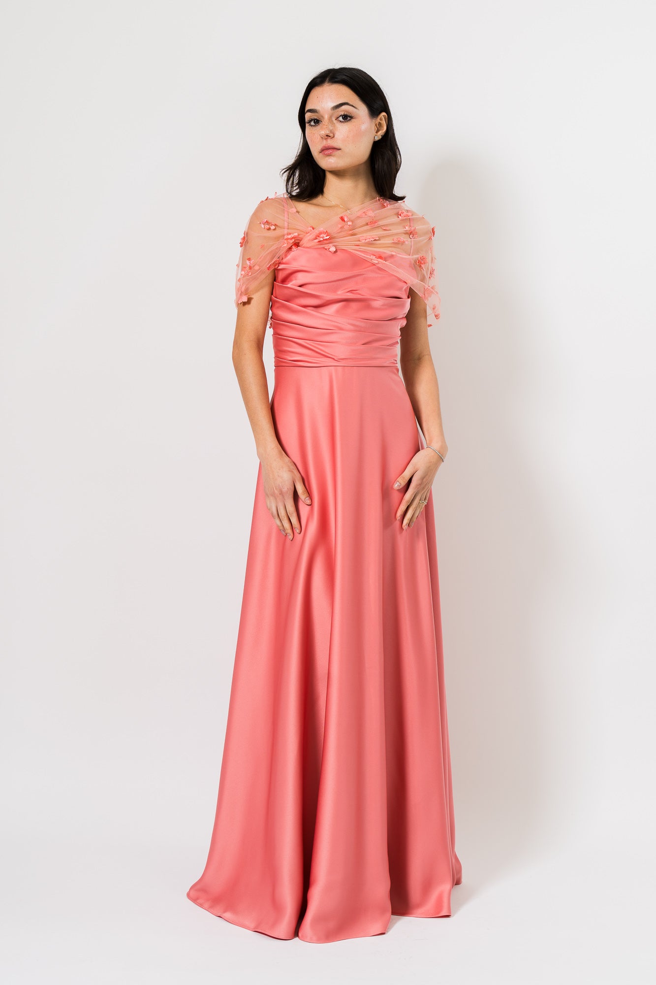 Luella Shawal Draped Gown in Sugar Coral by Theia.