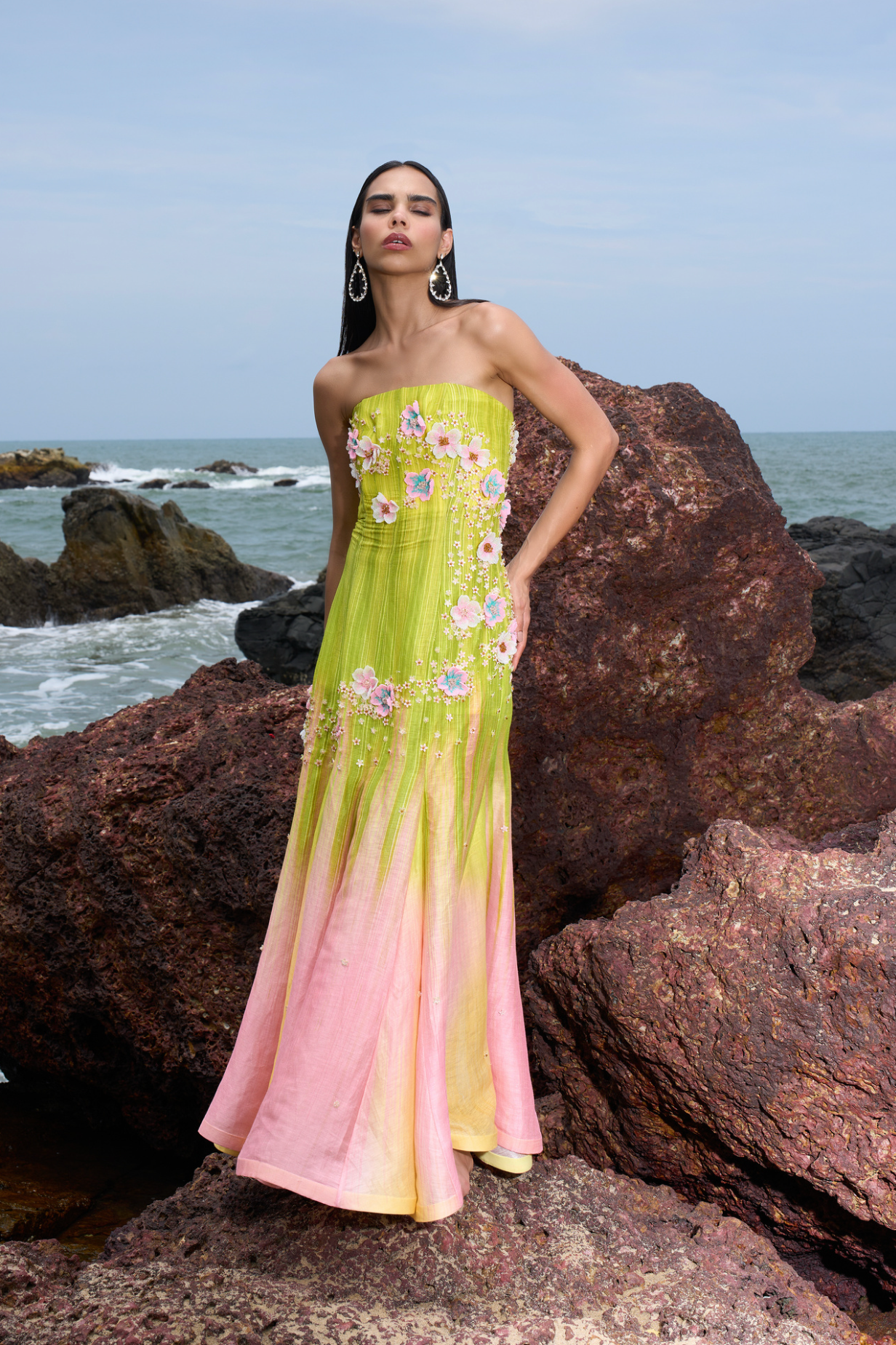 Embroidered Gown in Sunset Glow Ombre in La Fuori.