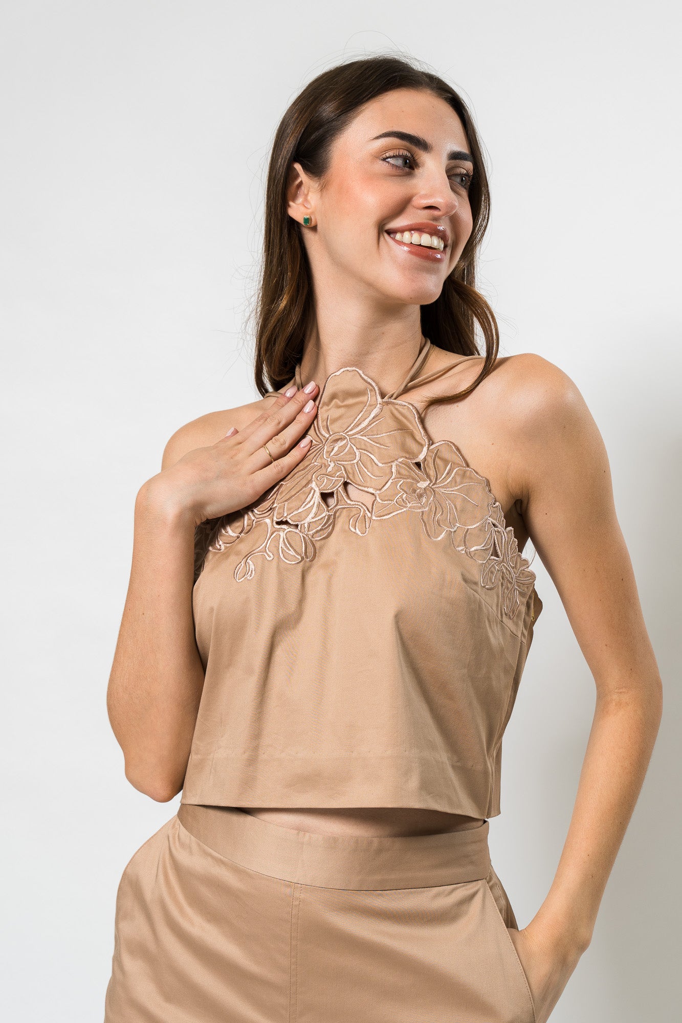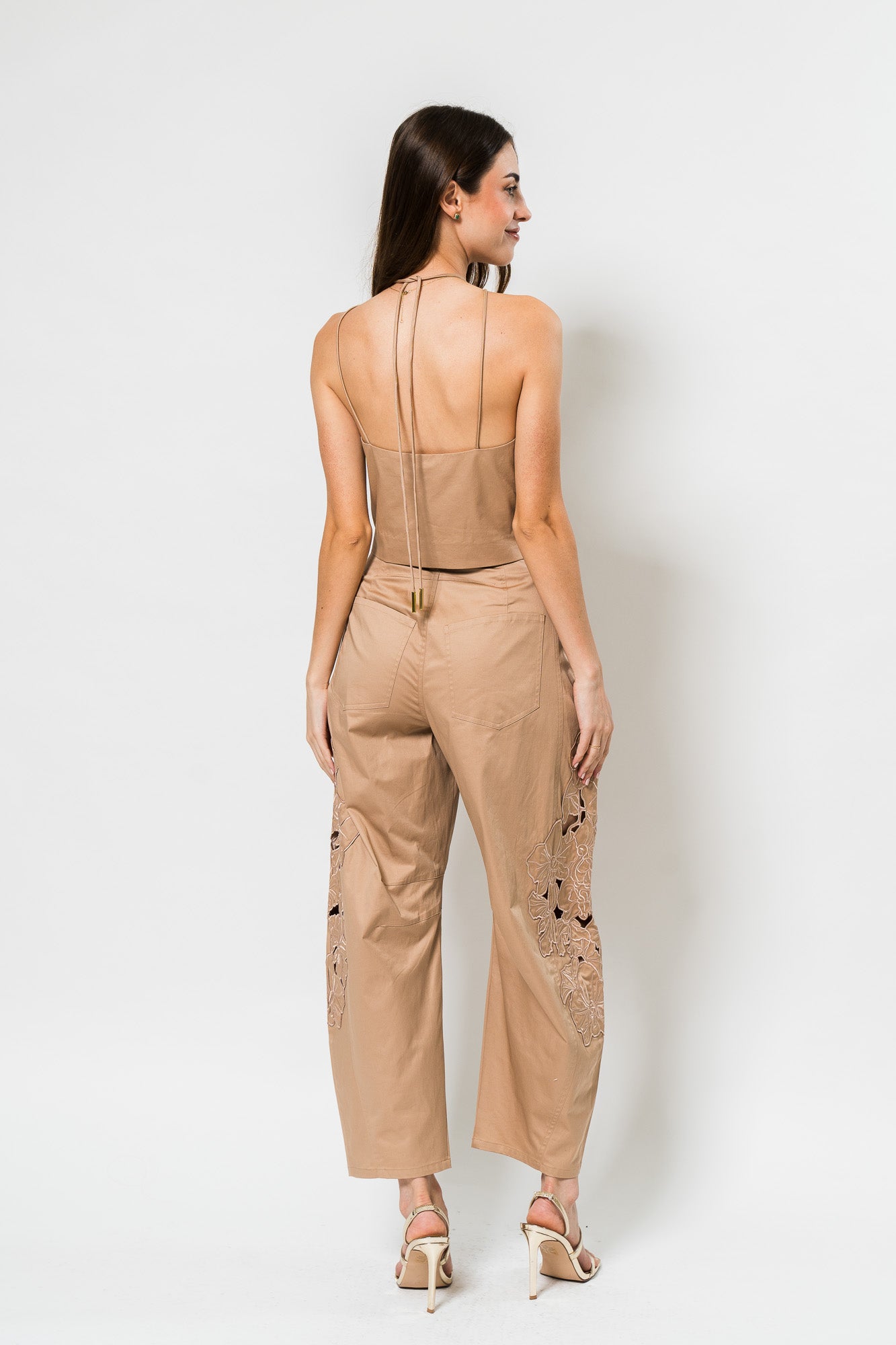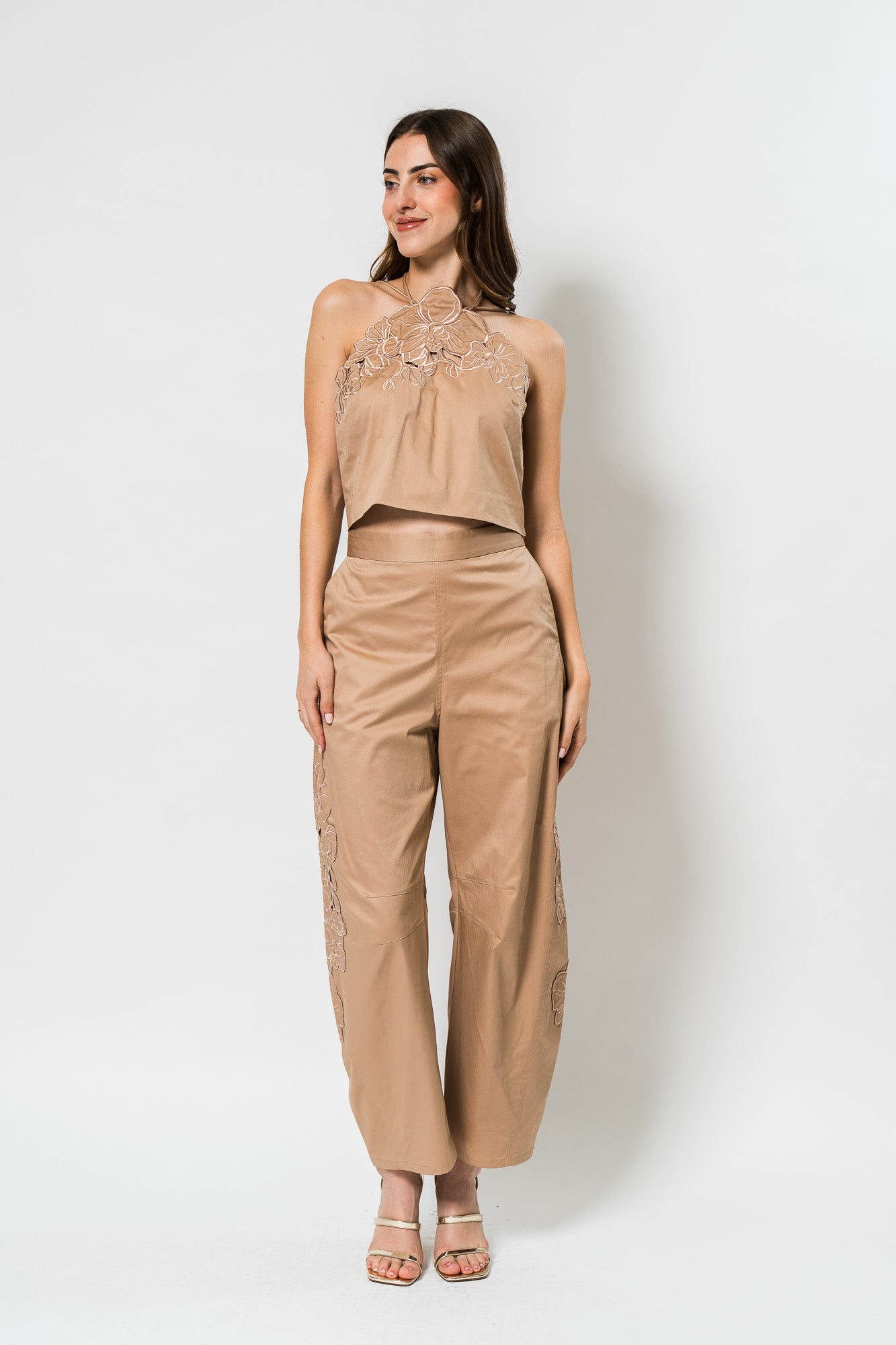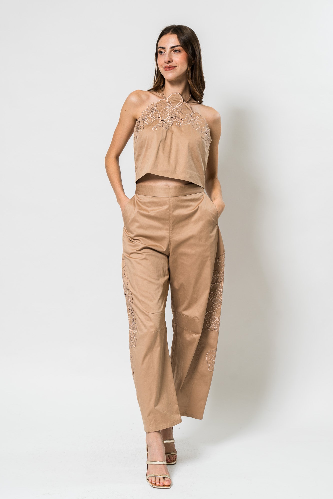 Bliss Laser Cut Floral Top & Blissett Laser Cut Floral Pant in Warm Sand by Amur.