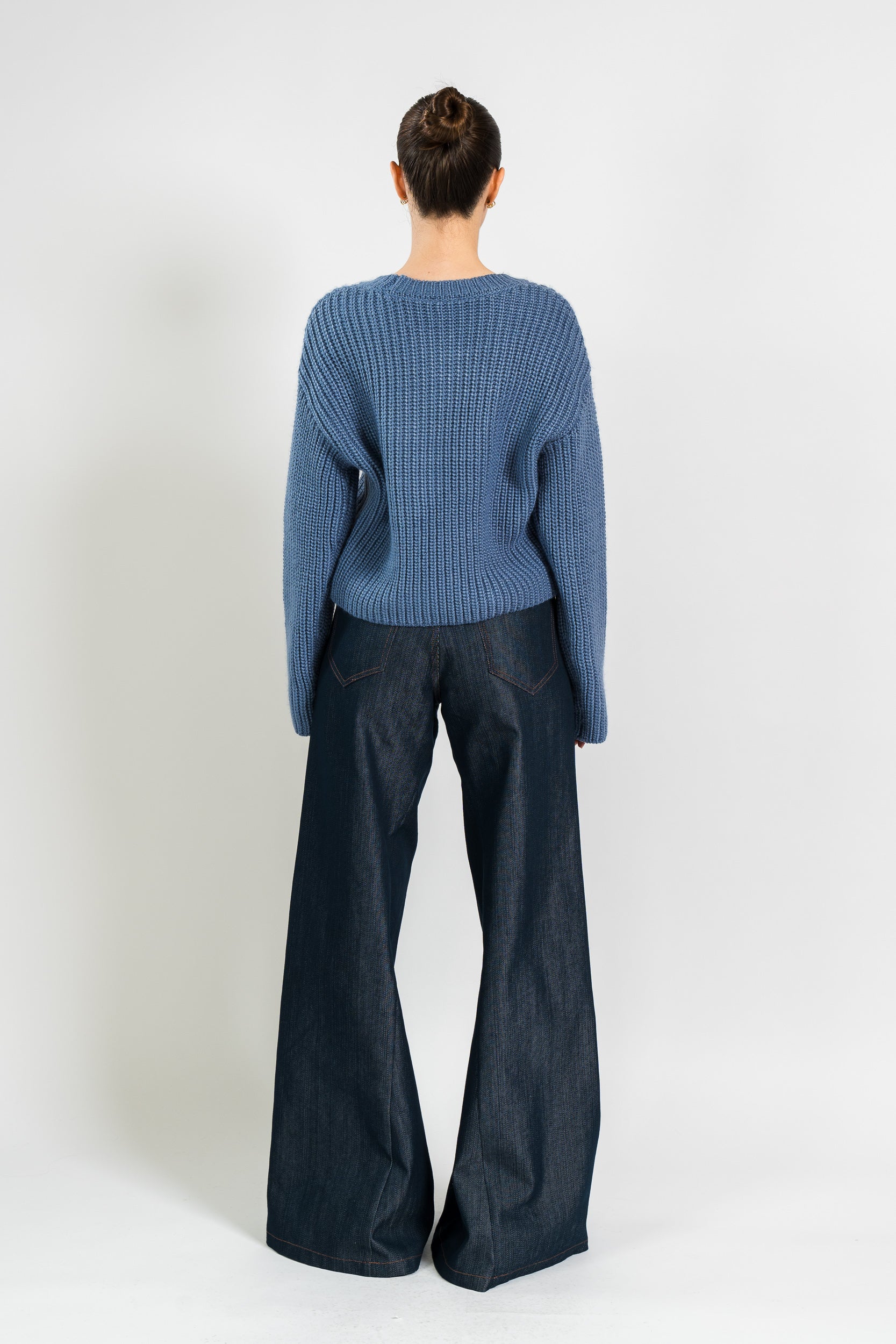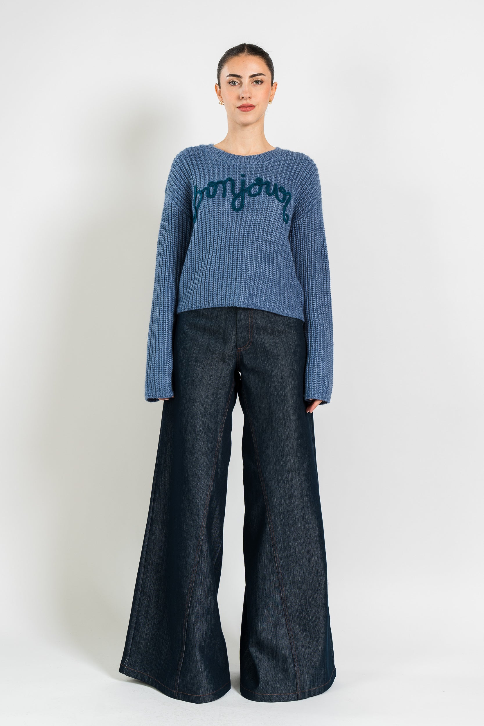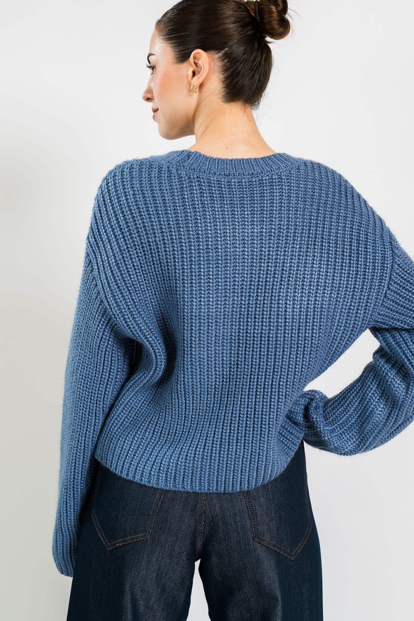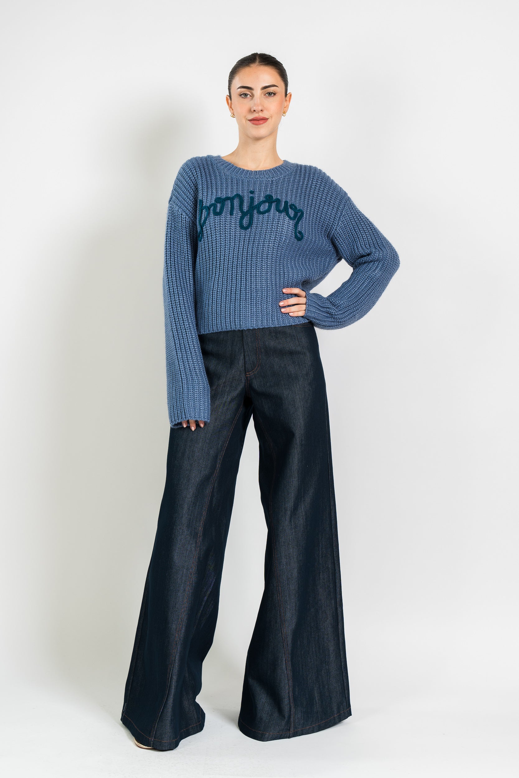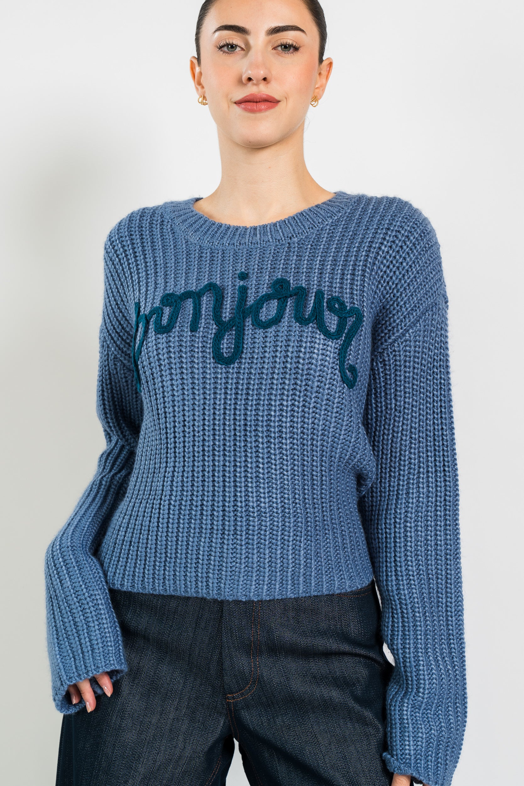 Bonjour Emroidered Shaker Cardigan in Blue/Sapphire by Cinq à Sept.