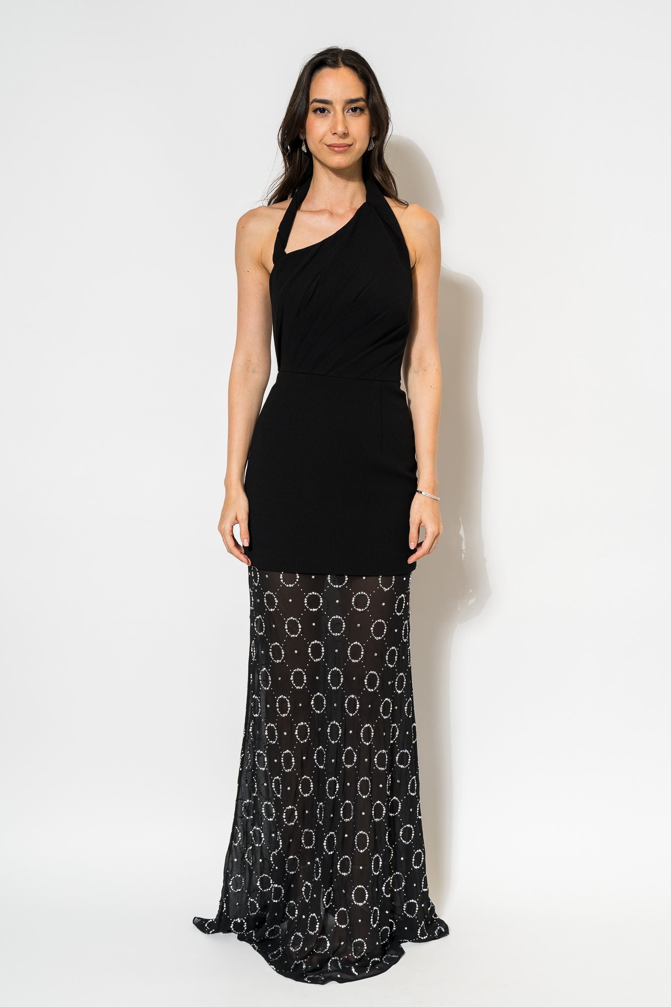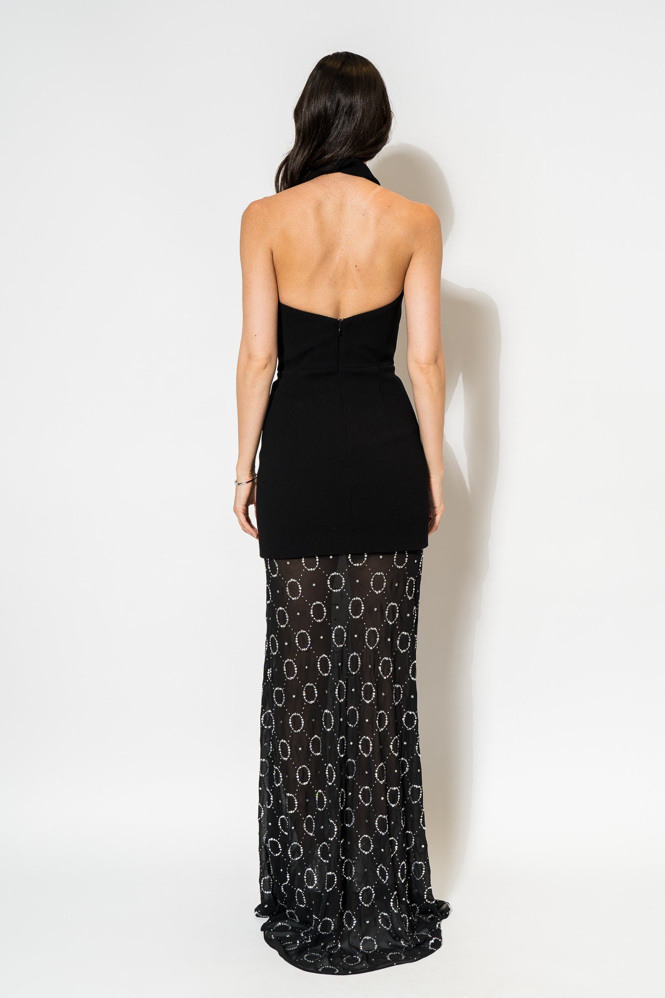 Ellasandra Halter Gown in Black by Rebecca Vallance.