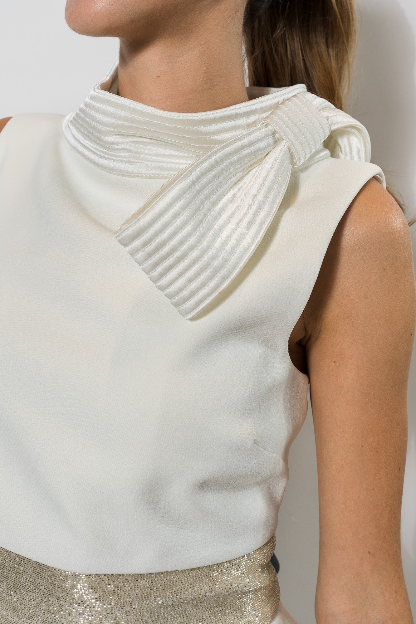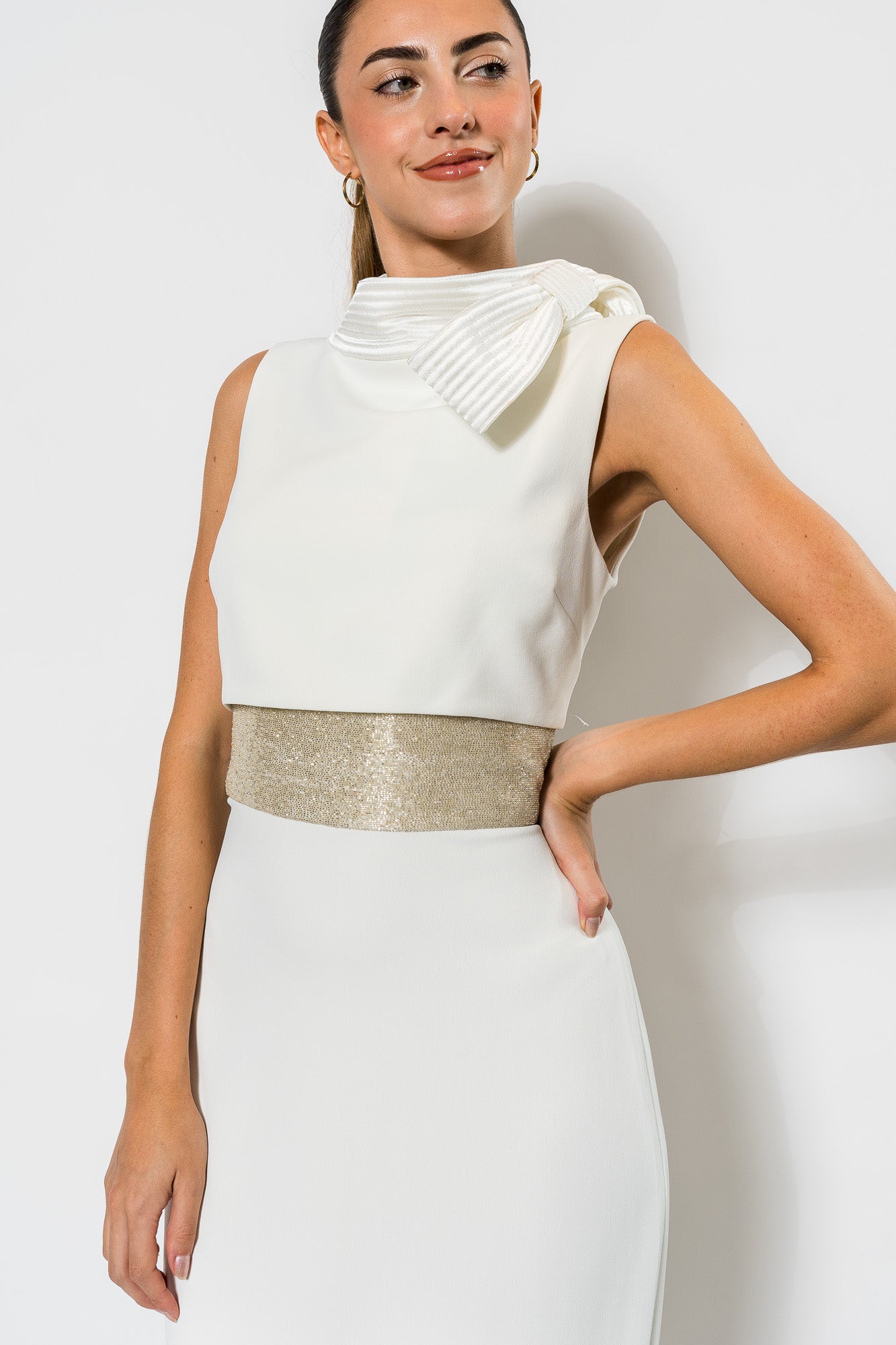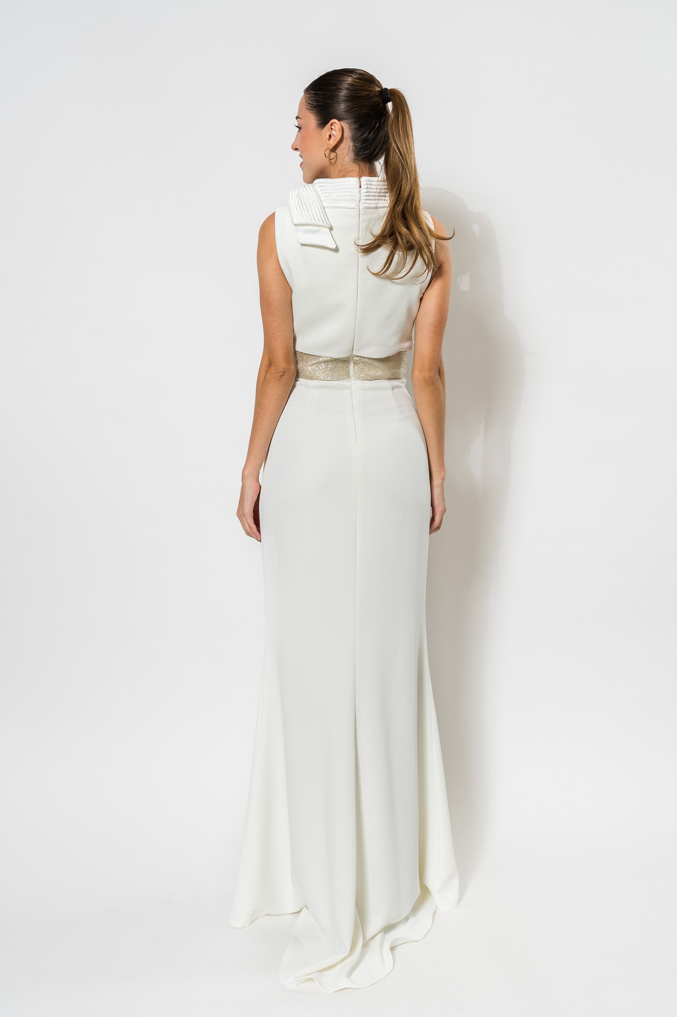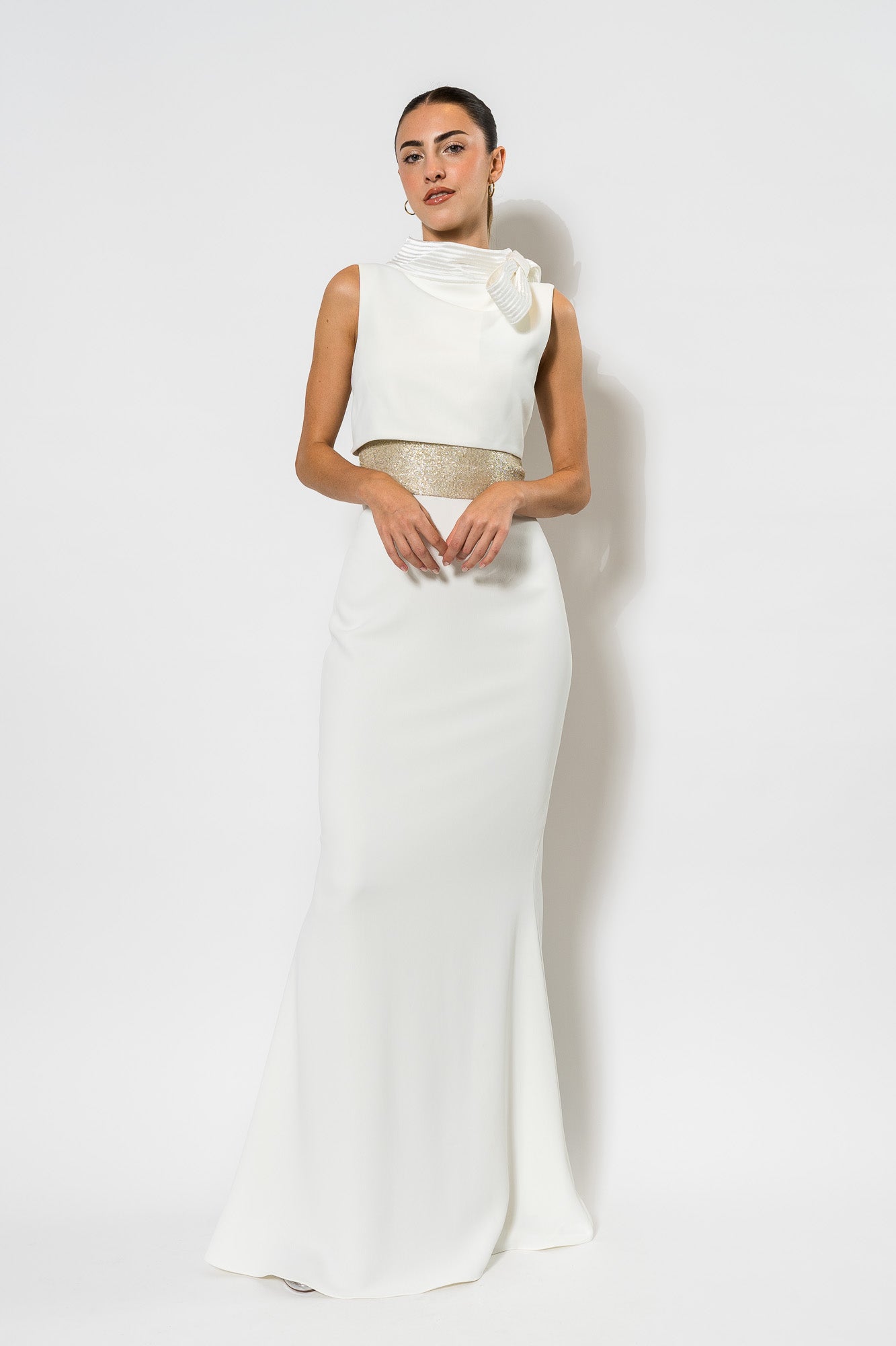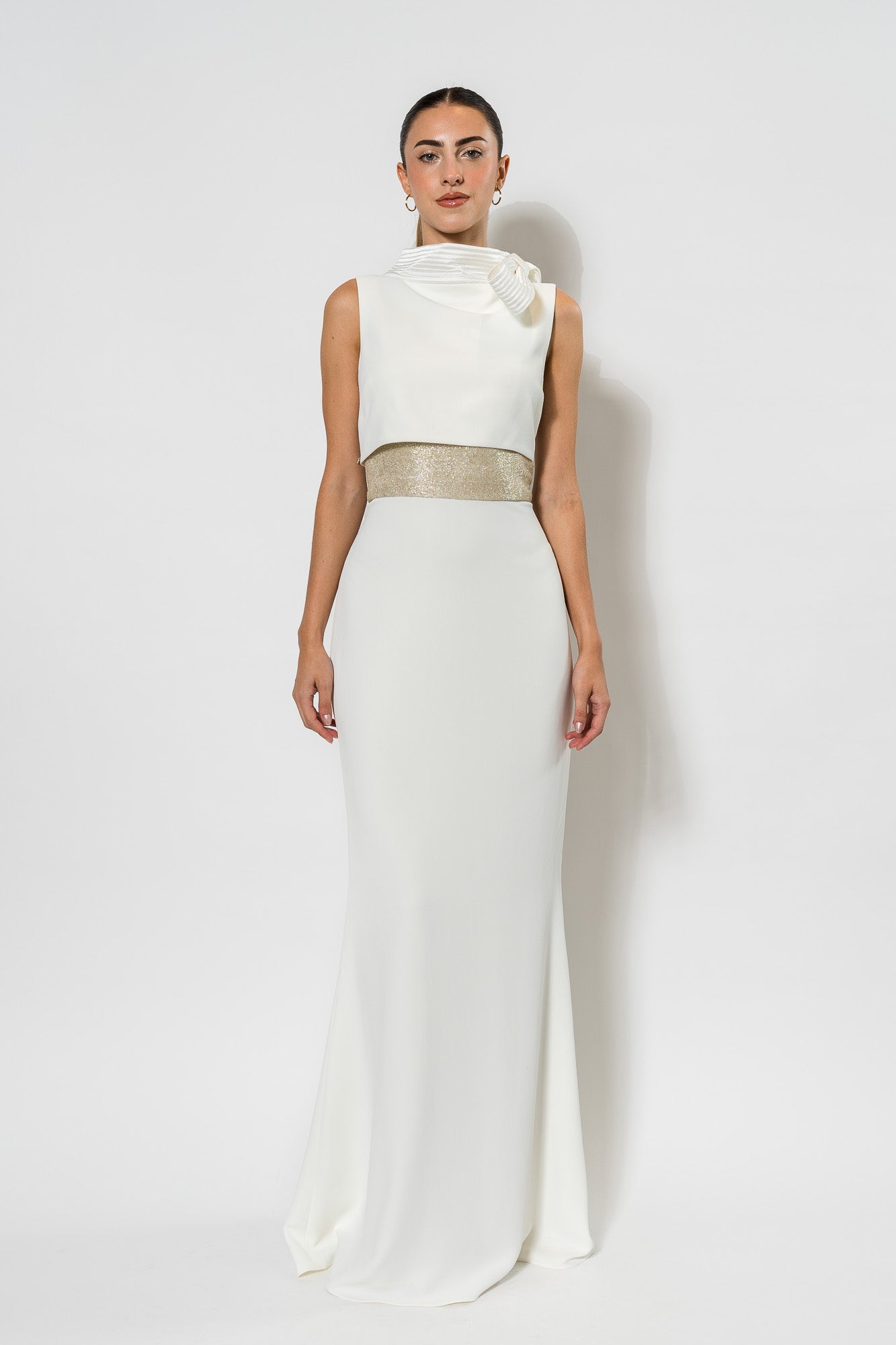 Sleeveless Popover Column Gown in Ivory by Badgley Mischka.